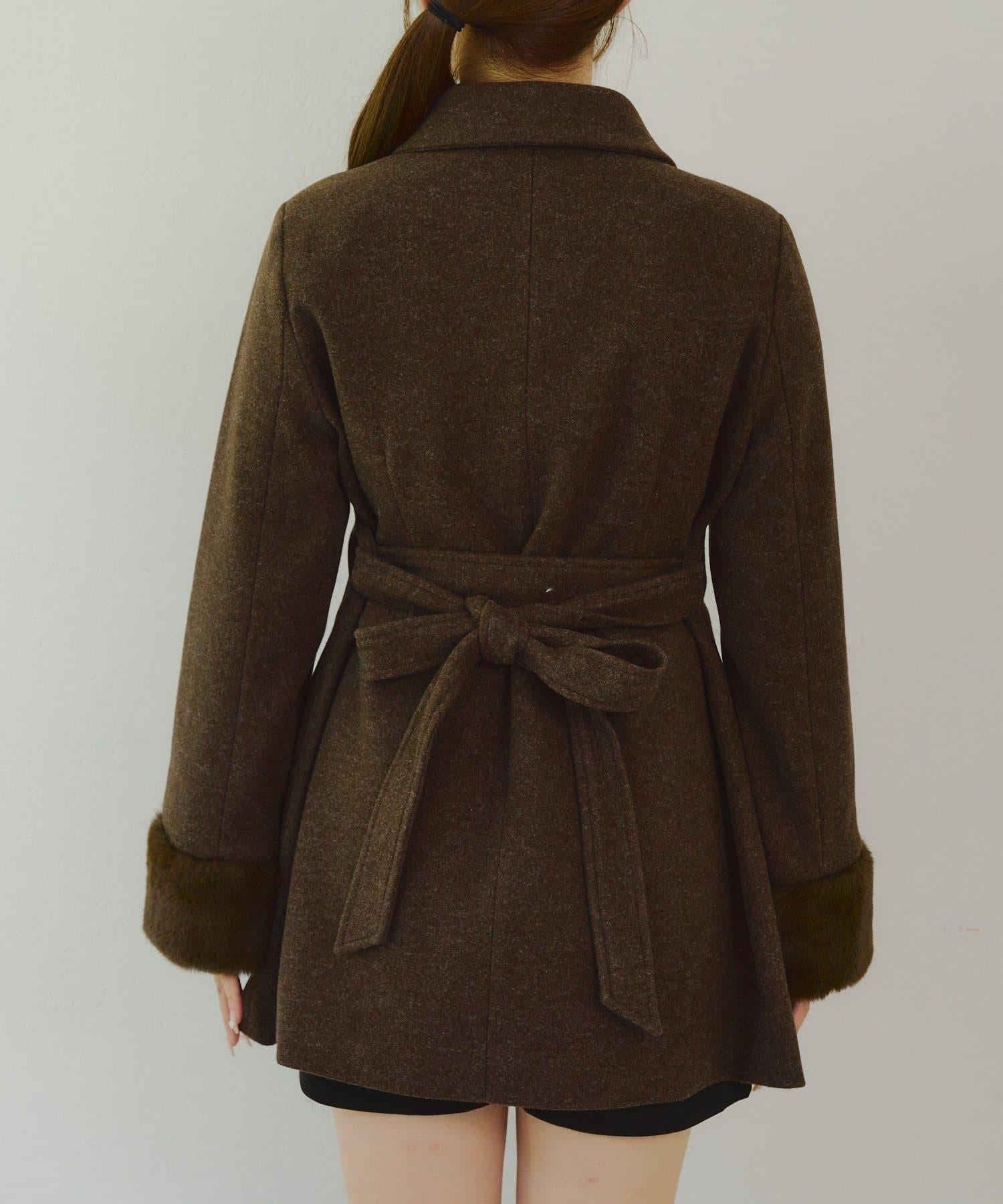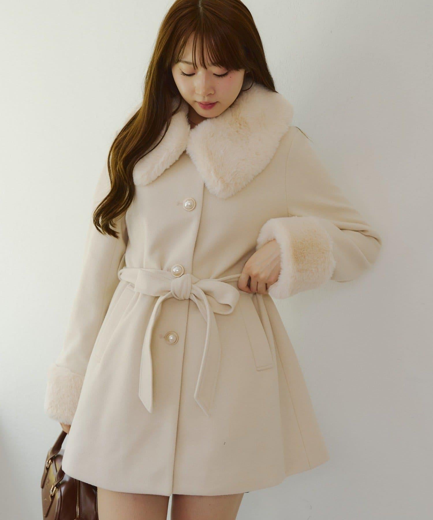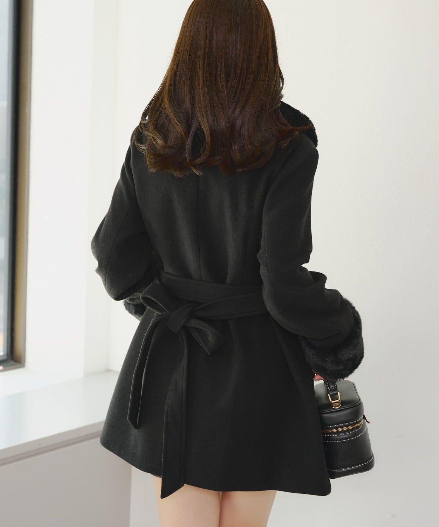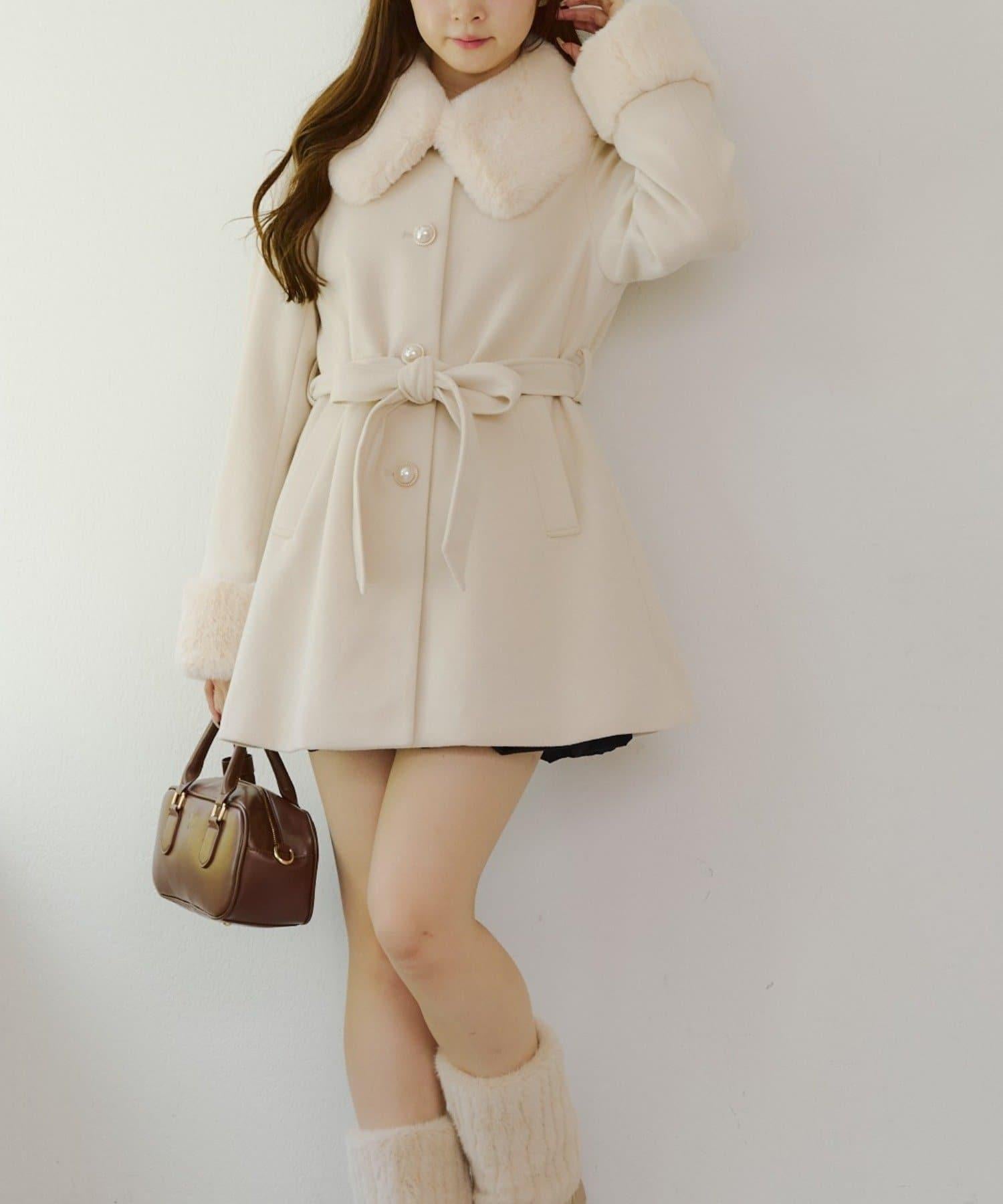 預約商品仿皮草中長款大衣