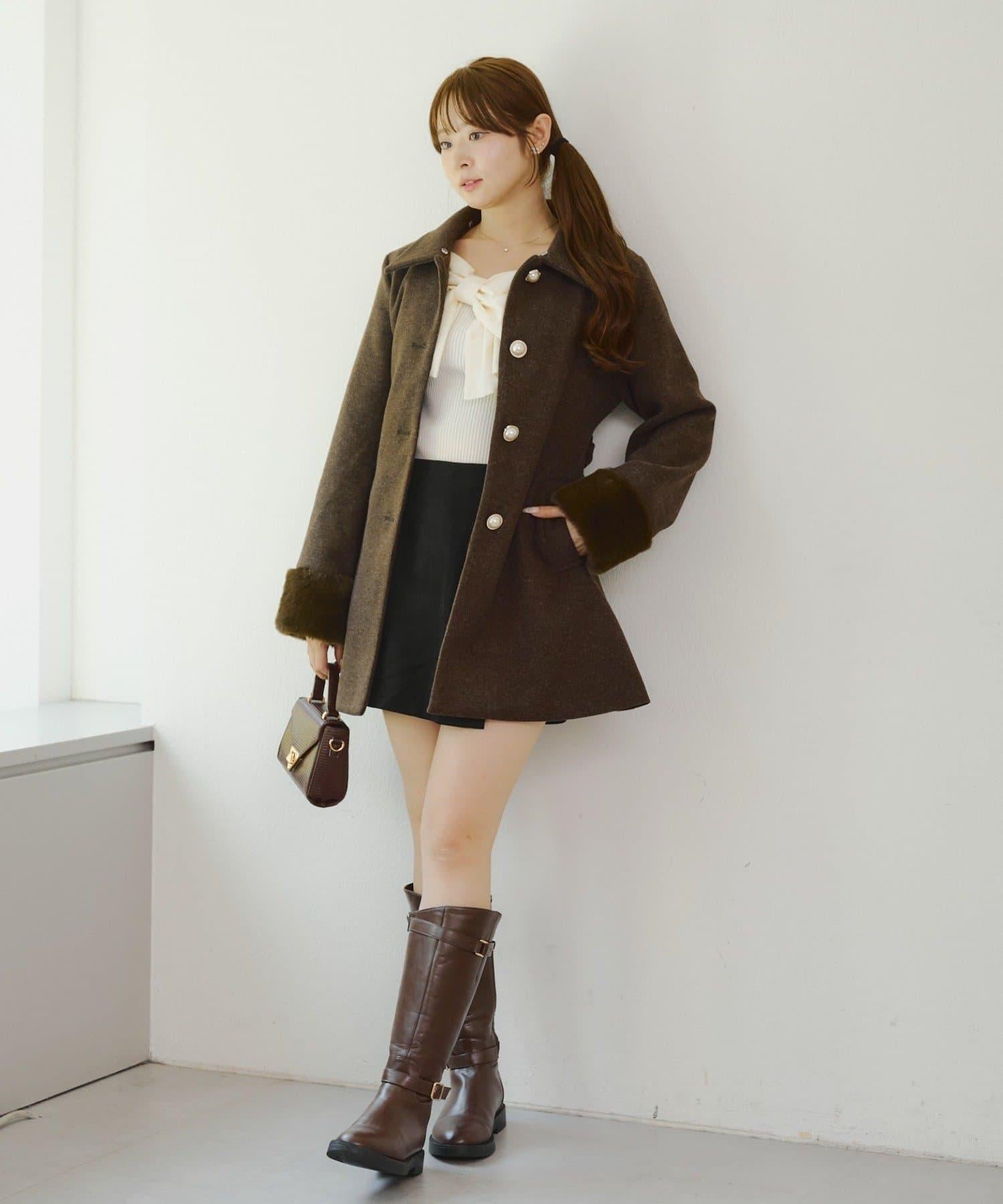 建議搭配迷你下裝,連體款式。腳上搭配長筒靴,少女感十足。