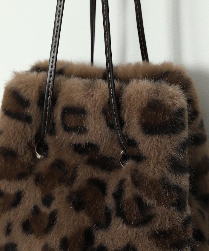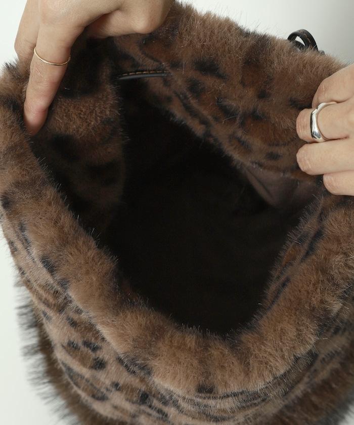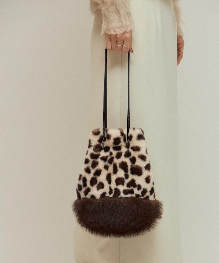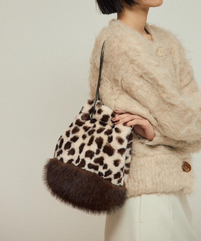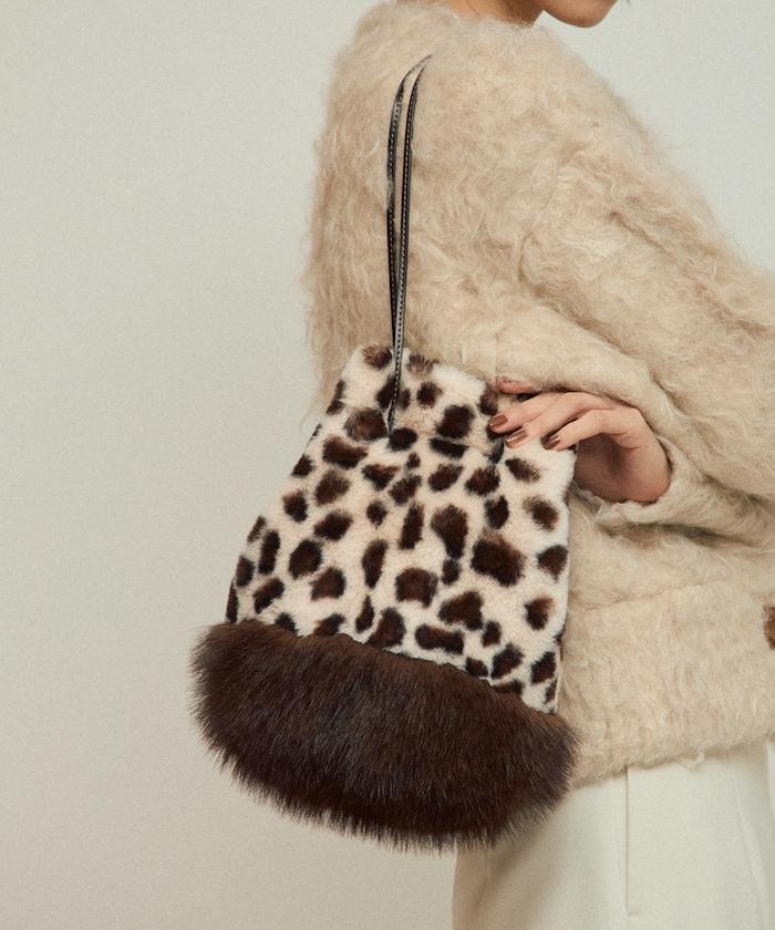 這款手袋將豹紋圖案與蓬鬆的皮草相結合。