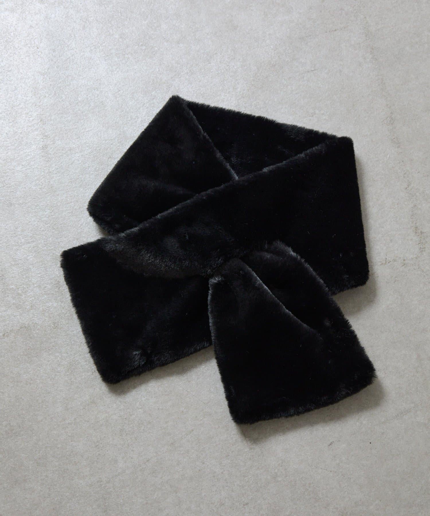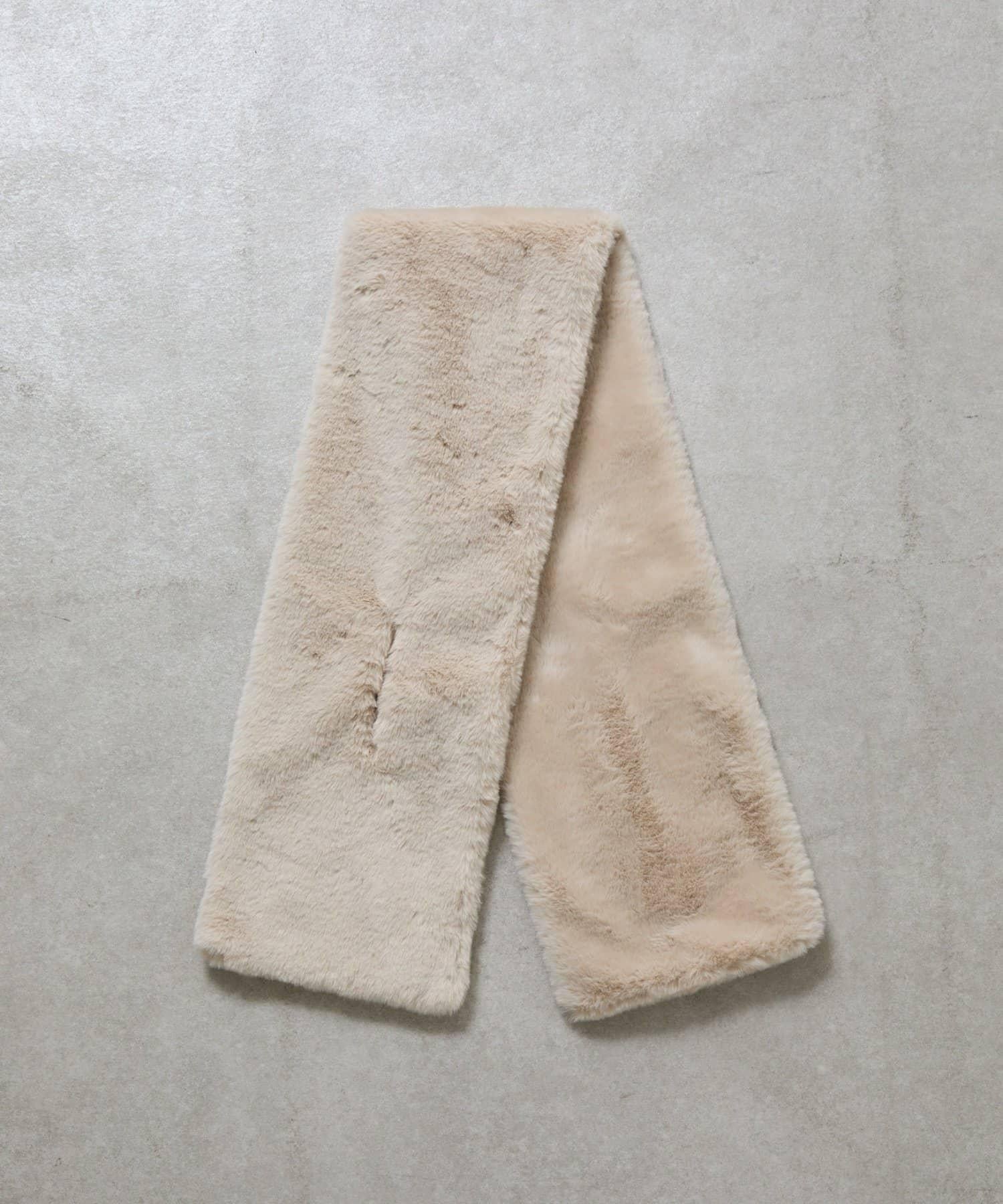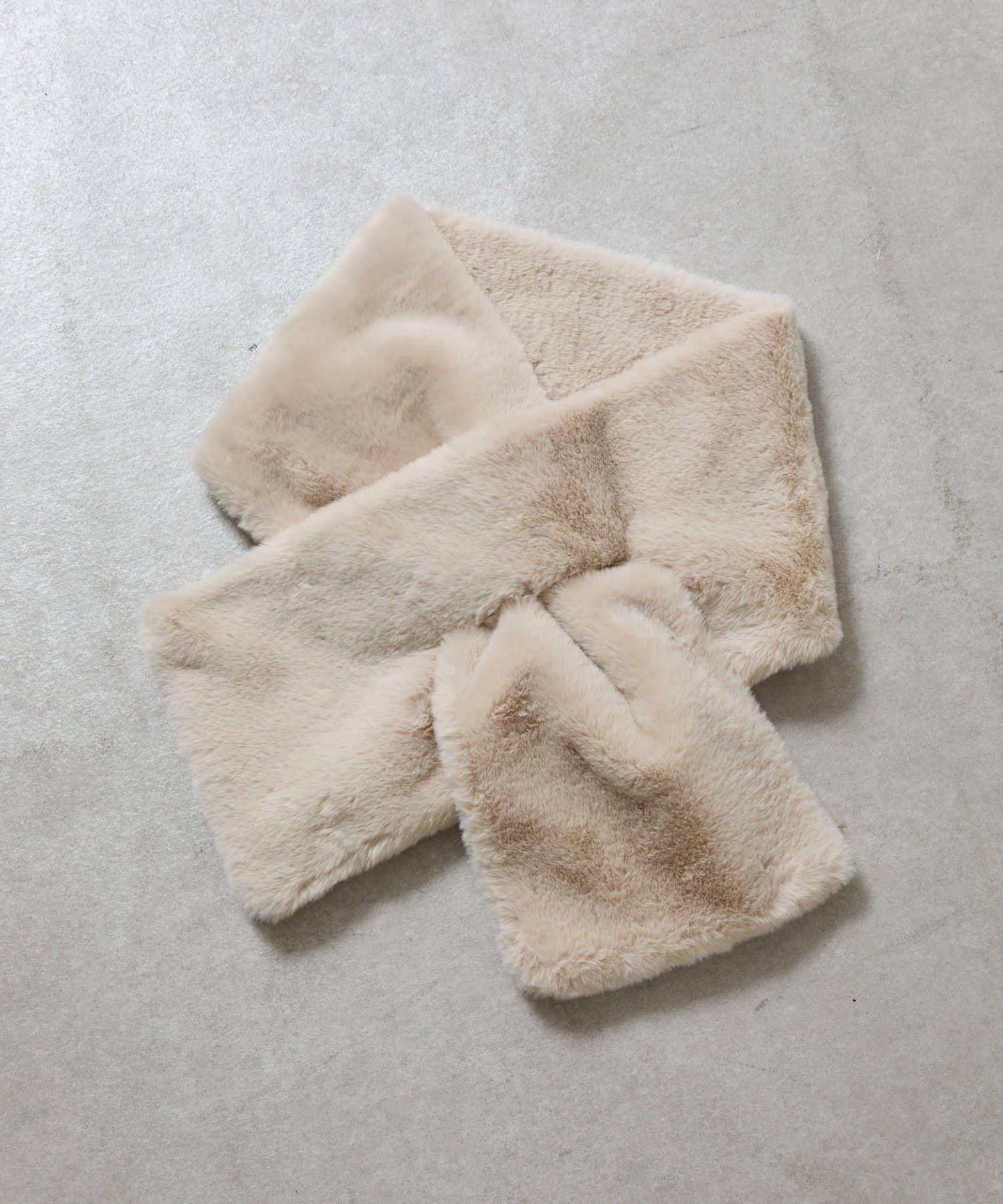 [以蓬鬆的人造皮草為特色的圍巾/頭巾。