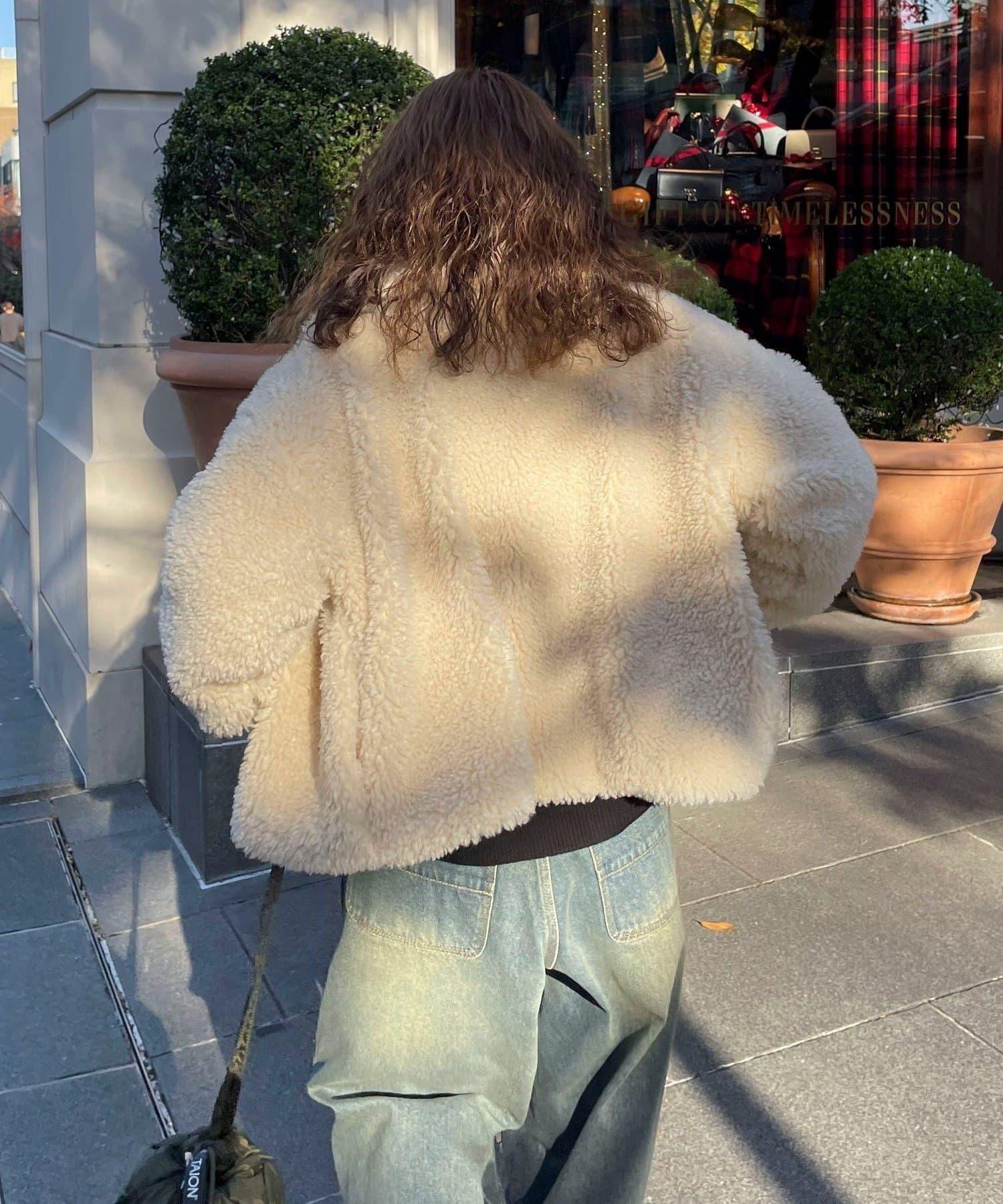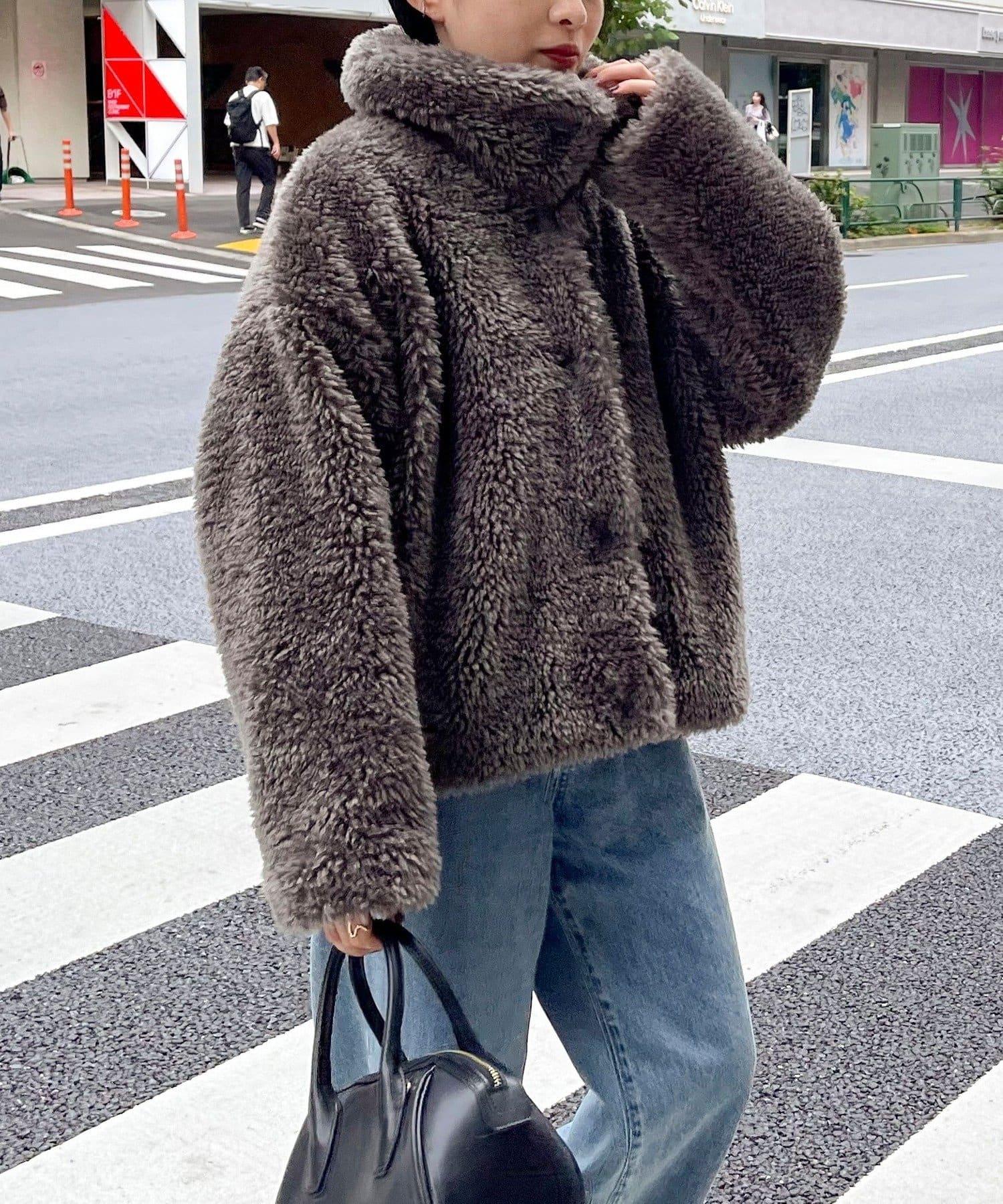 這款人造皮草大衣的豐滿設計十分搶眼。