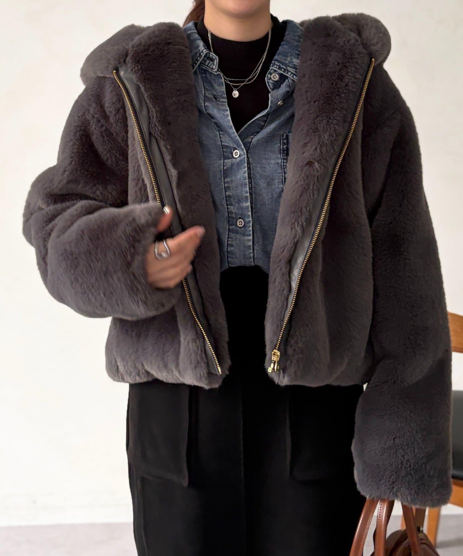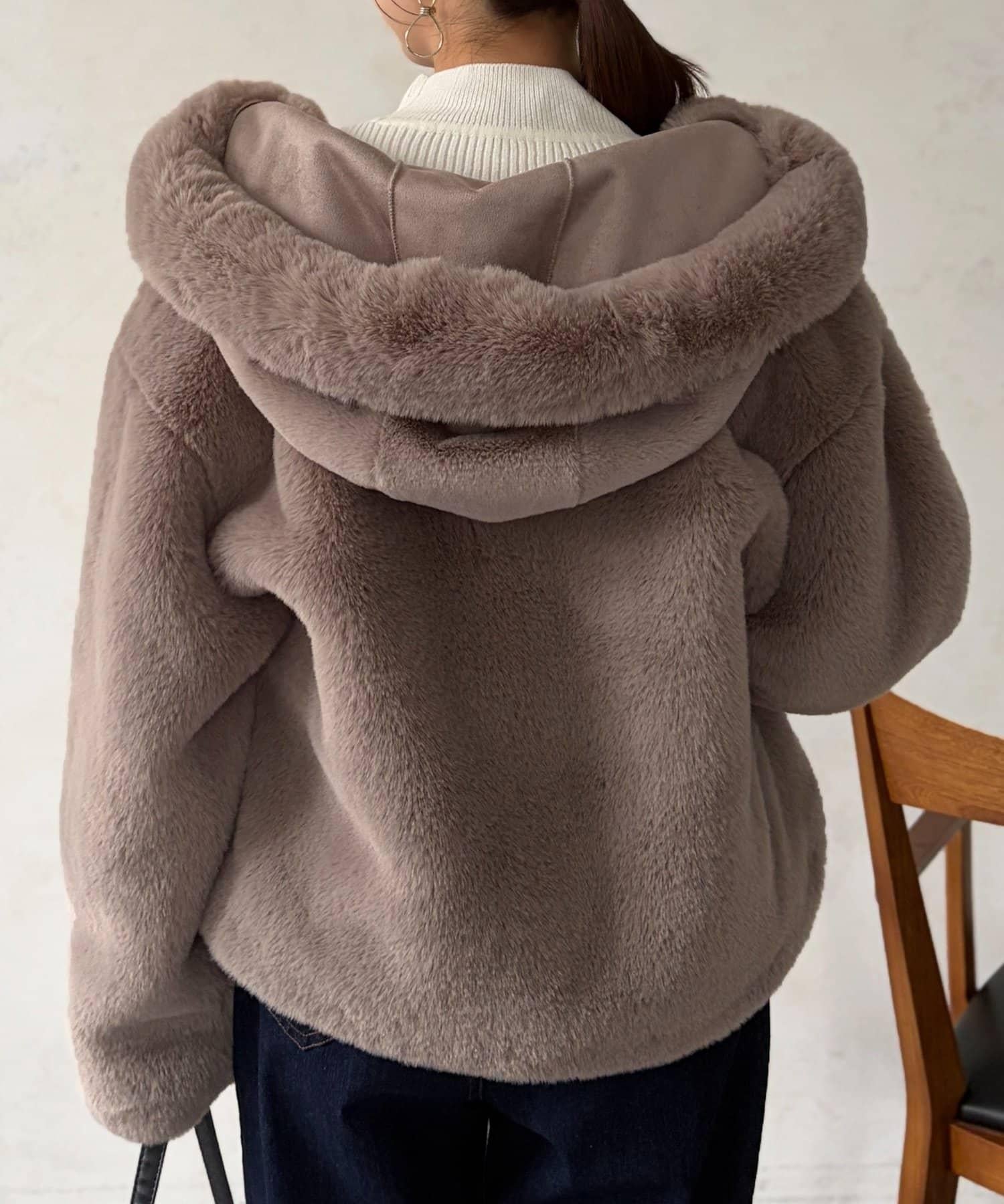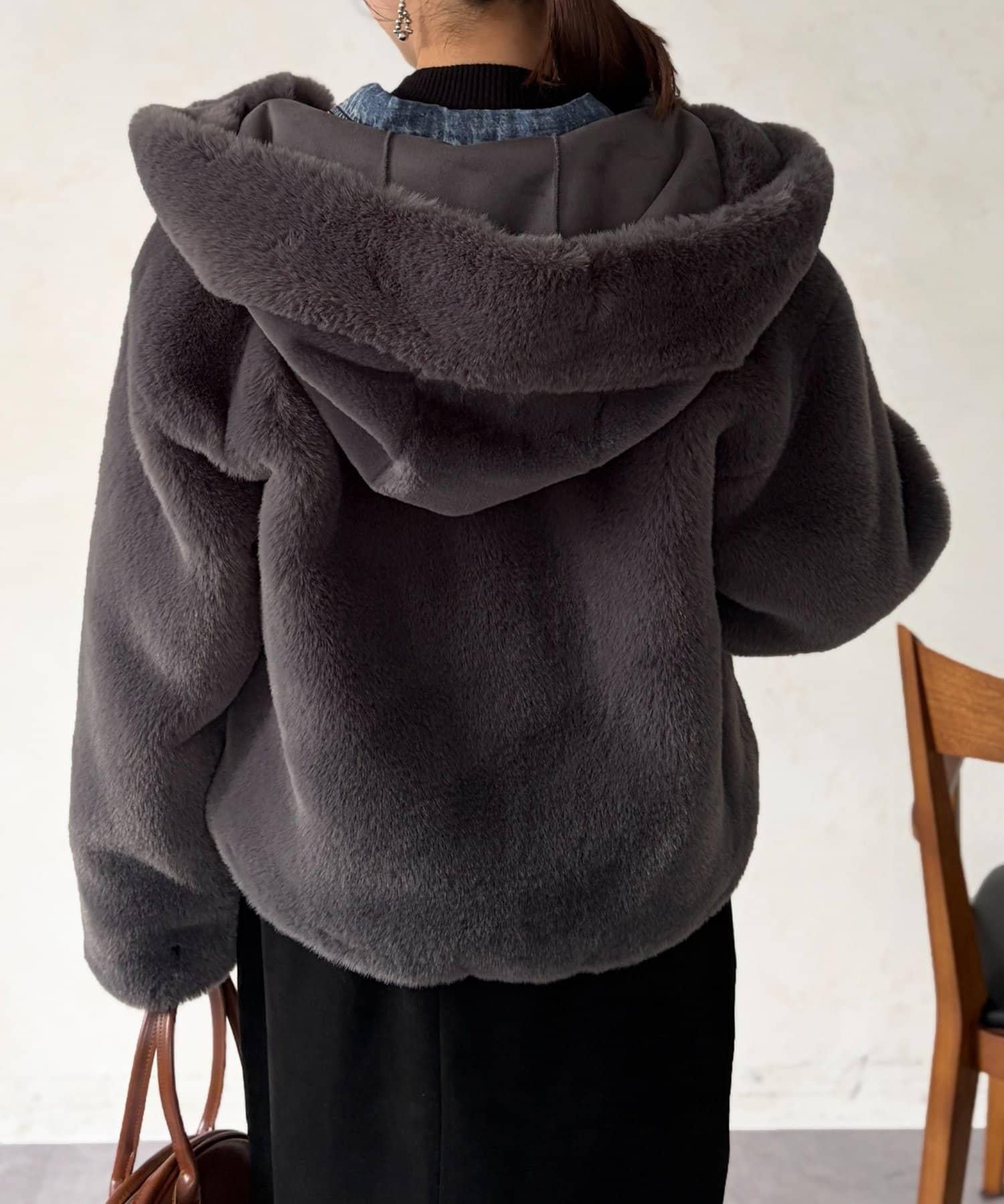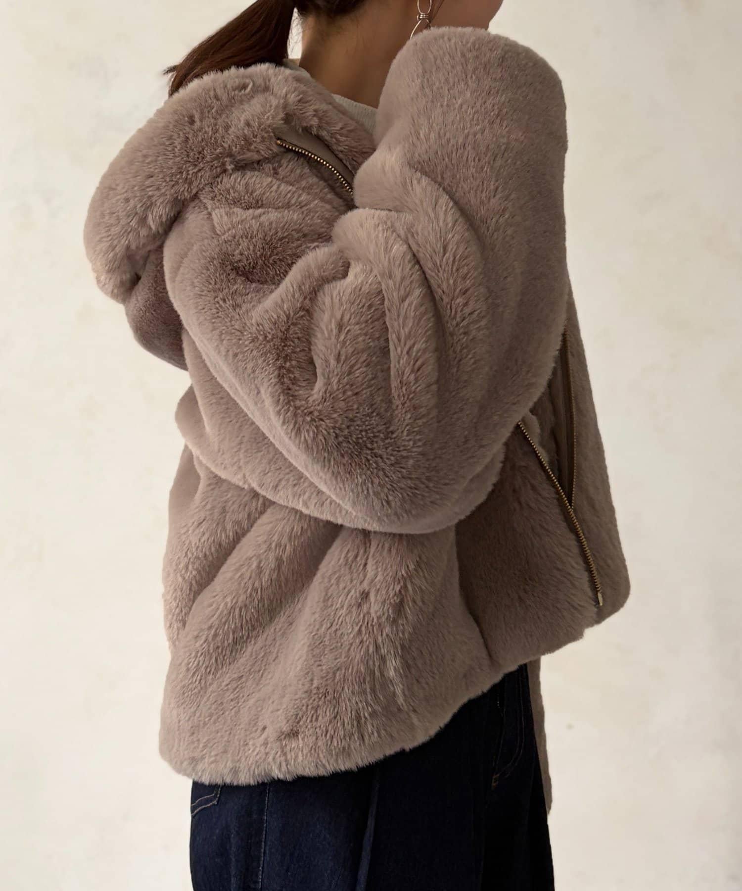 由柔軟蓬鬆的人造皮草製成的夾克。