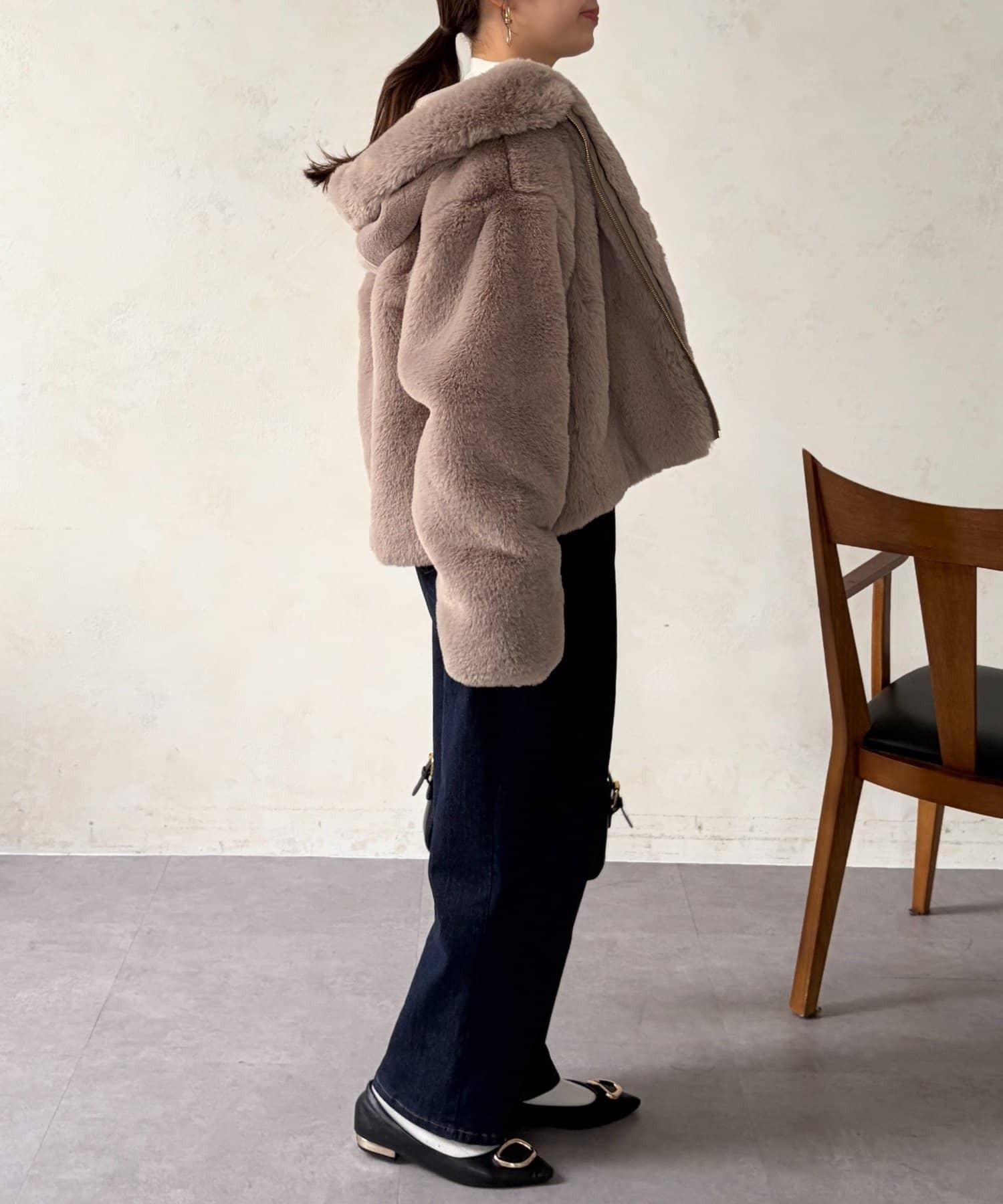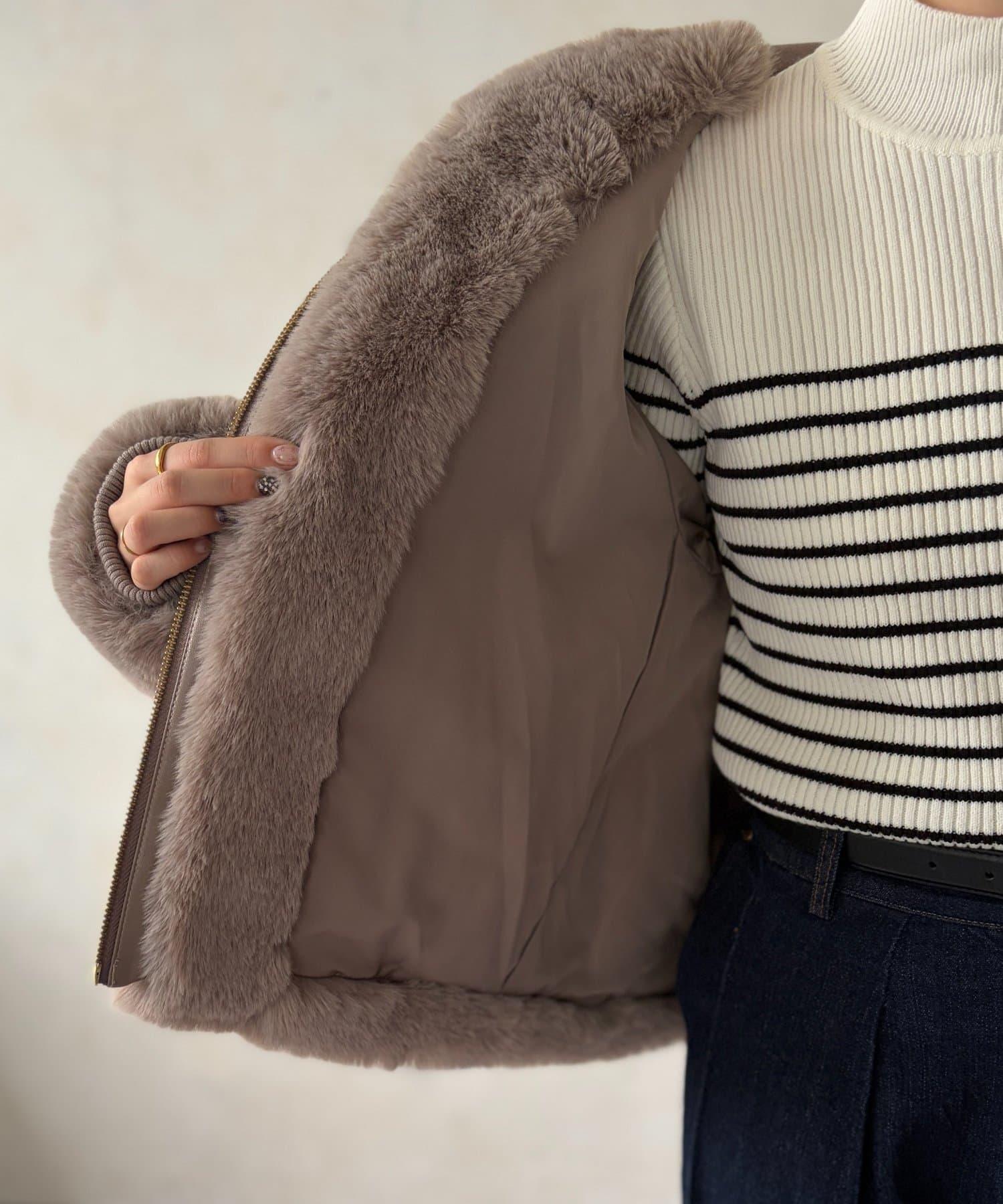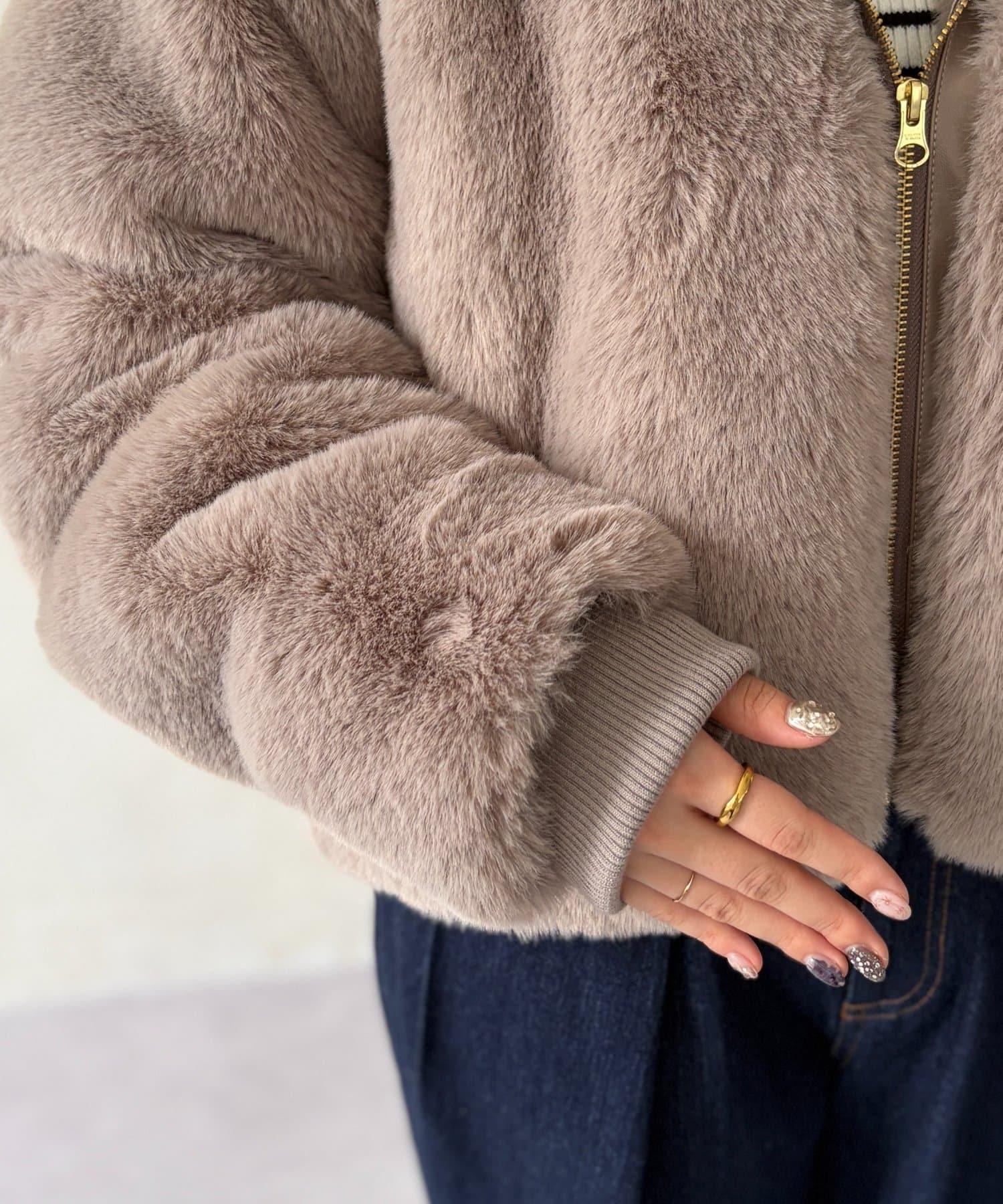 由柔軟蓬鬆的人造皮草製成的夾克。
