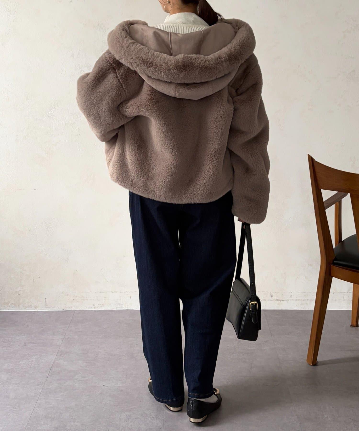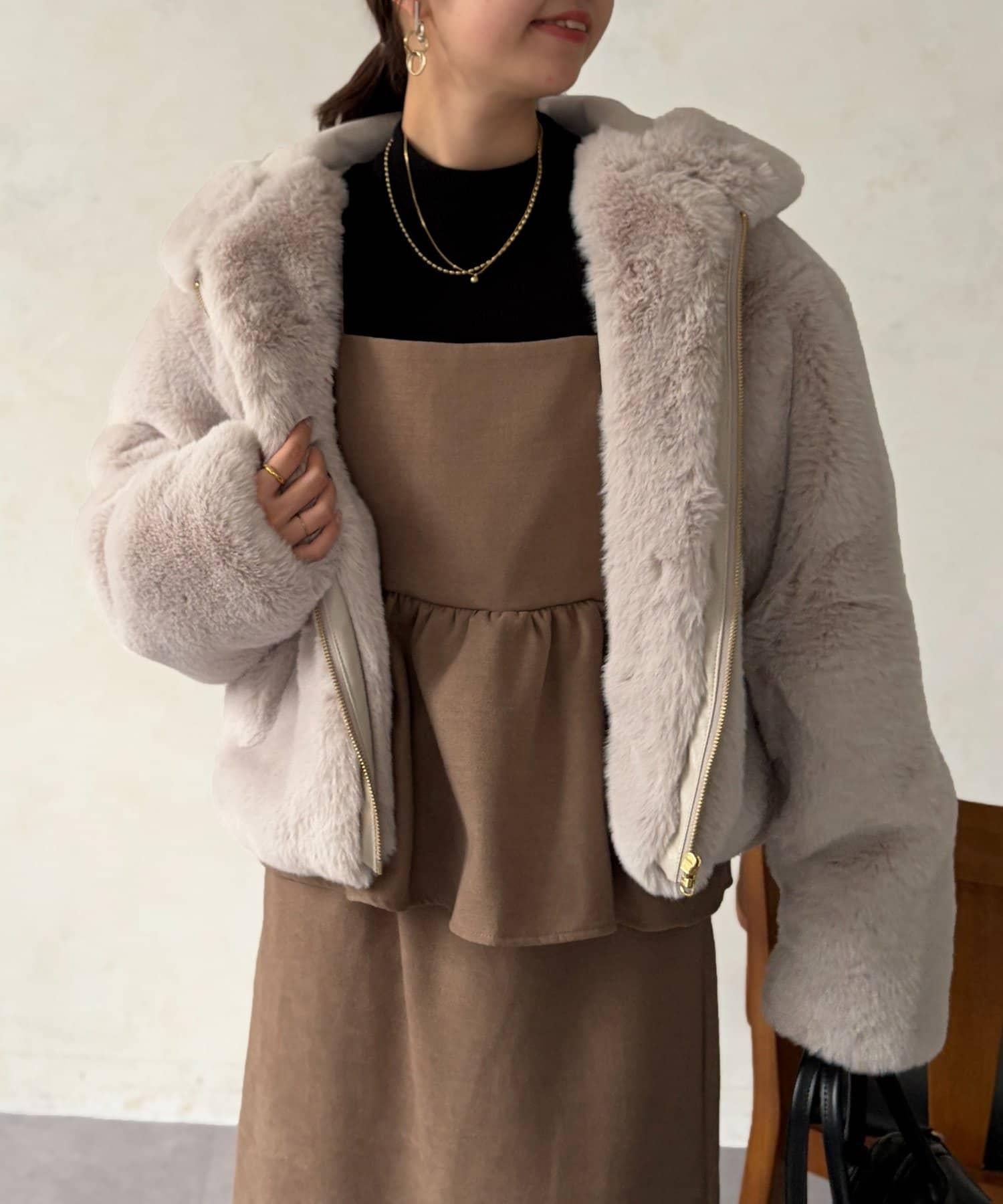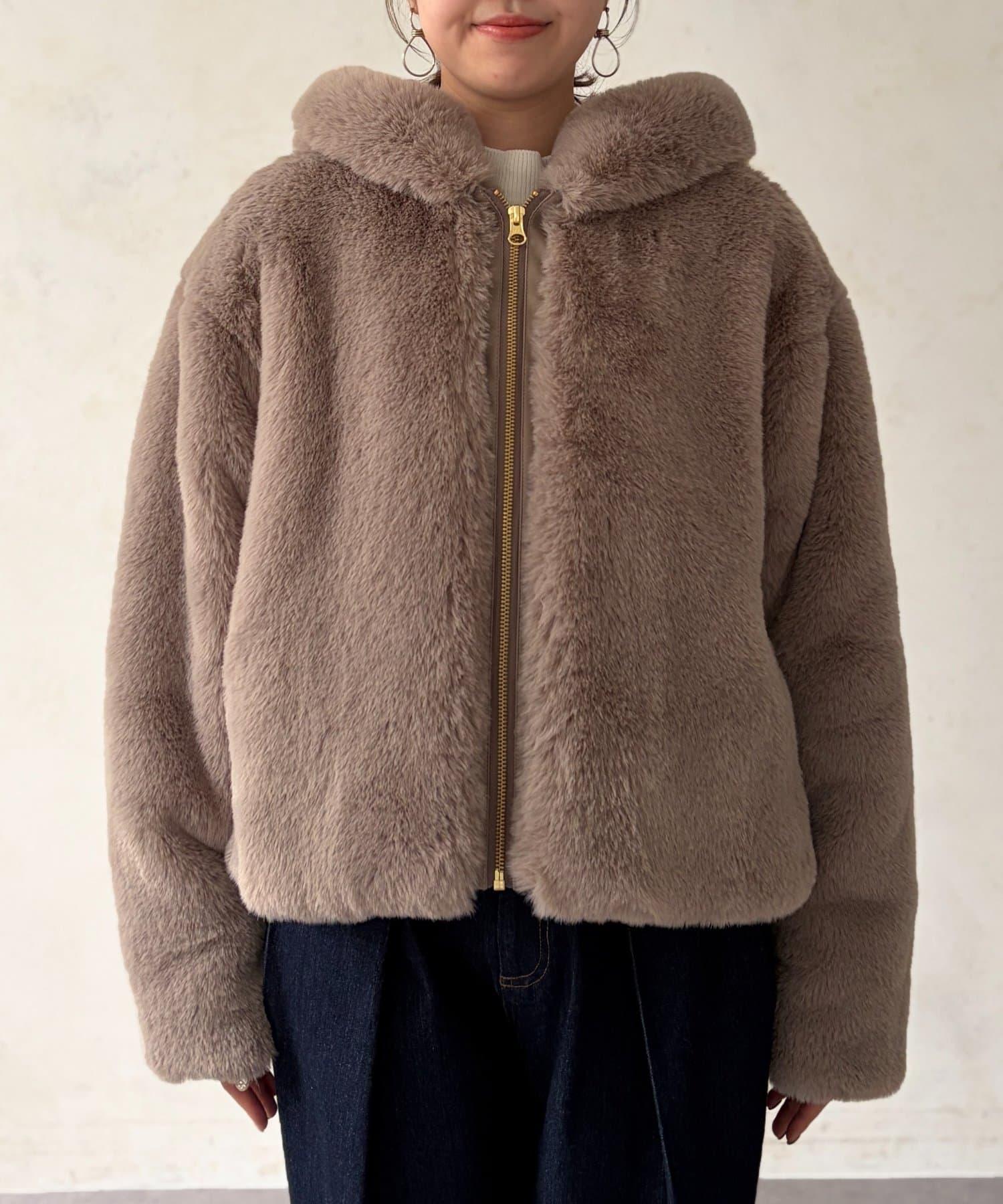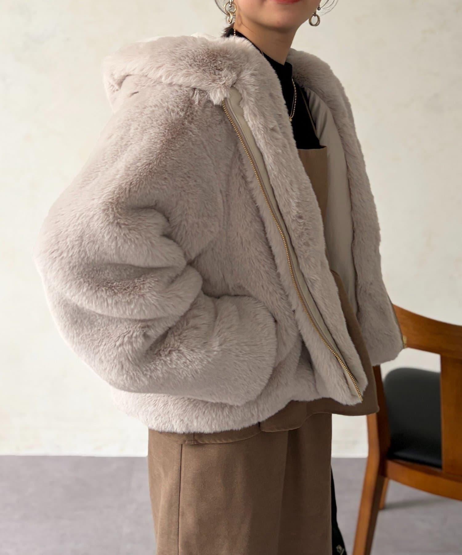 由柔軟蓬鬆的人造皮草製成的夾克。