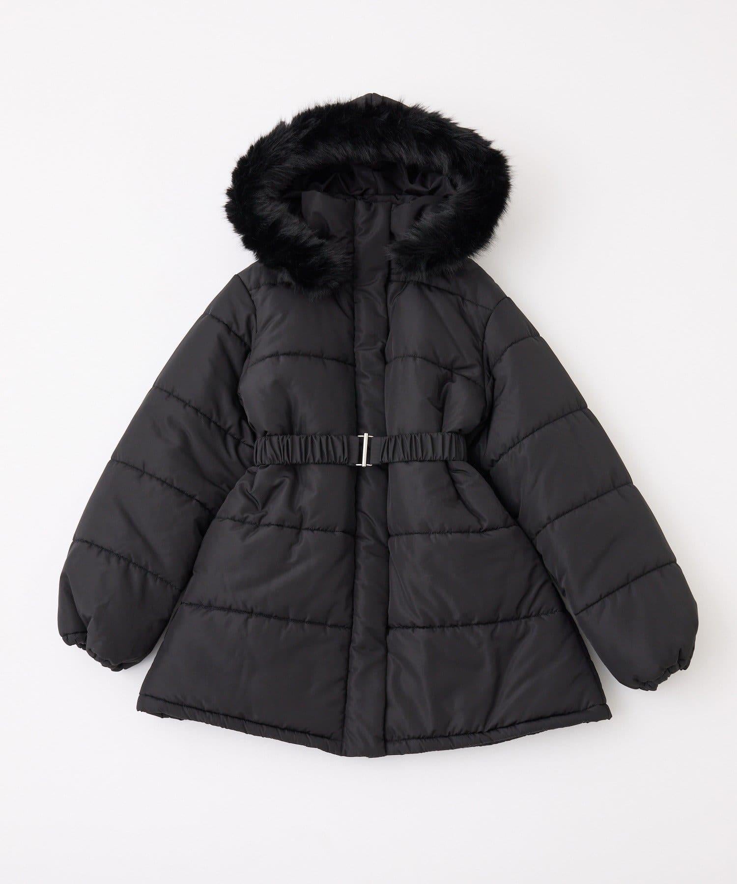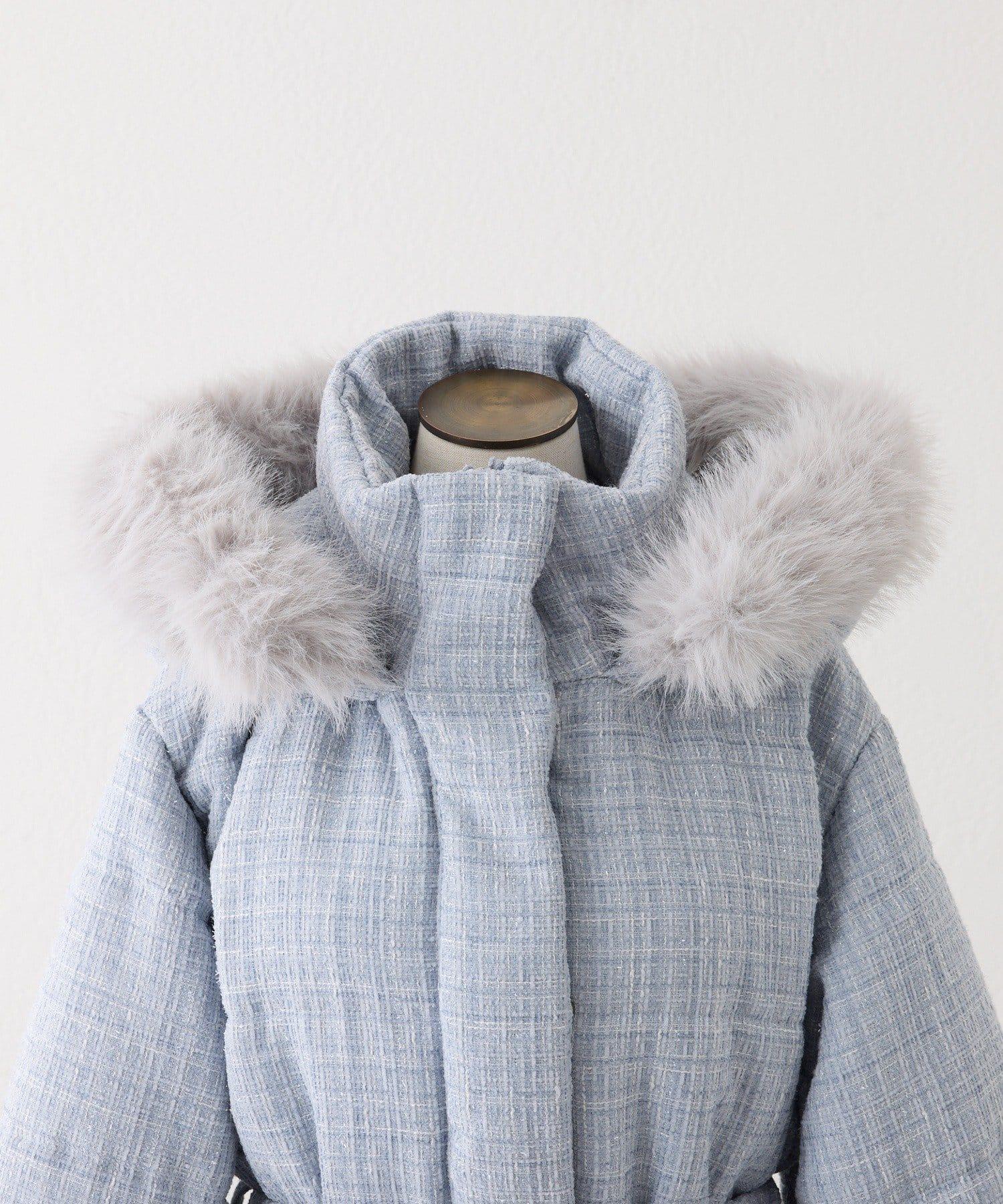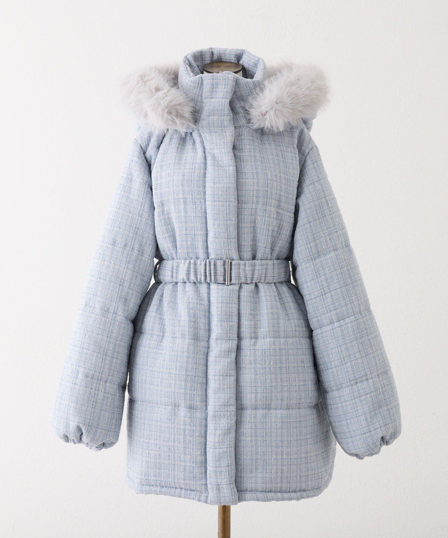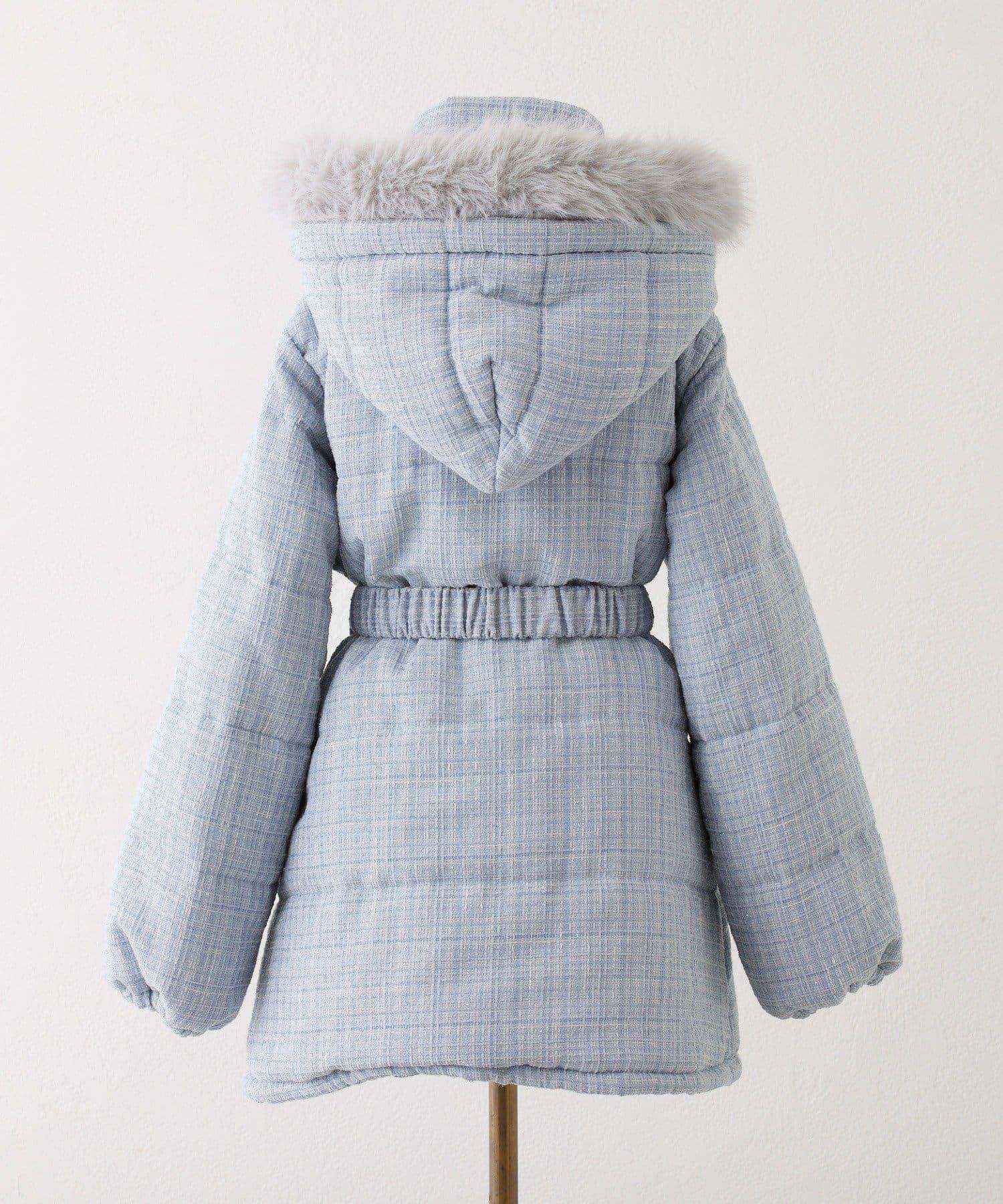 預約商品仿皮草連帽帶腰帶仿羽絨服