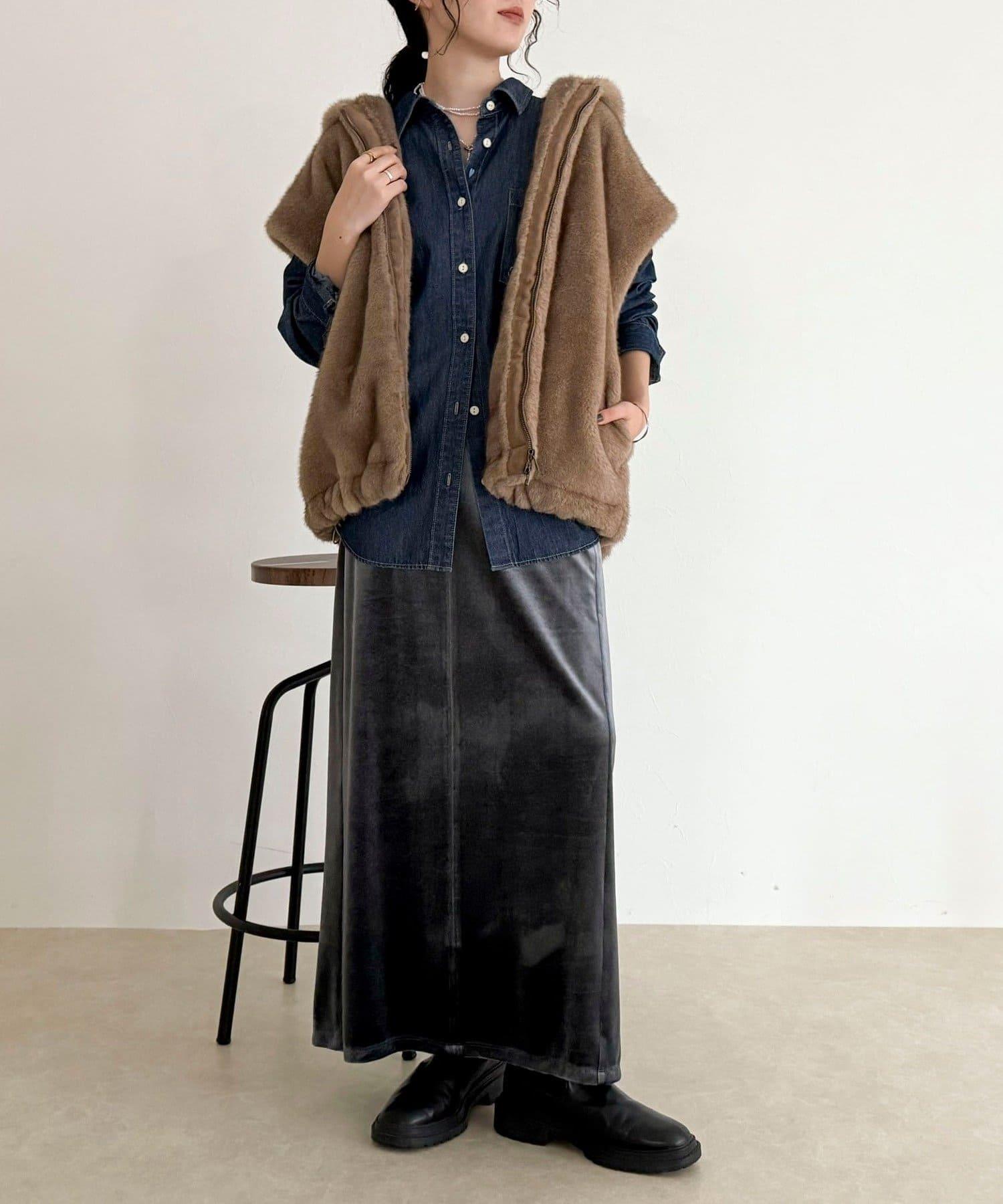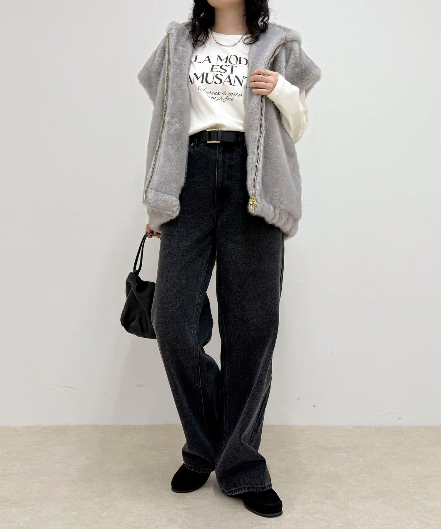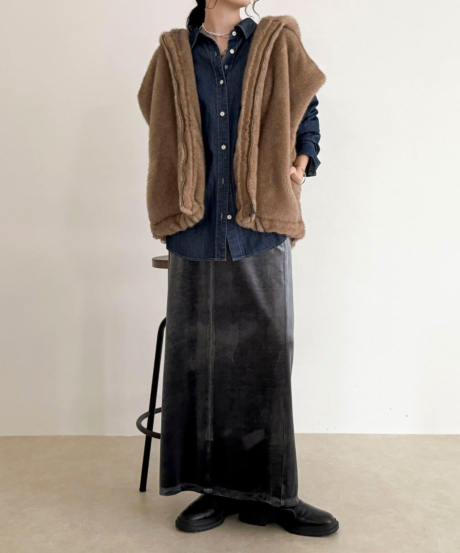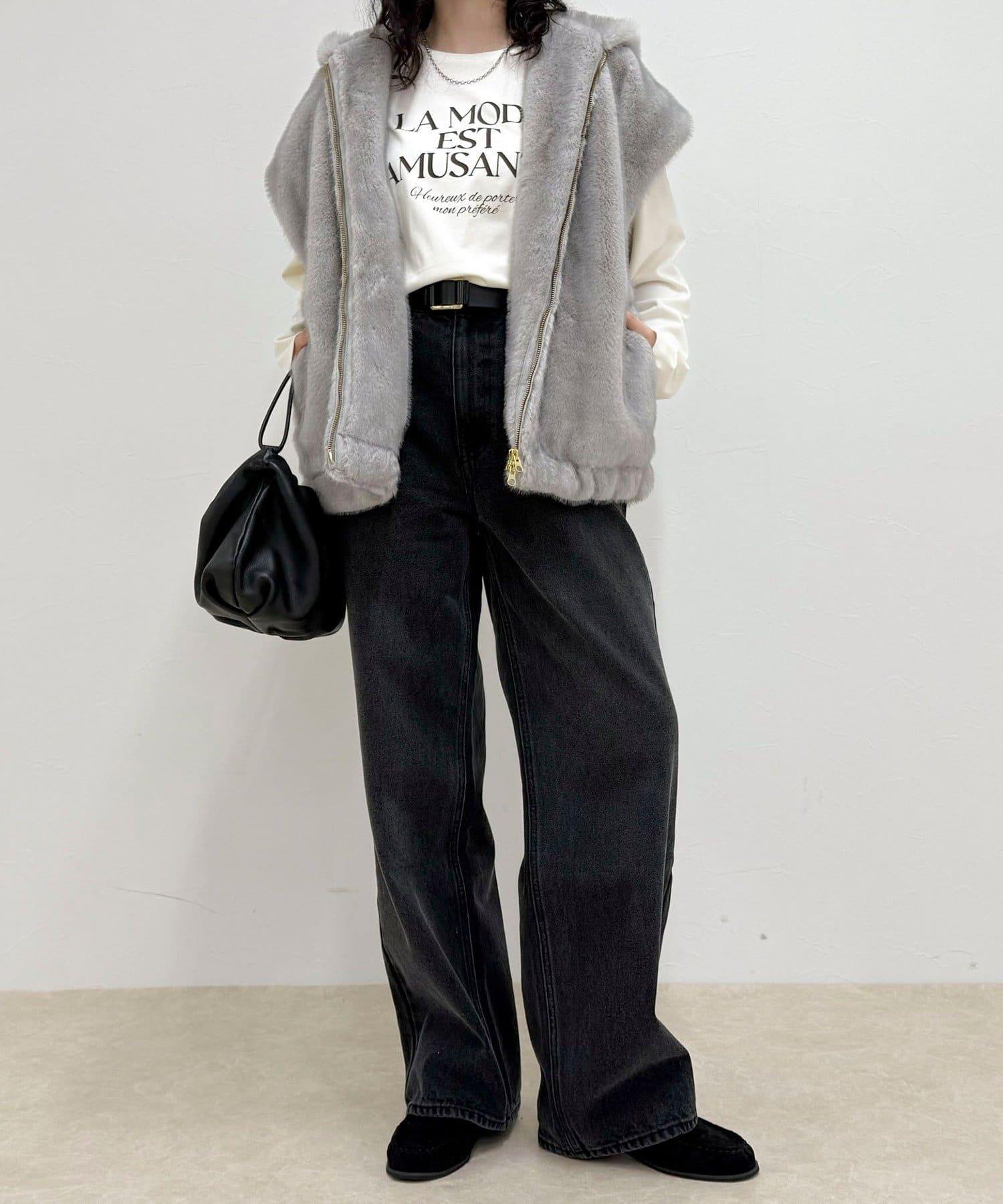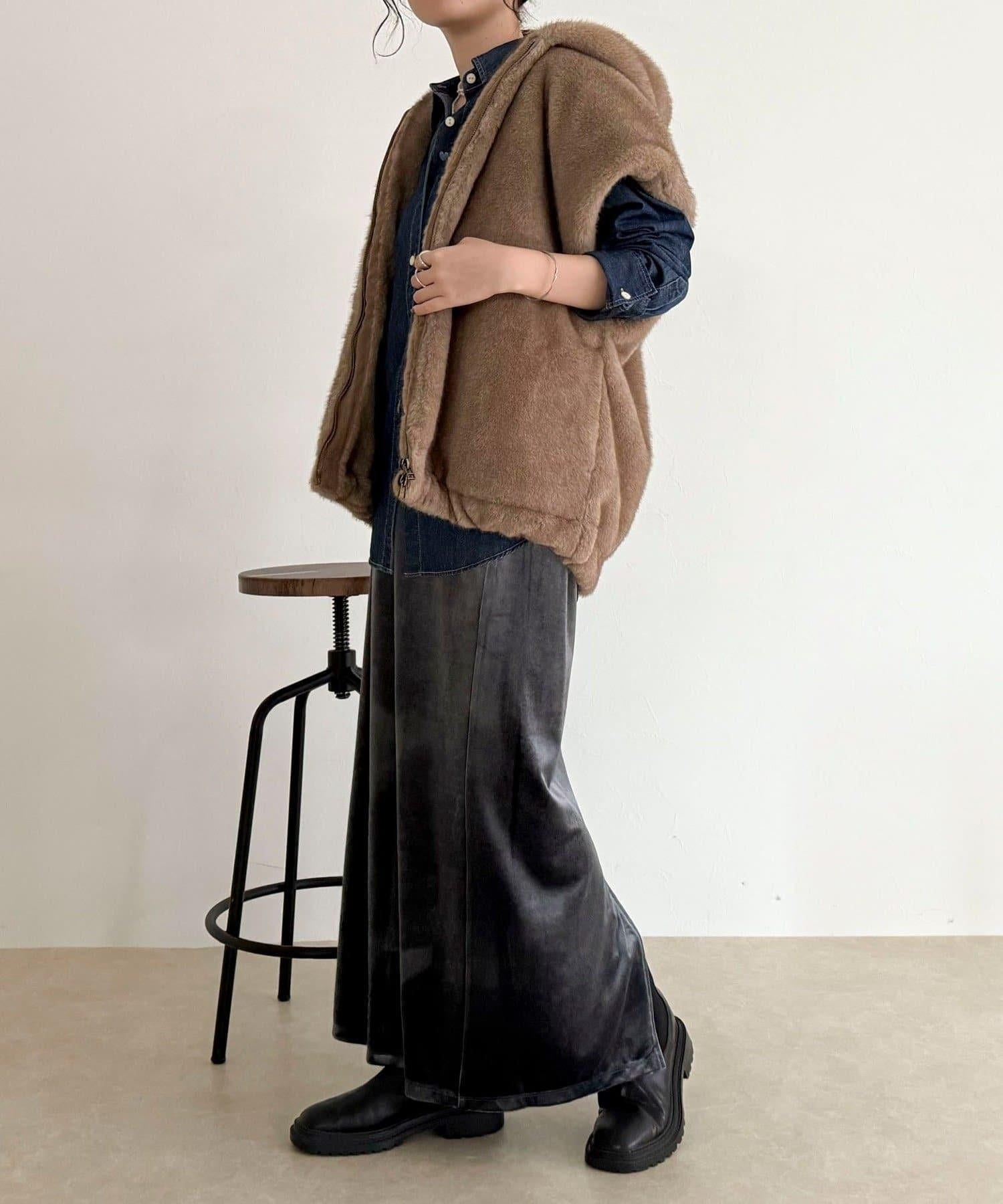 使用人造皮草的連帽馬甲,氣場十足。