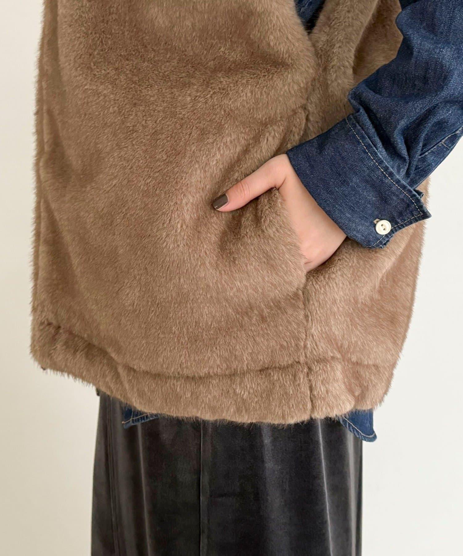 人造皮草馬甲,適合成人休閒裝。