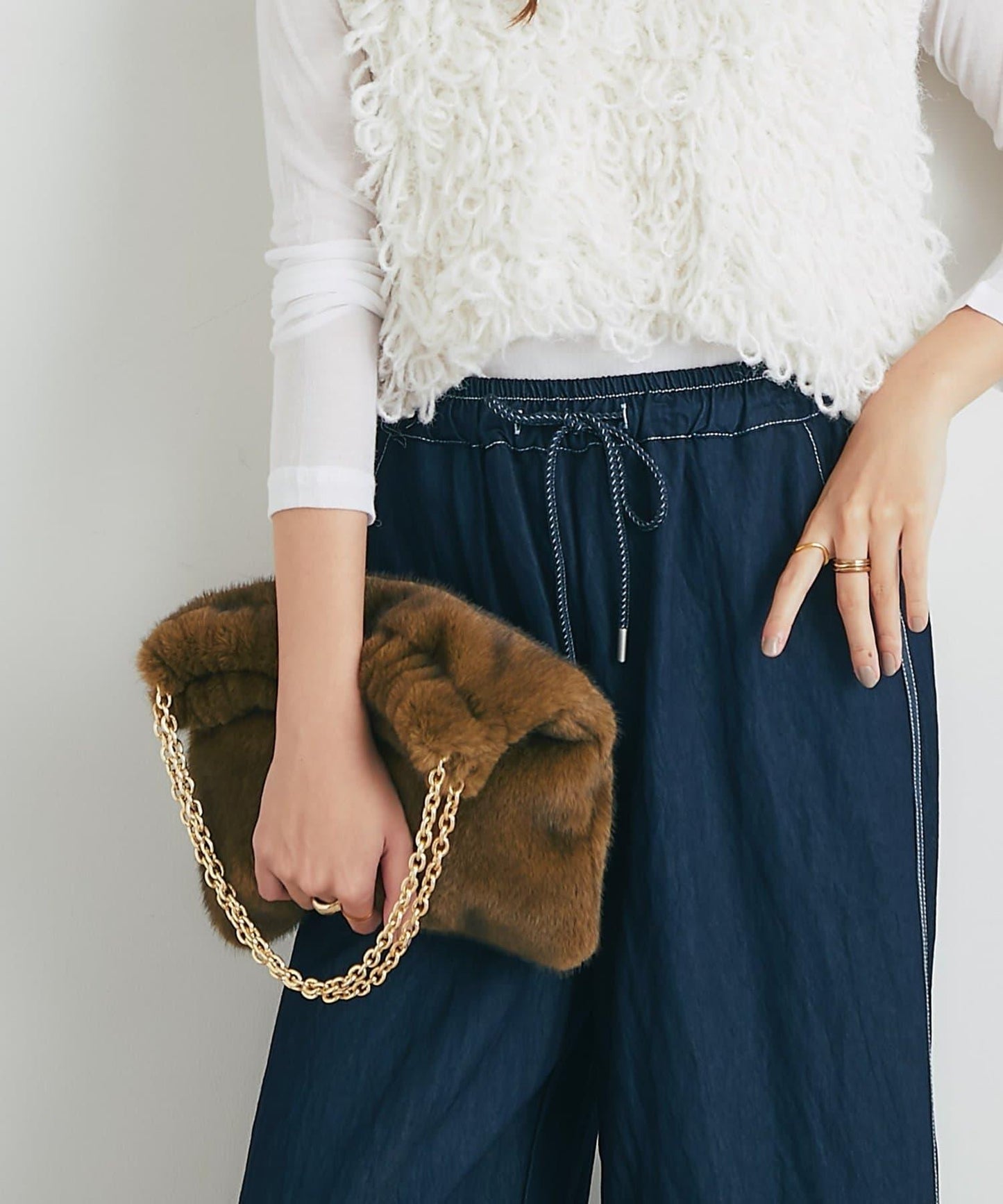 這款包包採用豐富的人造毛皮製成,非常適合即將到來的季節。