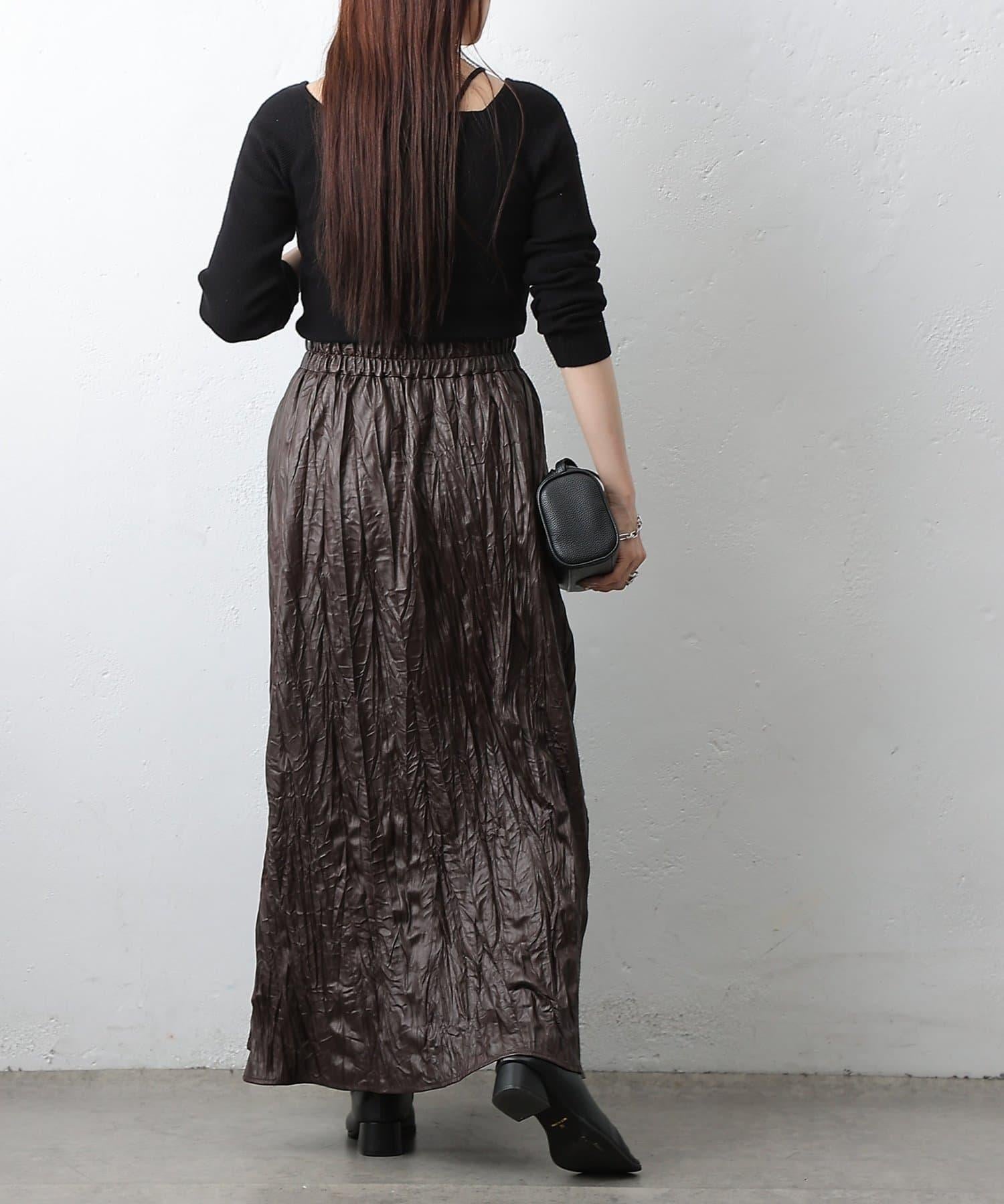 人造皮革散發著優雅的光澤,加上水洗表面處理,恰到好處地增加了褶皺感。