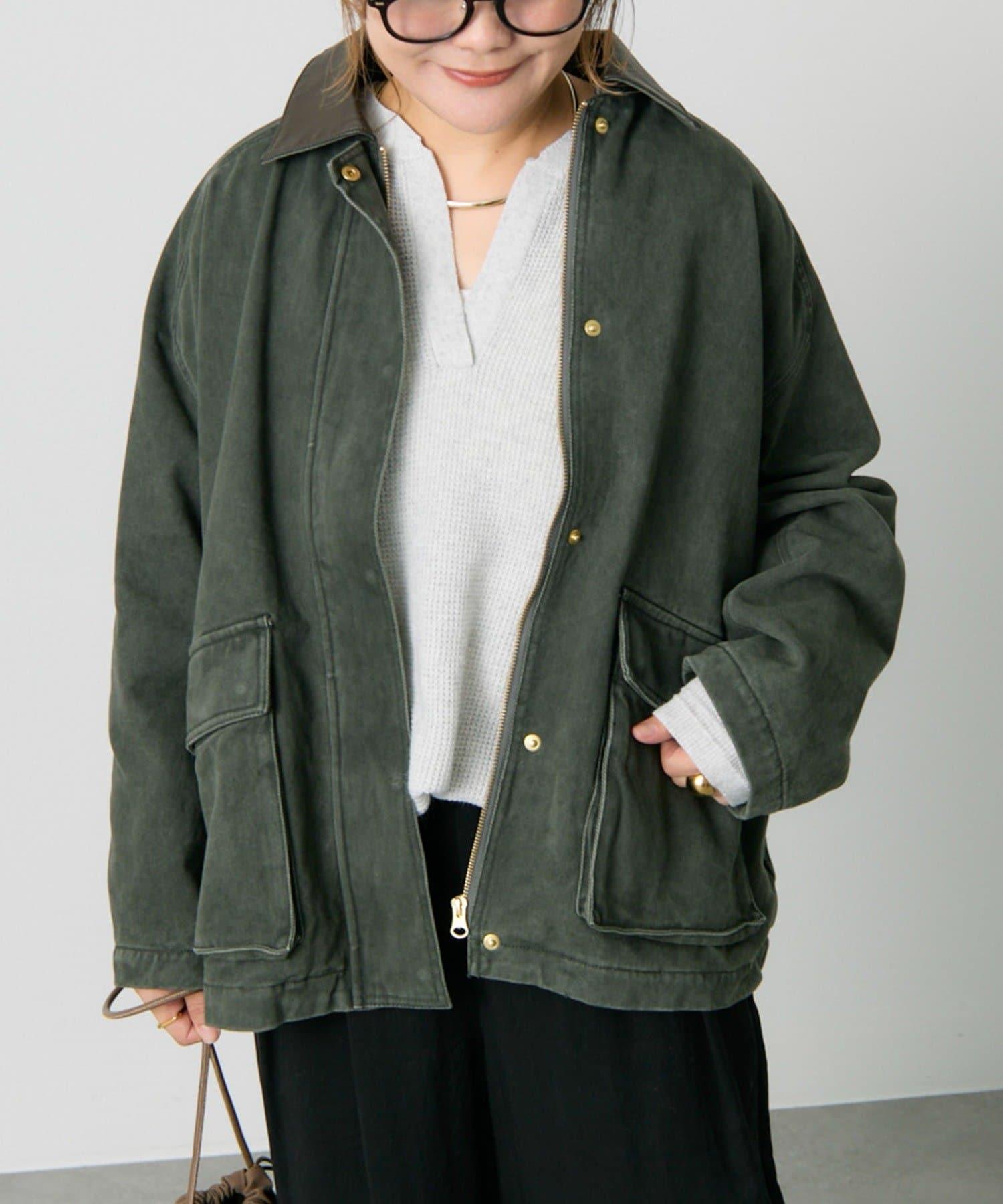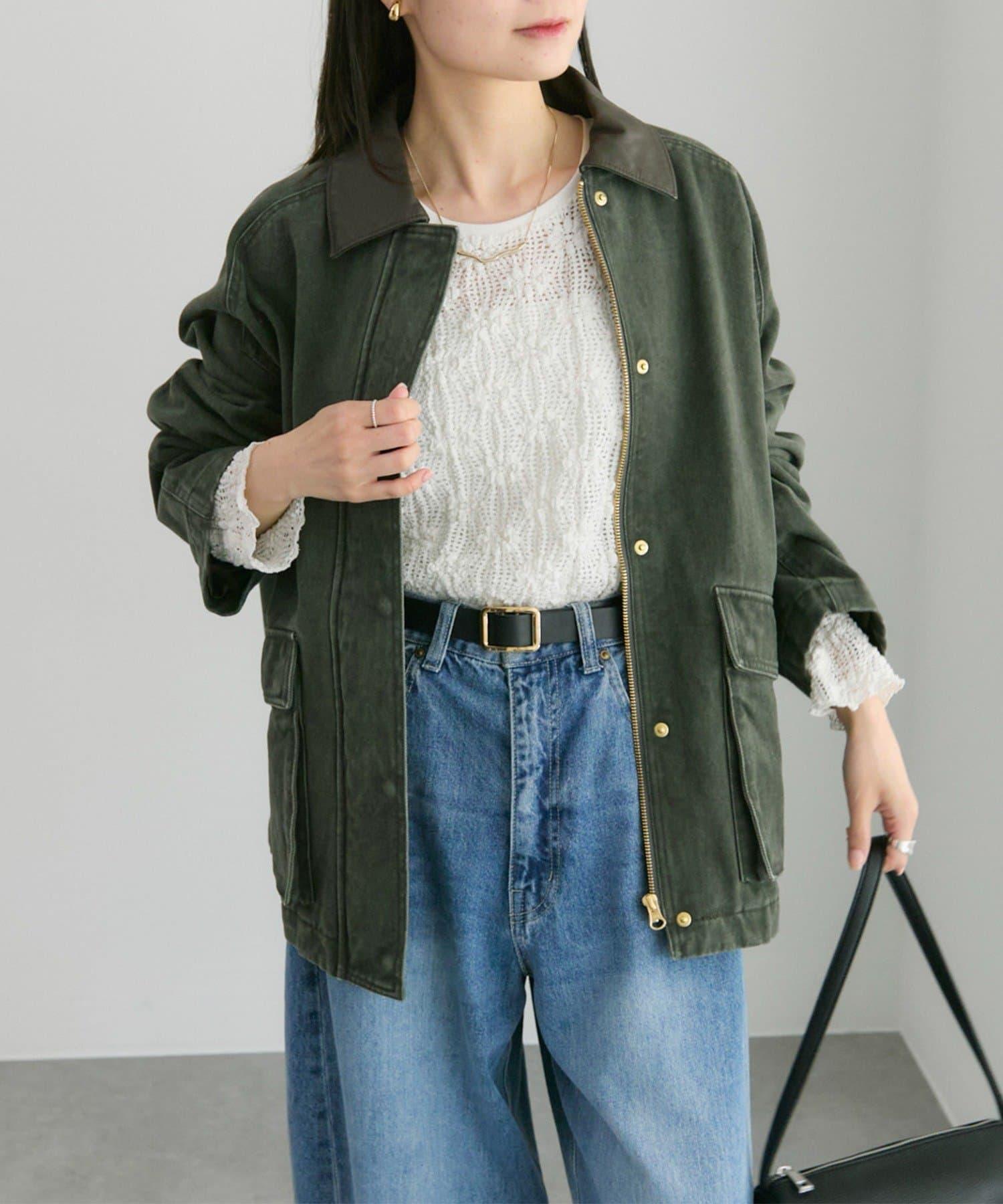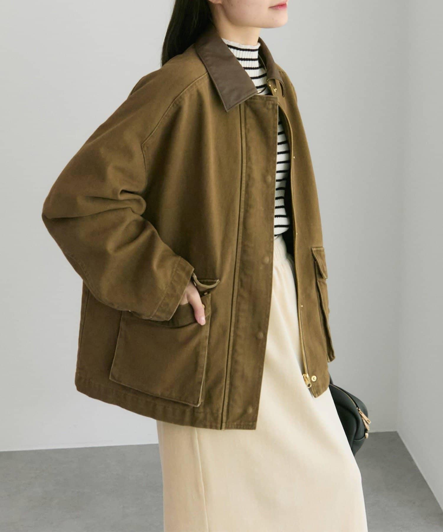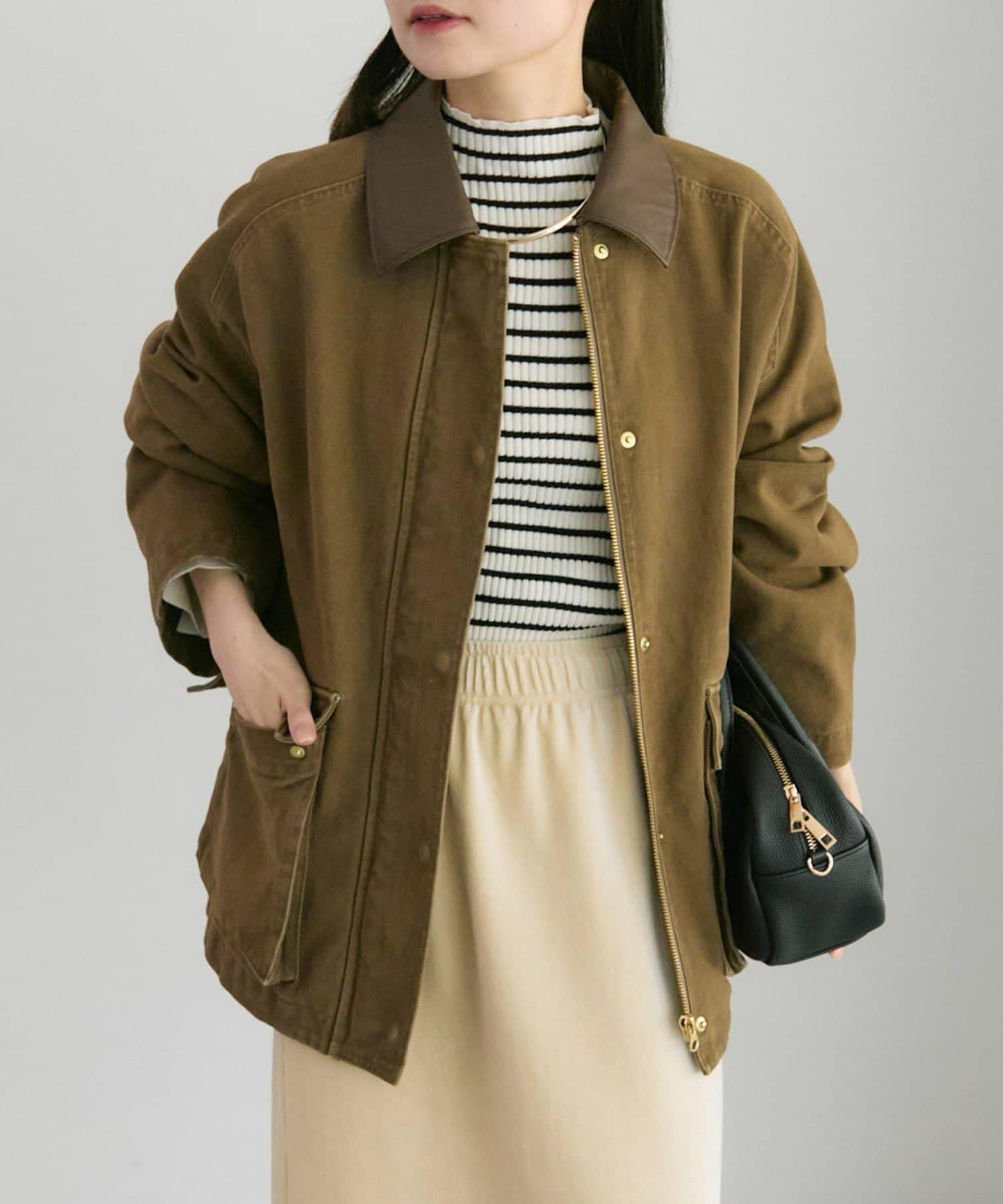 中長款夾克,領子採用不同材質。