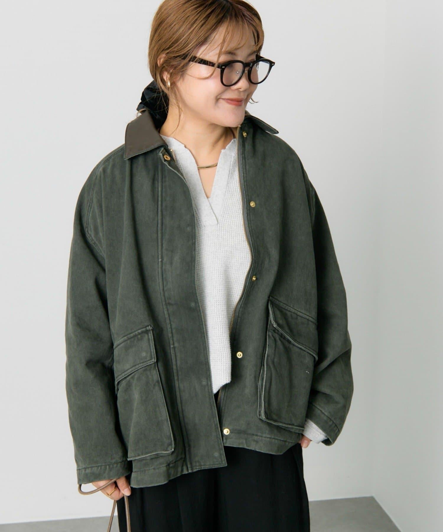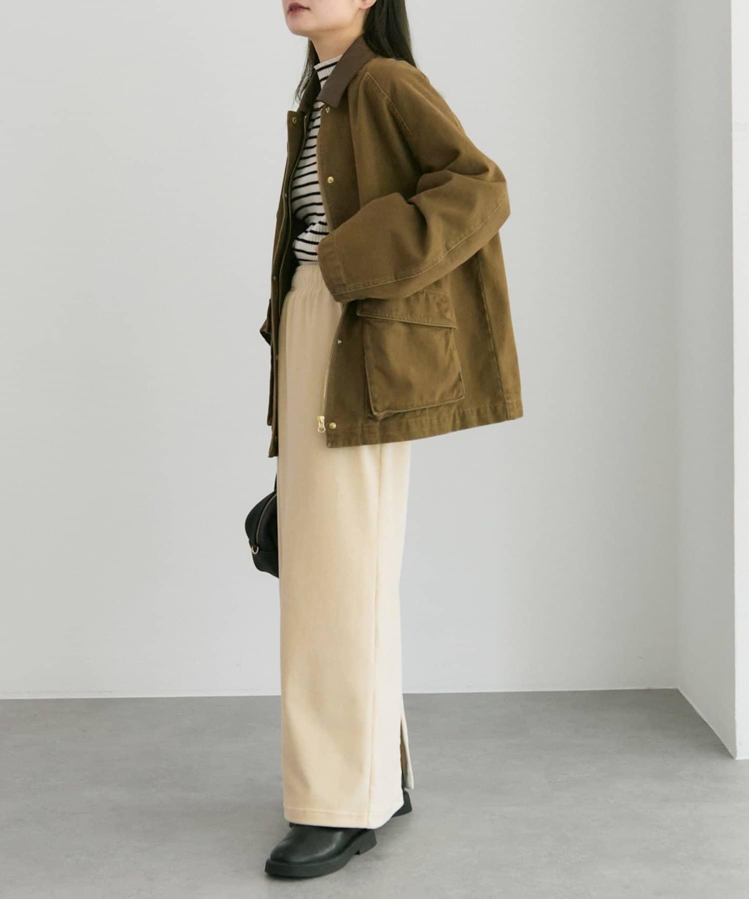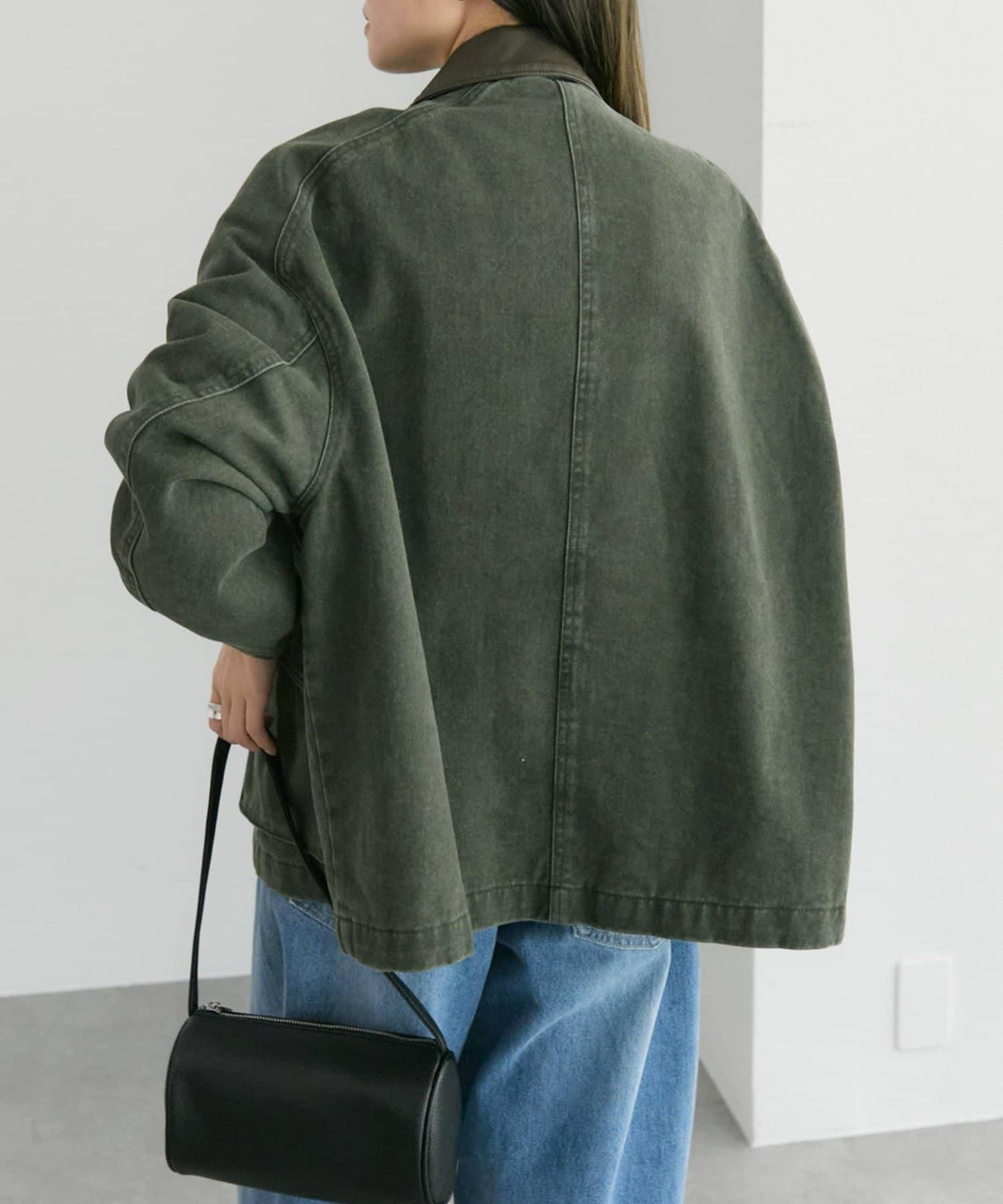 中長款夾克,領子採用不同材質。