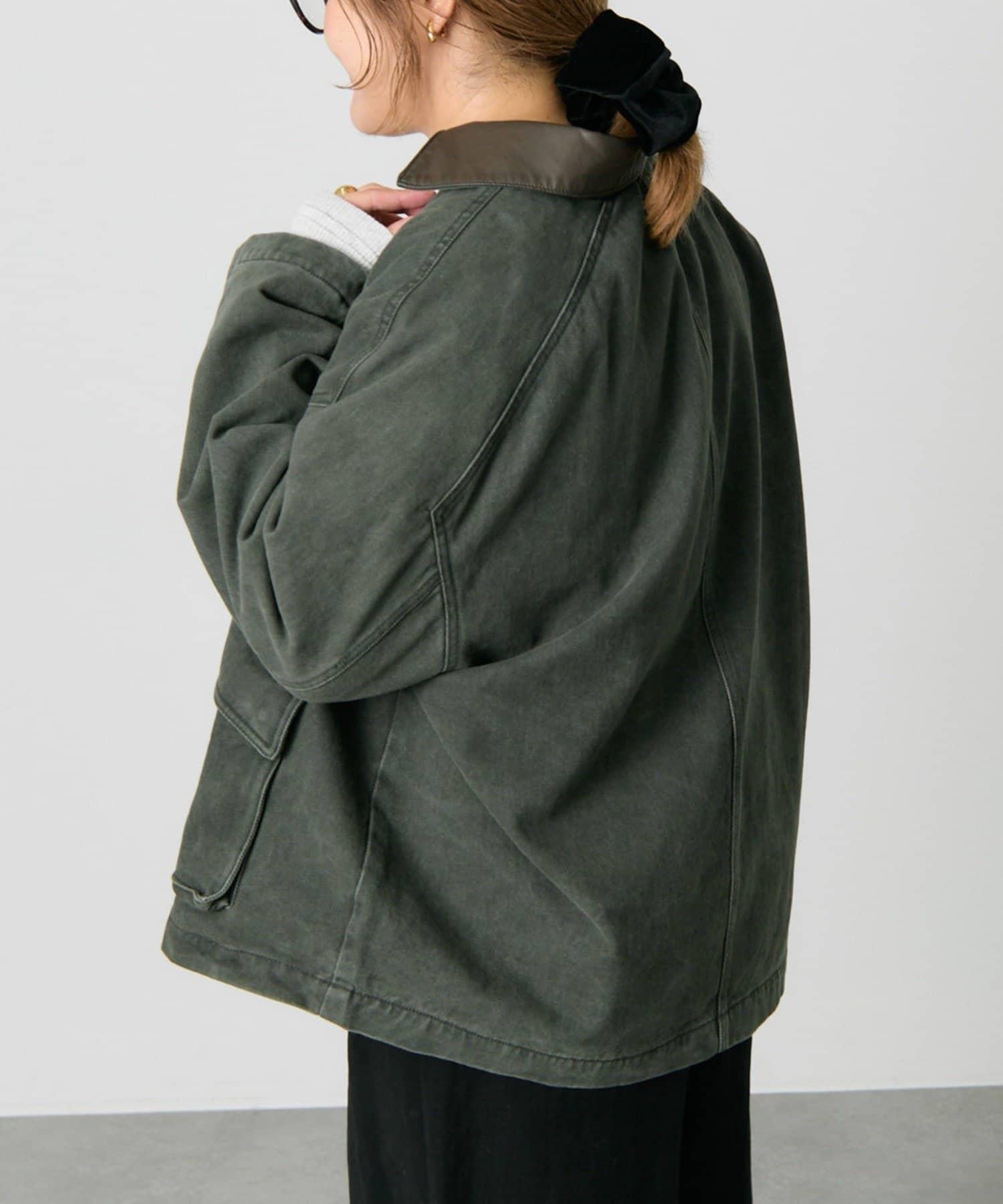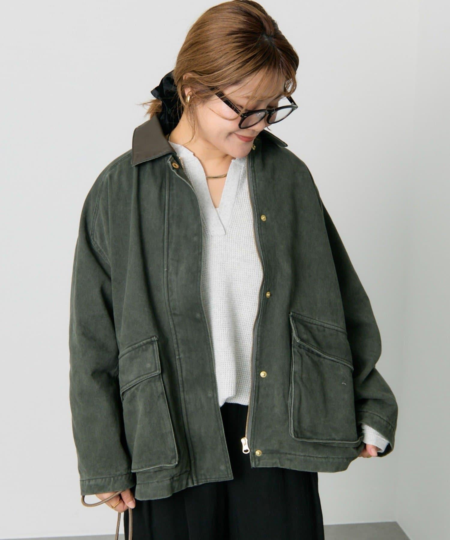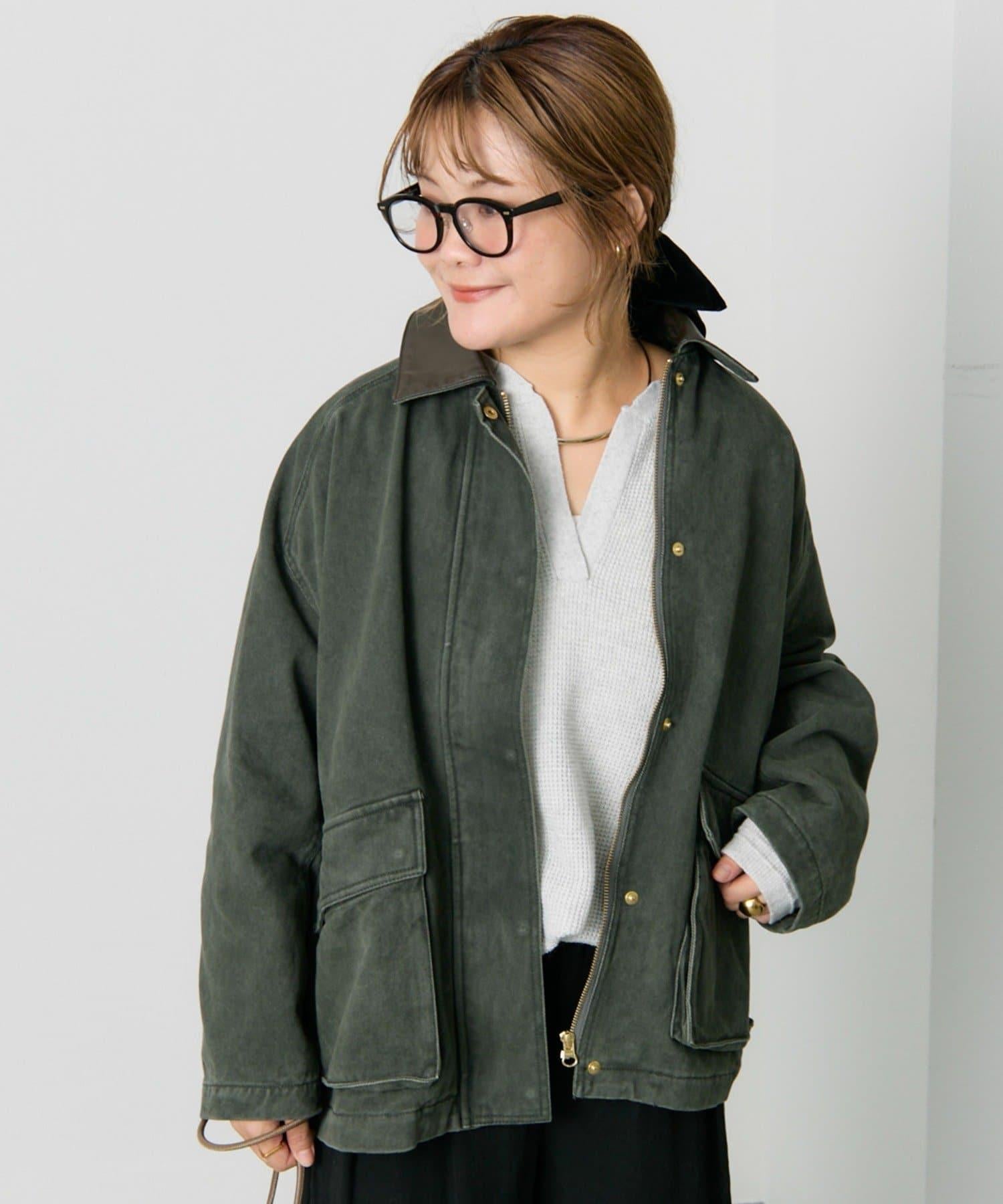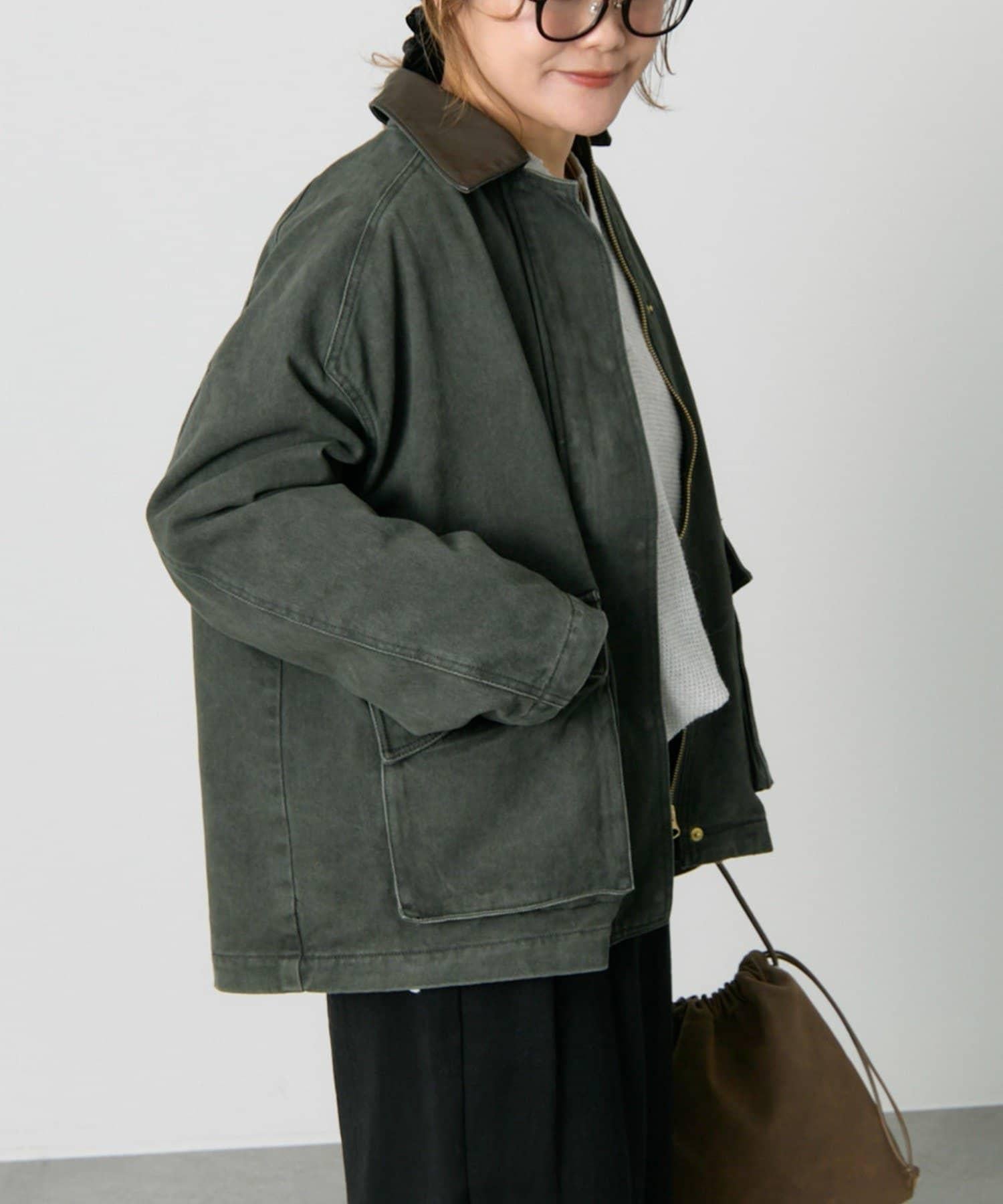 中長款夾克,領子採用不同材質。
