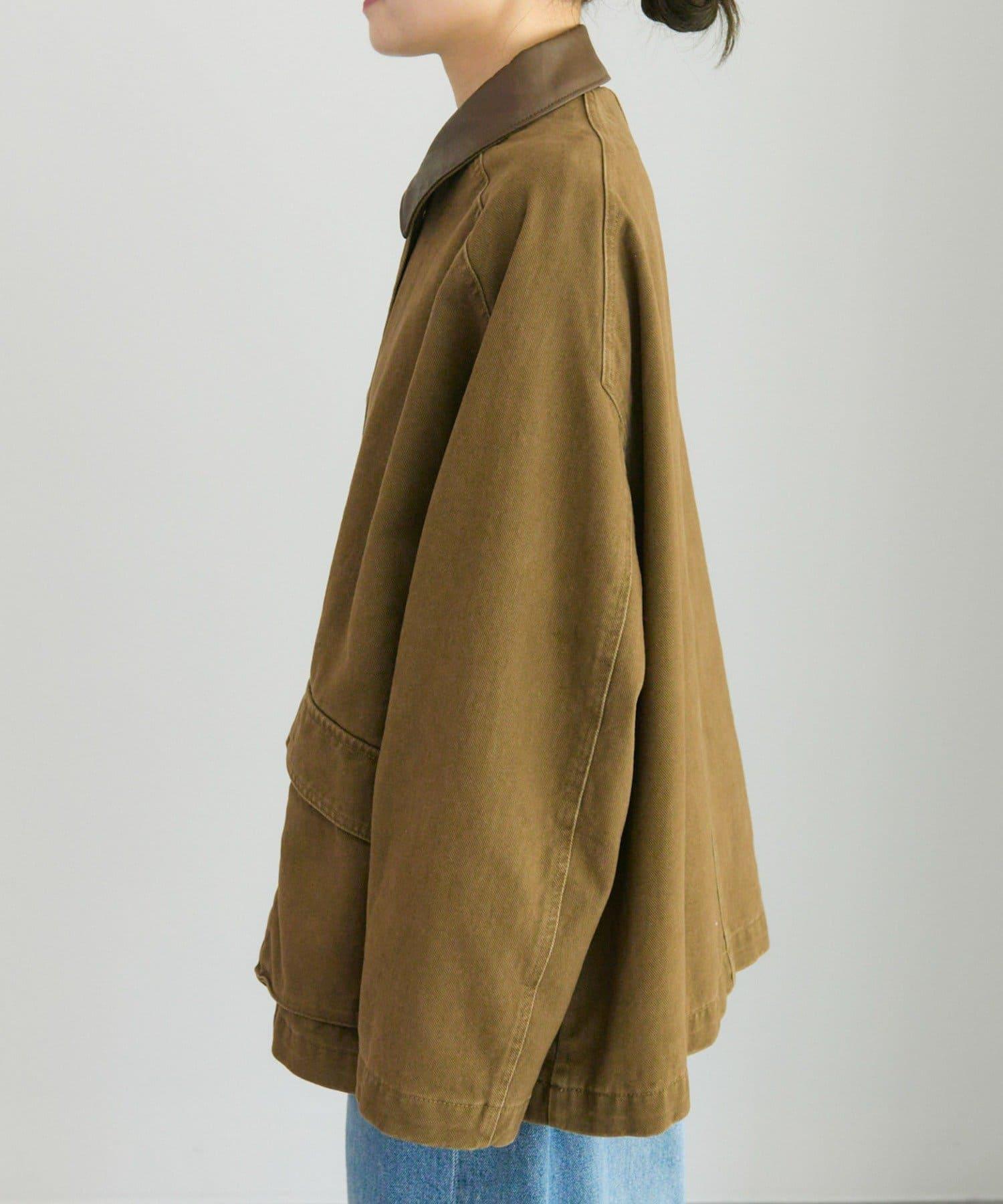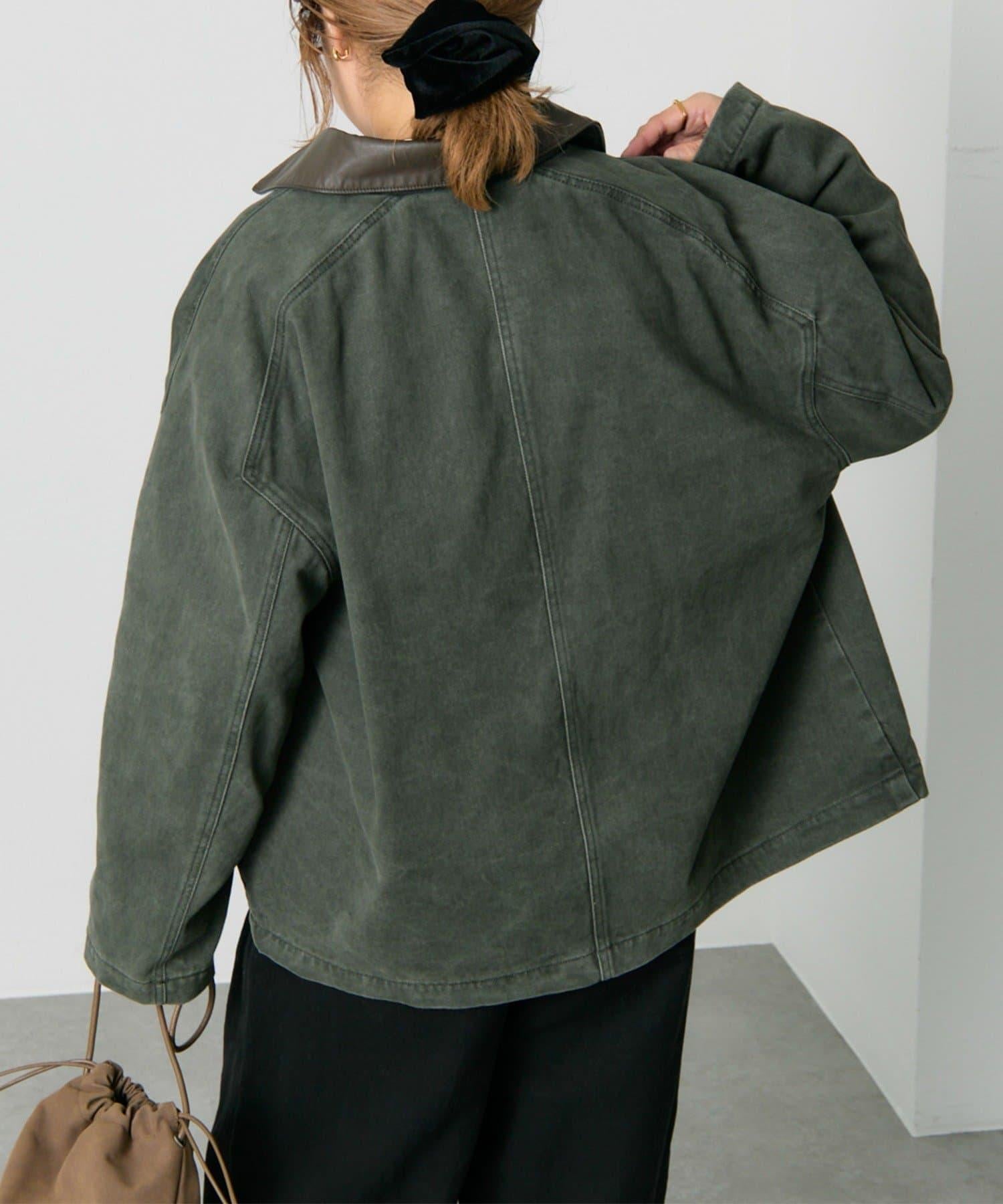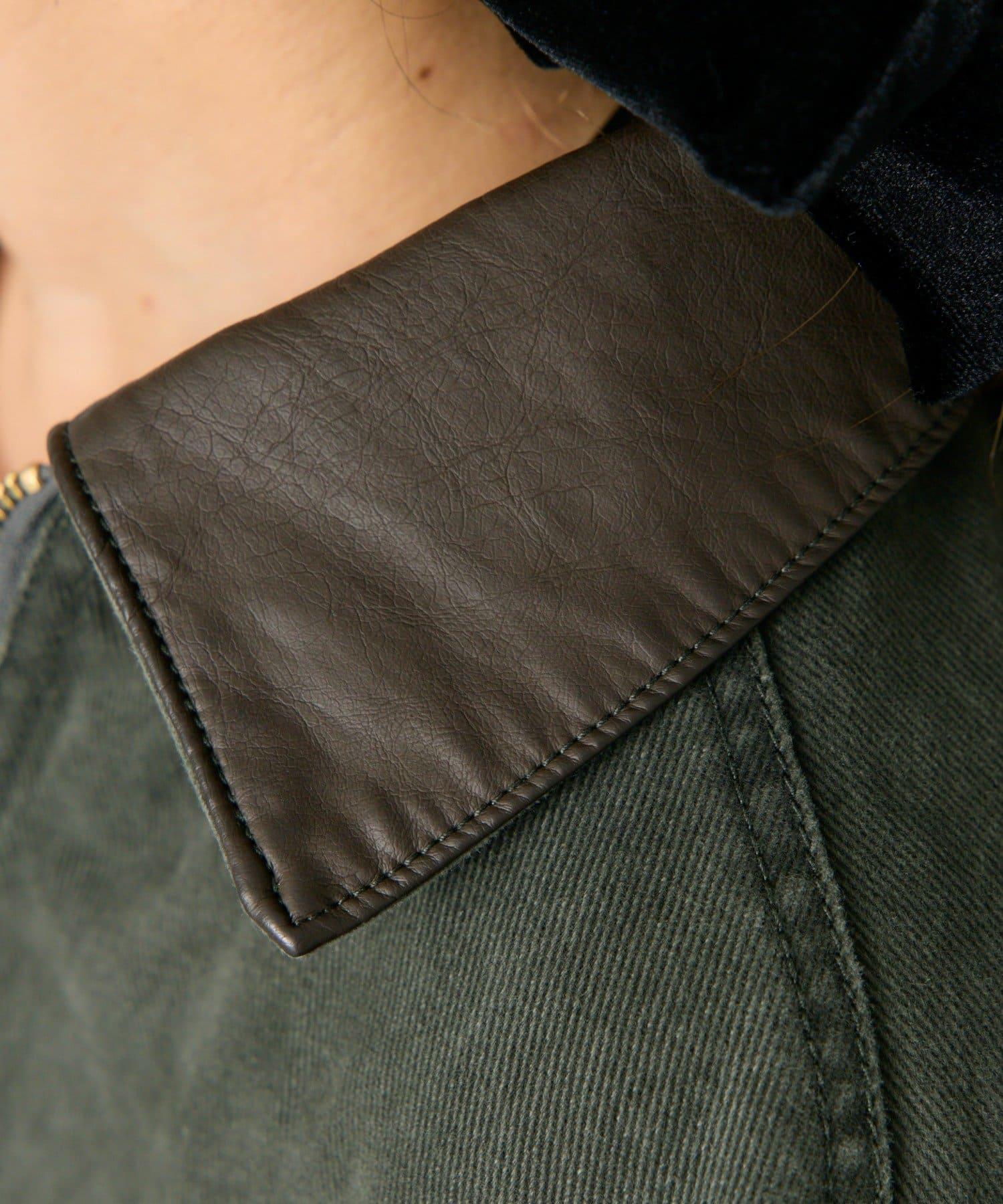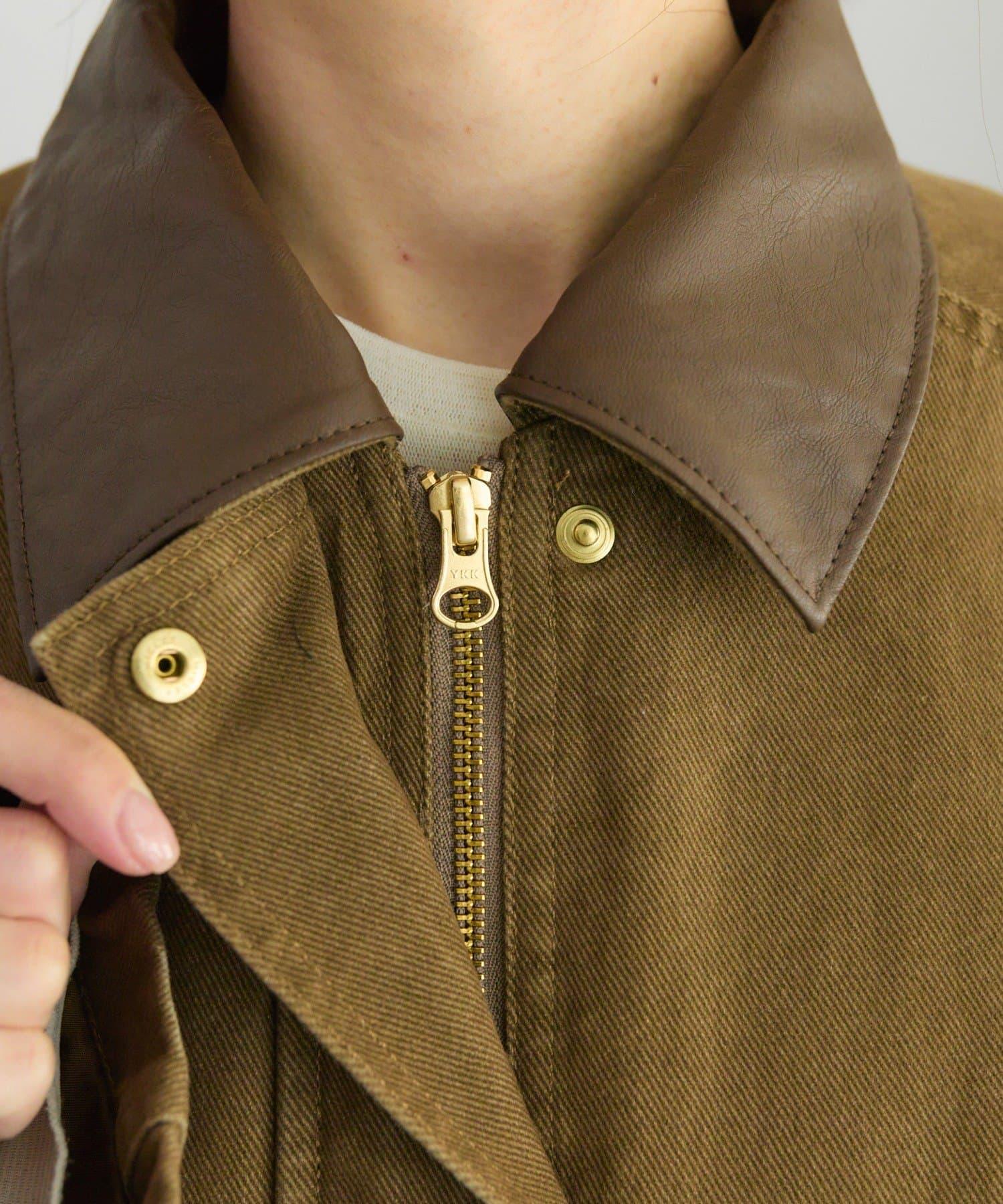 仿皮革翻領工裝夾克