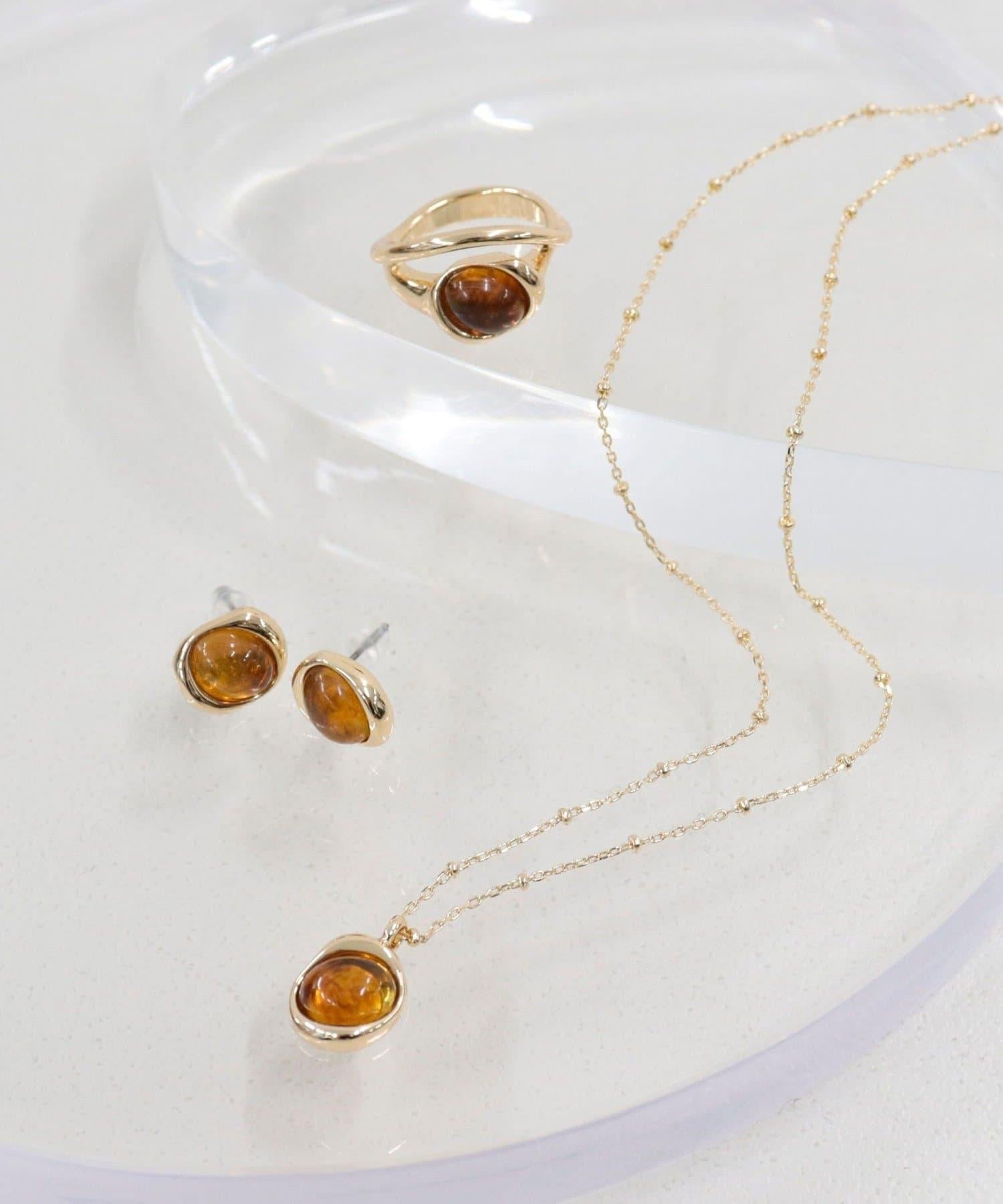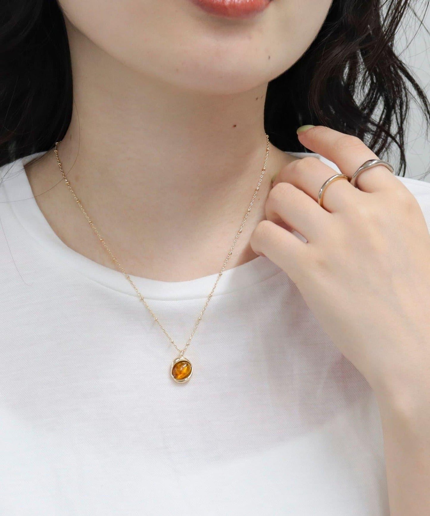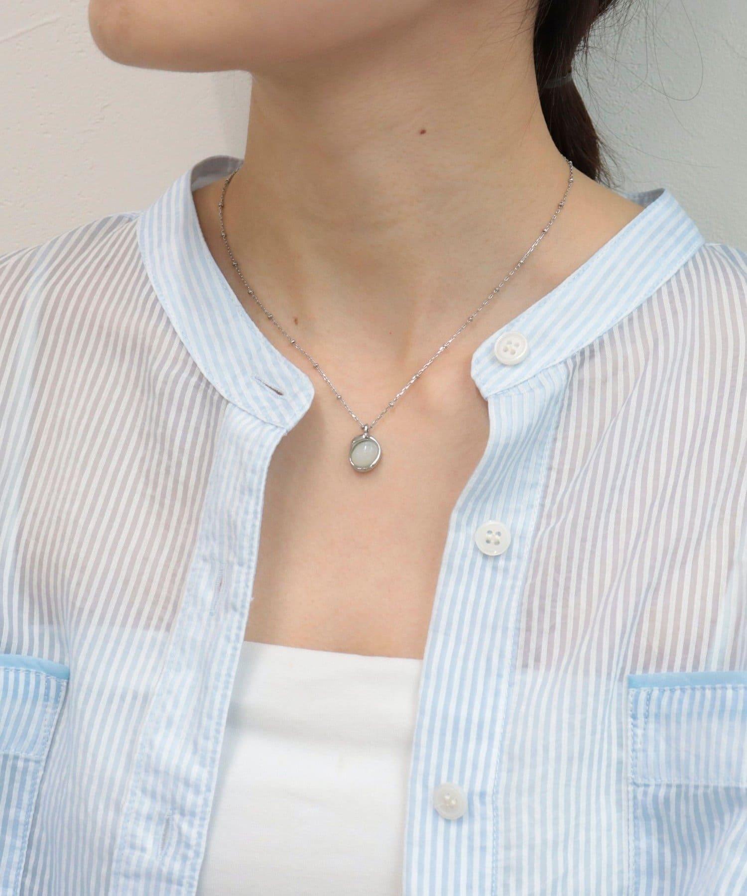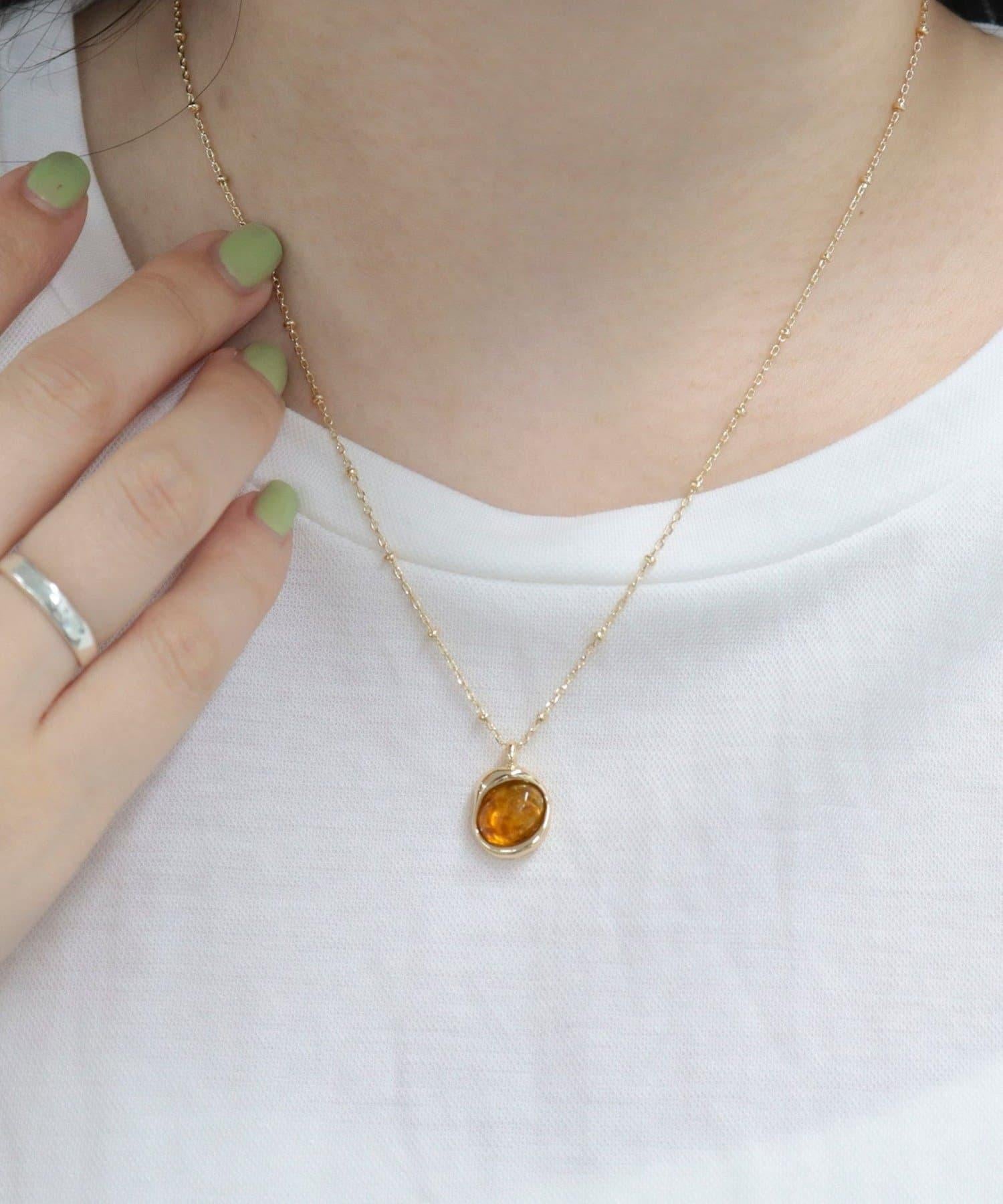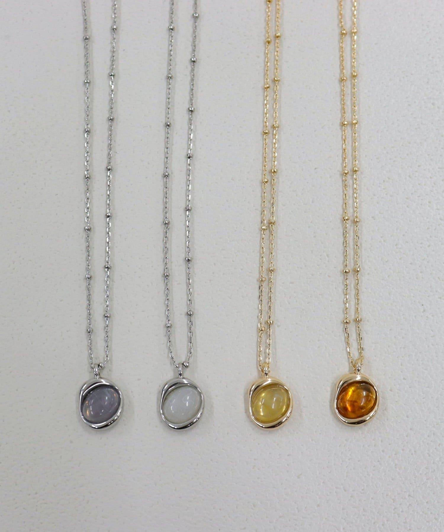 這是一條鑲嵌著可愛圓潤人造寶石的項鍊。