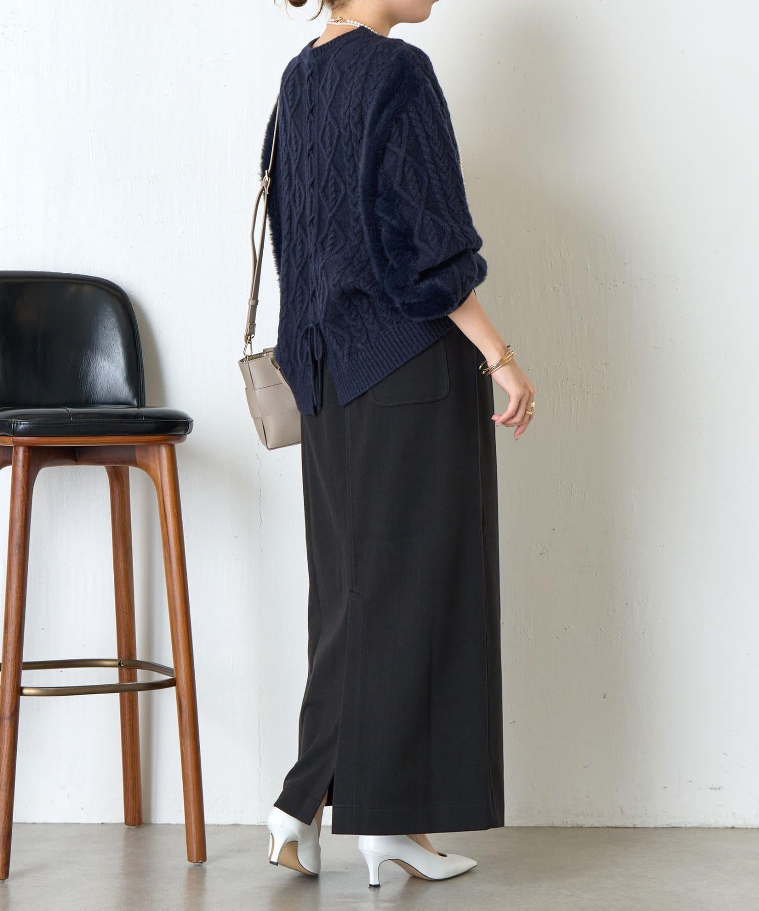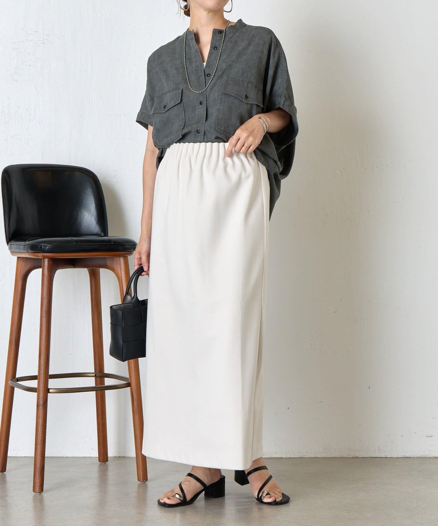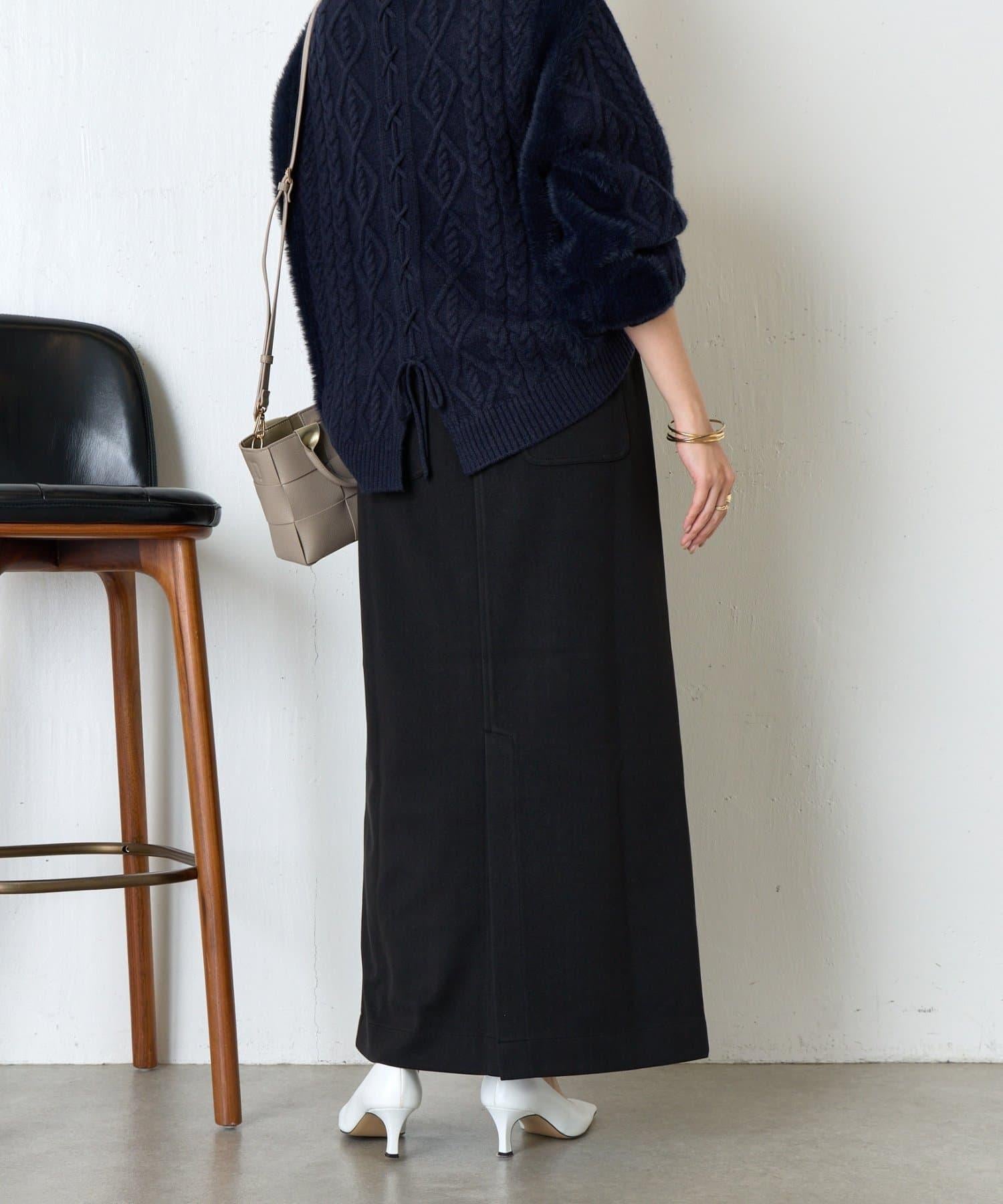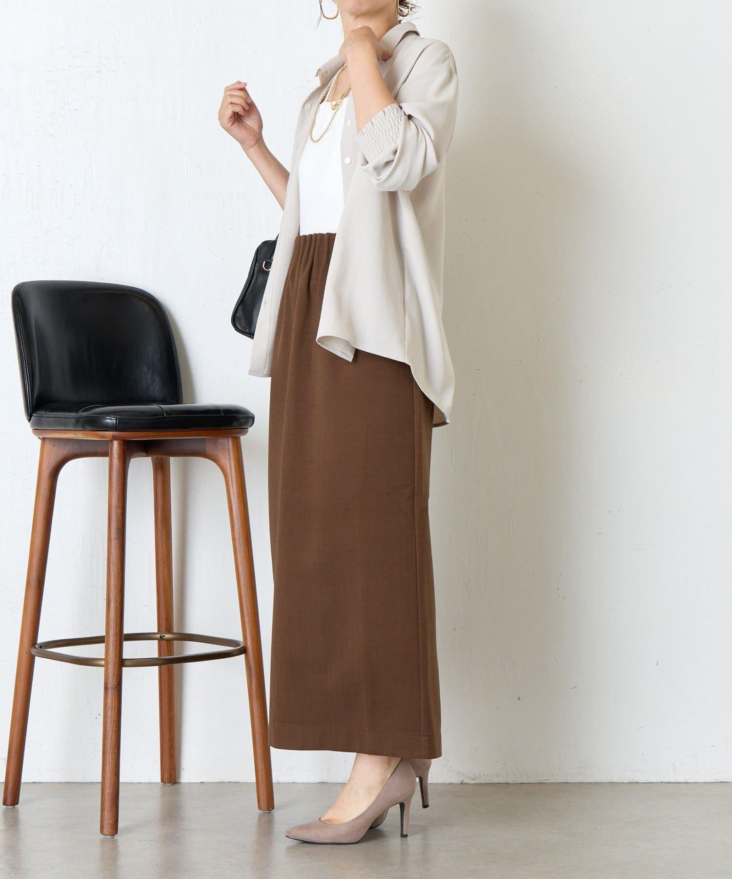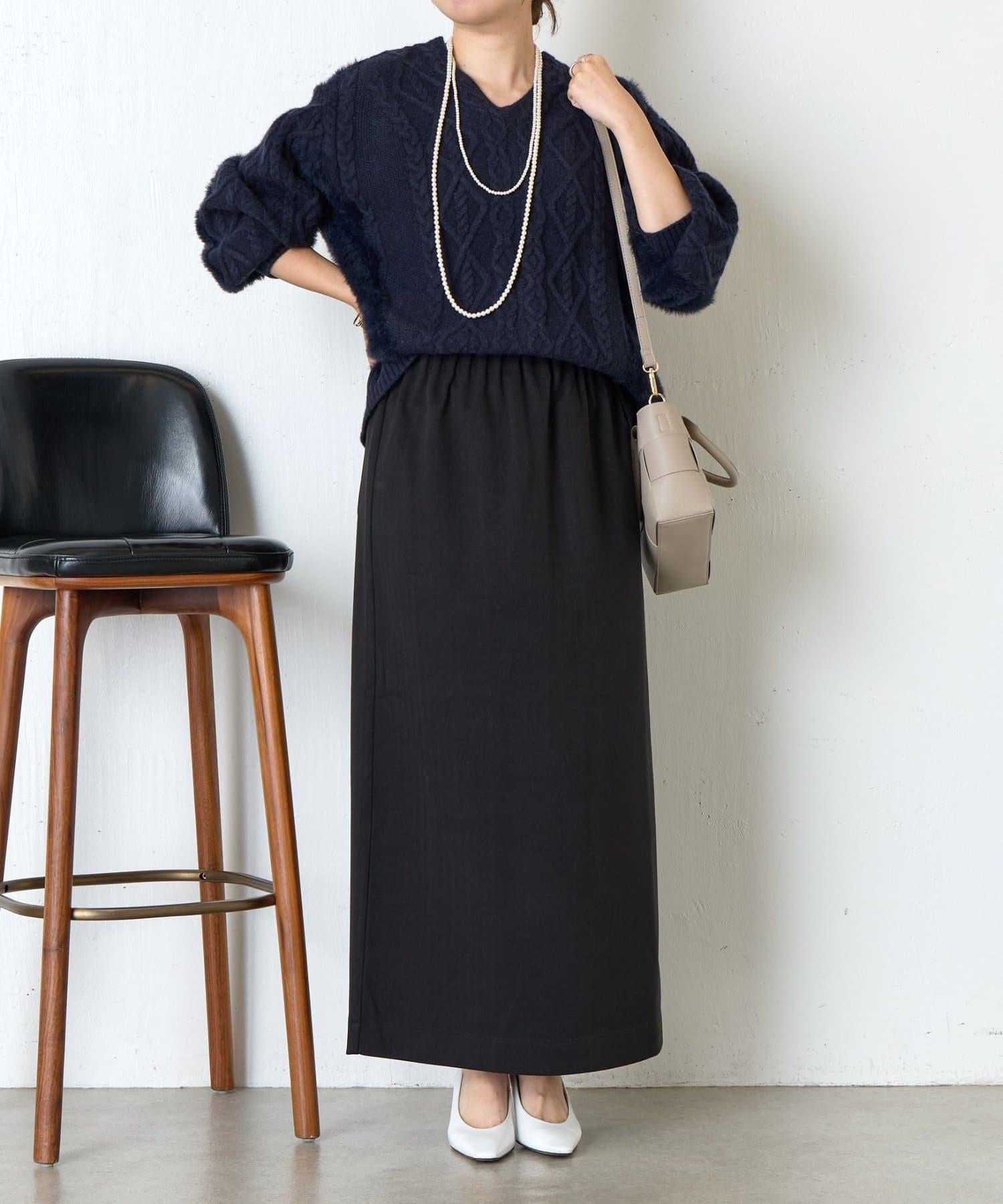 這款長裙質地柔軟,表面啞光處理,給人一種溫暖的羊毛質感。