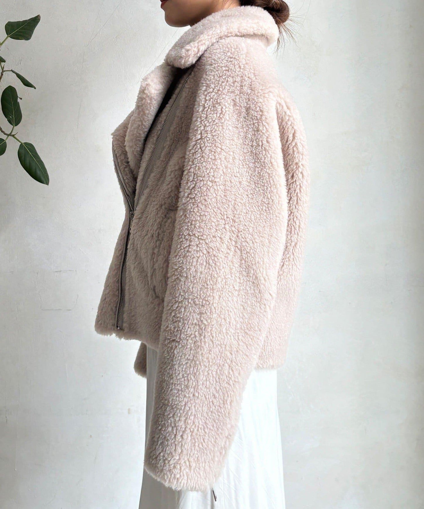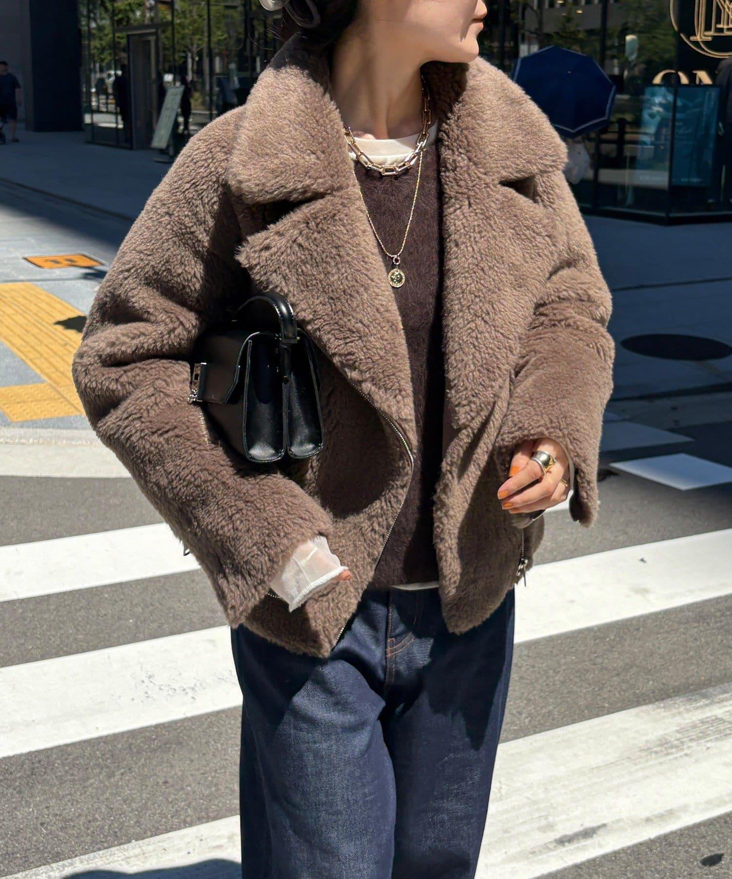 短款夾克採用柔軟的仿毛絨面料製成,兼具保暖性和奢華感。