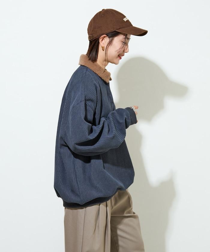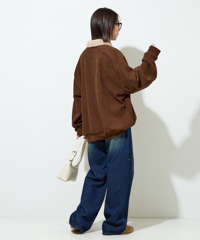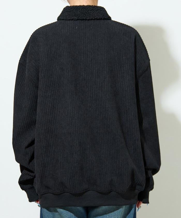 仿羊羔絨翻領燈芯絨拼接加絨衛衣