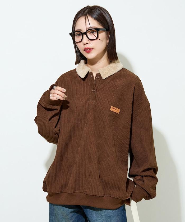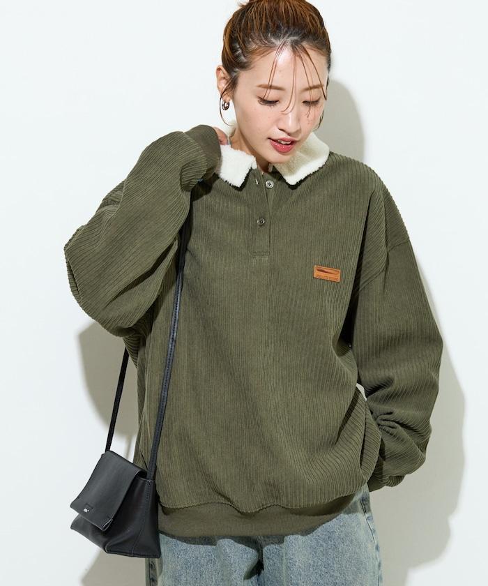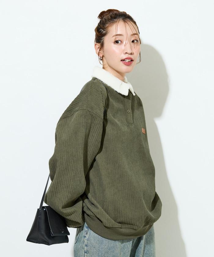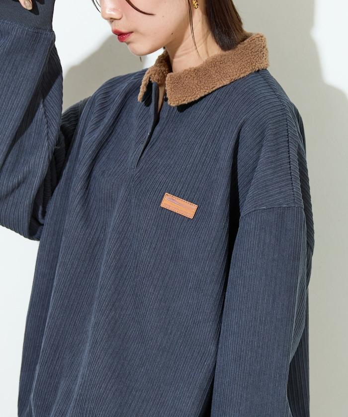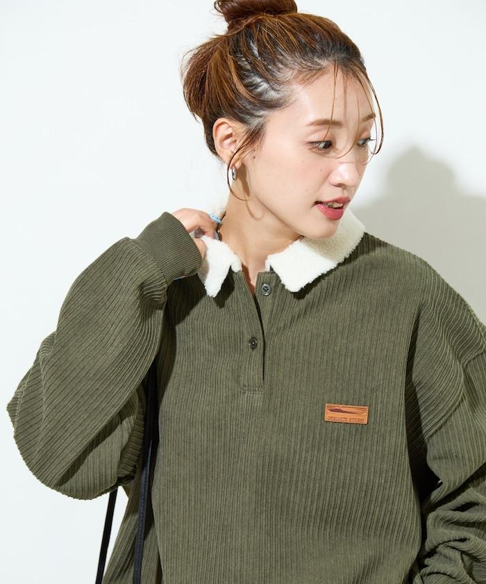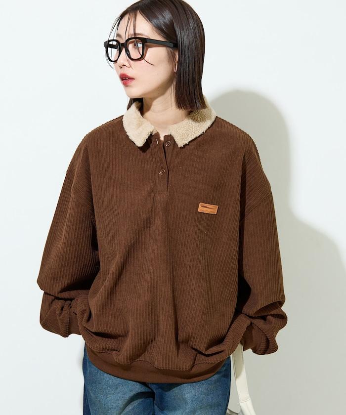 馬球衫配有蓬鬆的蟒蛇領和溫暖的燈芯絨衣身。
