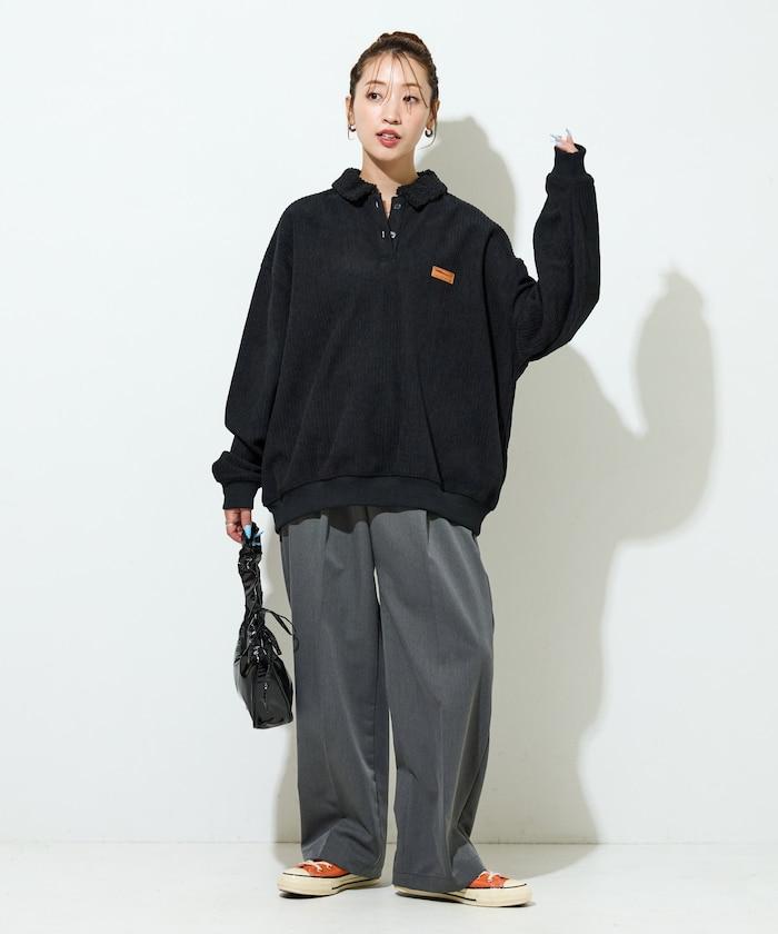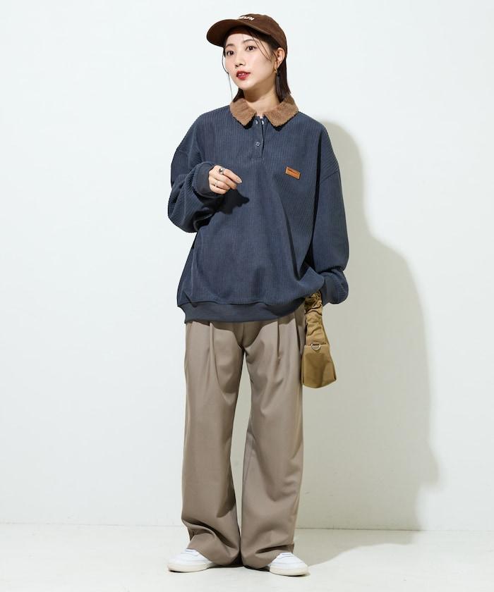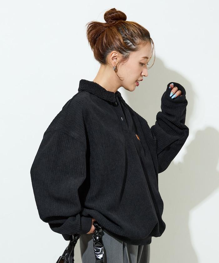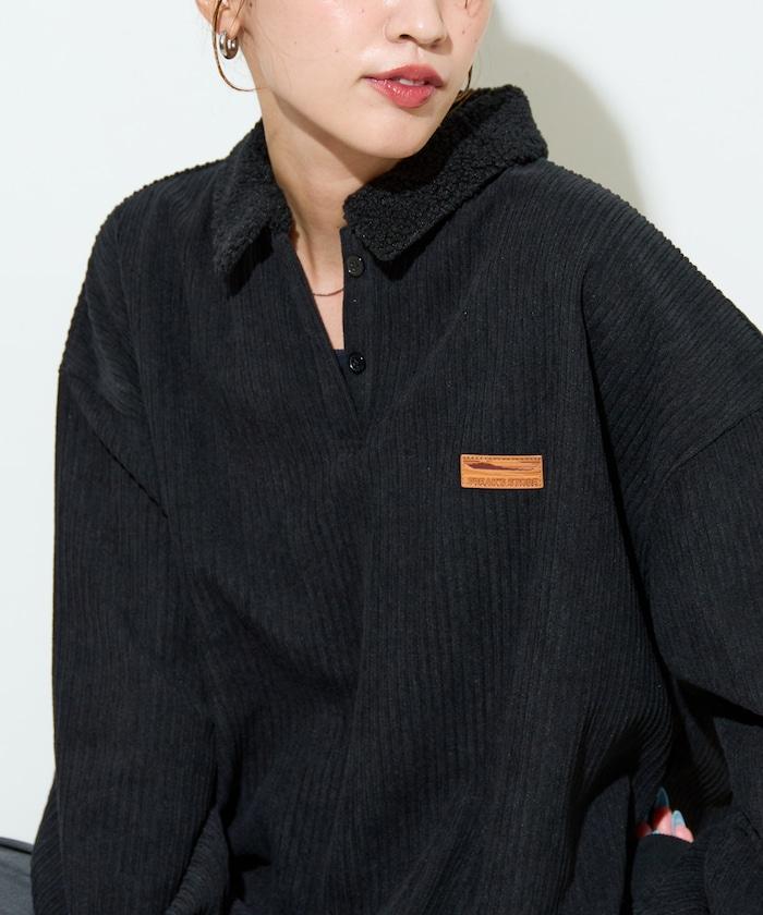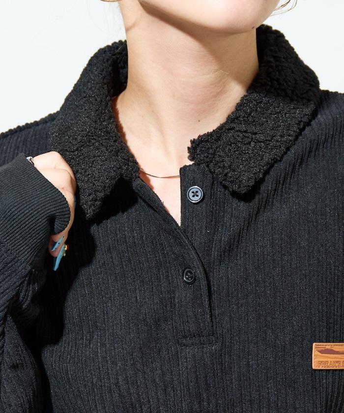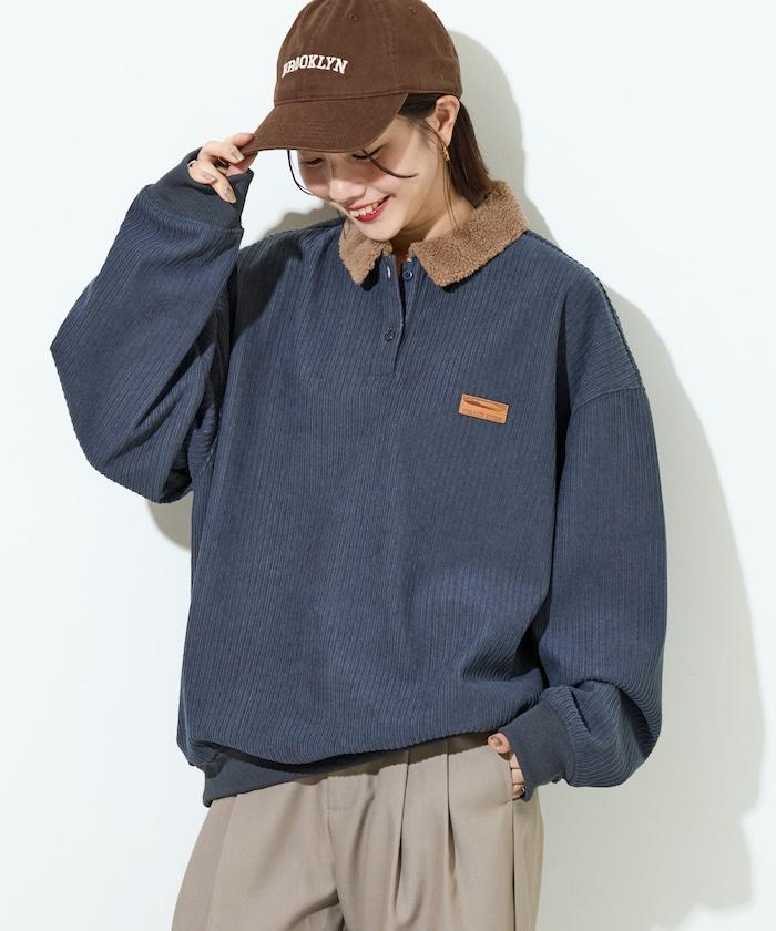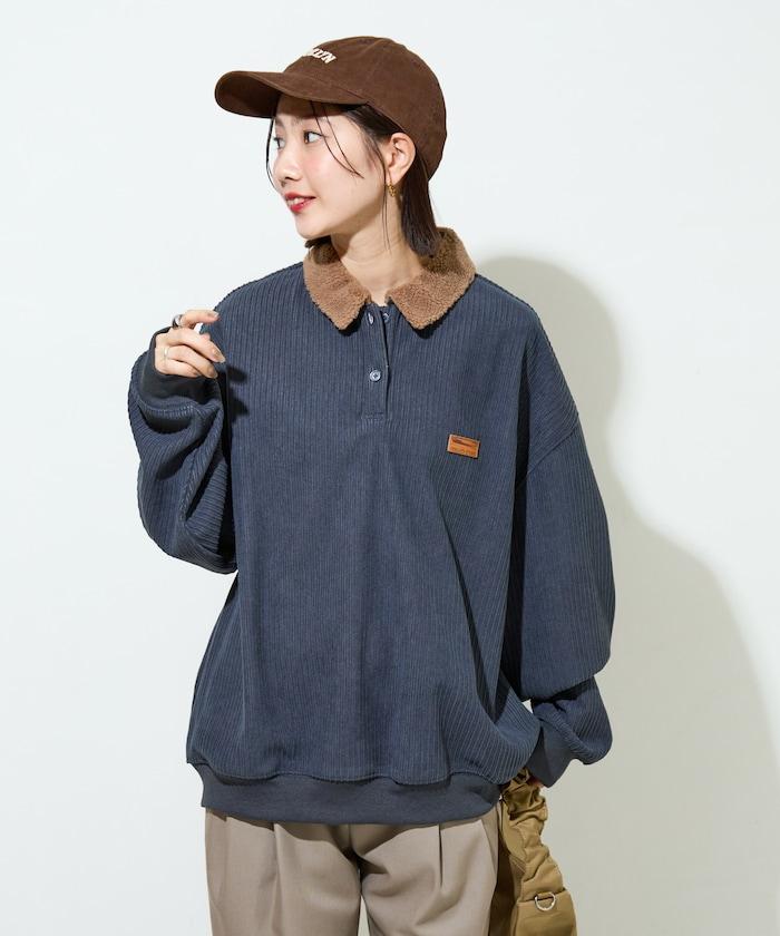 馬球衫配有蓬鬆的蟒蛇領和溫暖的燈芯絨衣身。