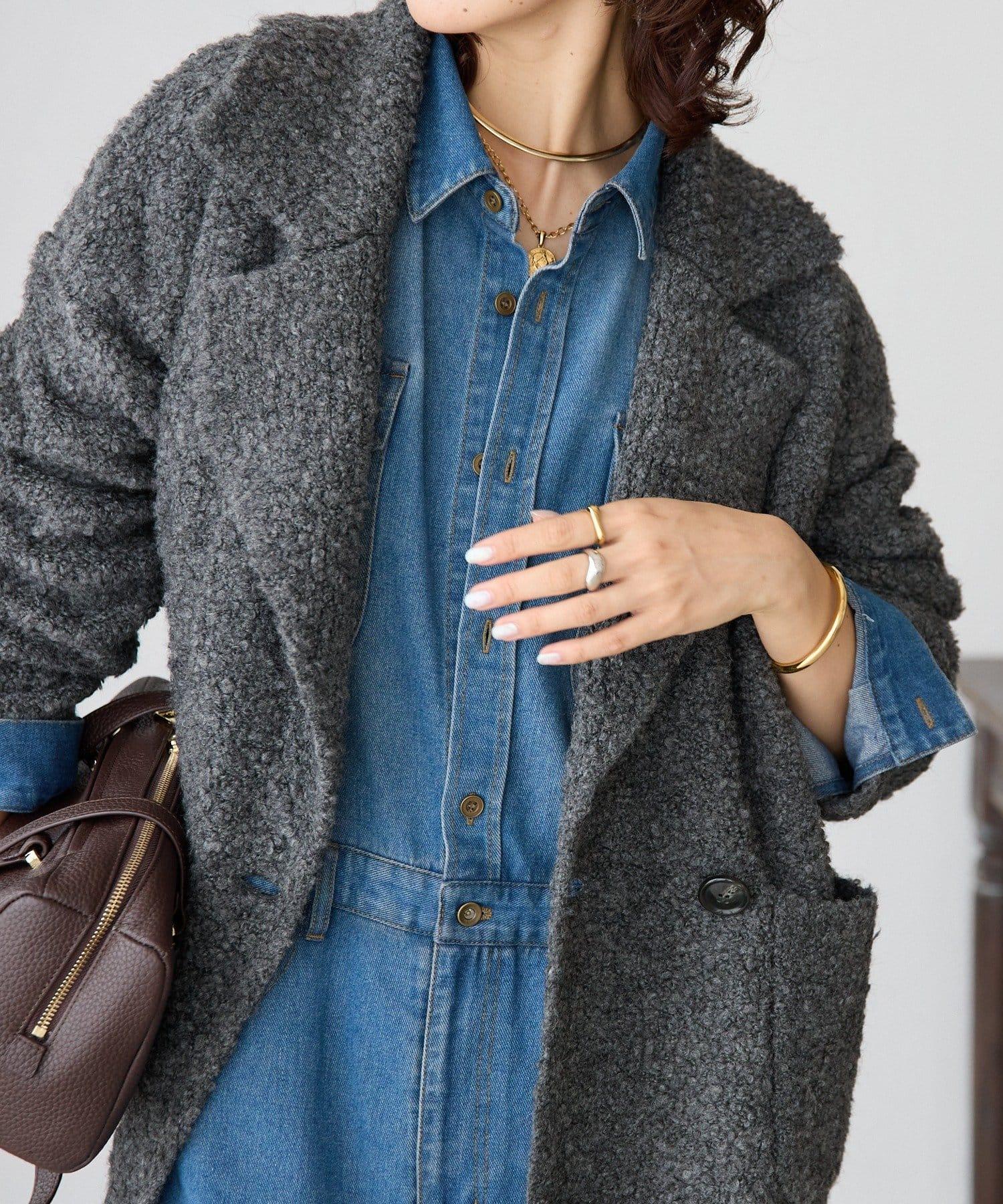 雙鈕釦開合和鈕釦的使用具有很強的存在感,使其成為一款非常百搭的單品,同時也具有外衣的存在感。