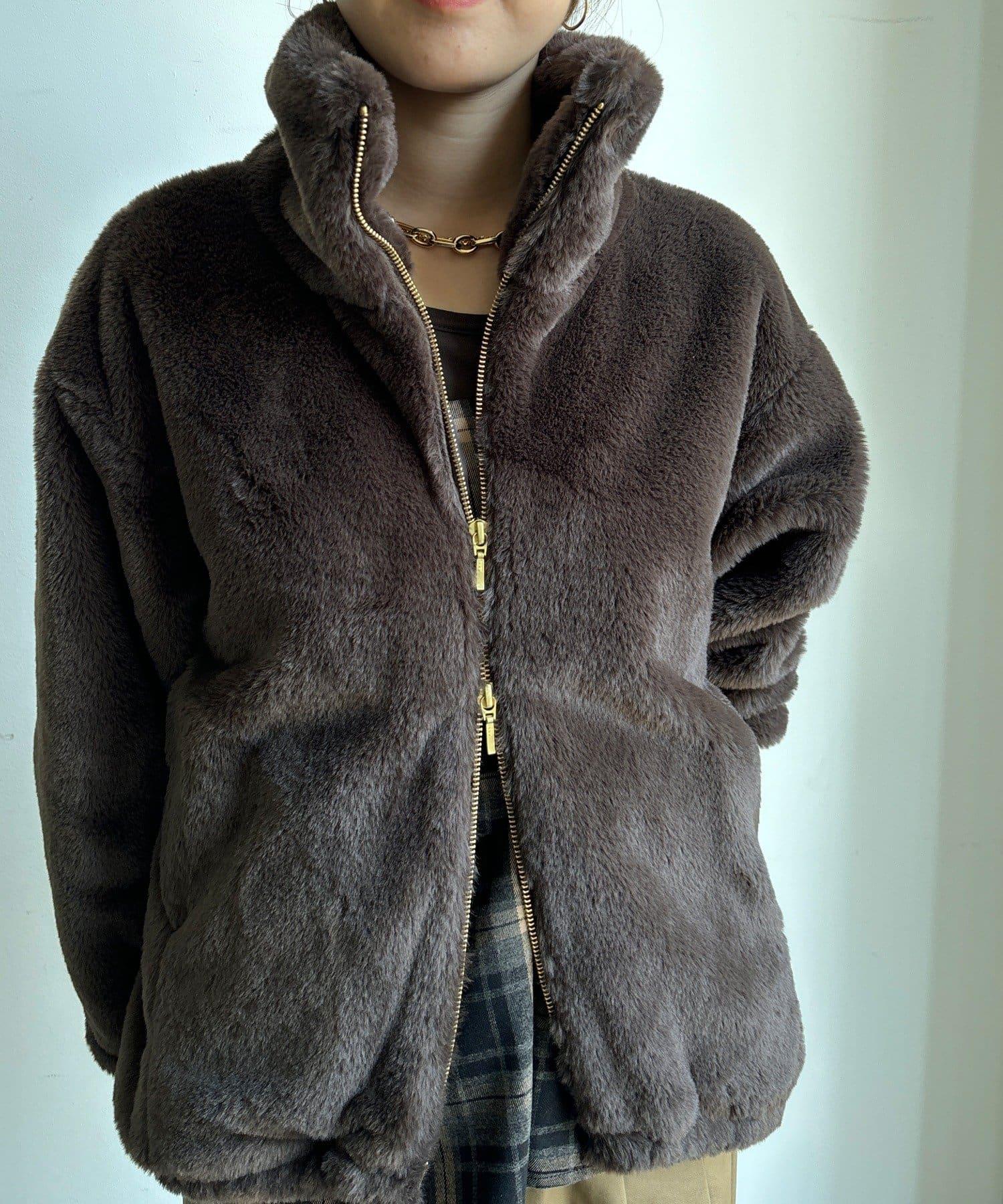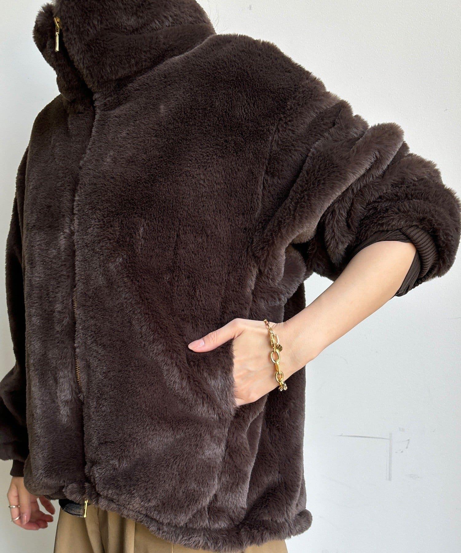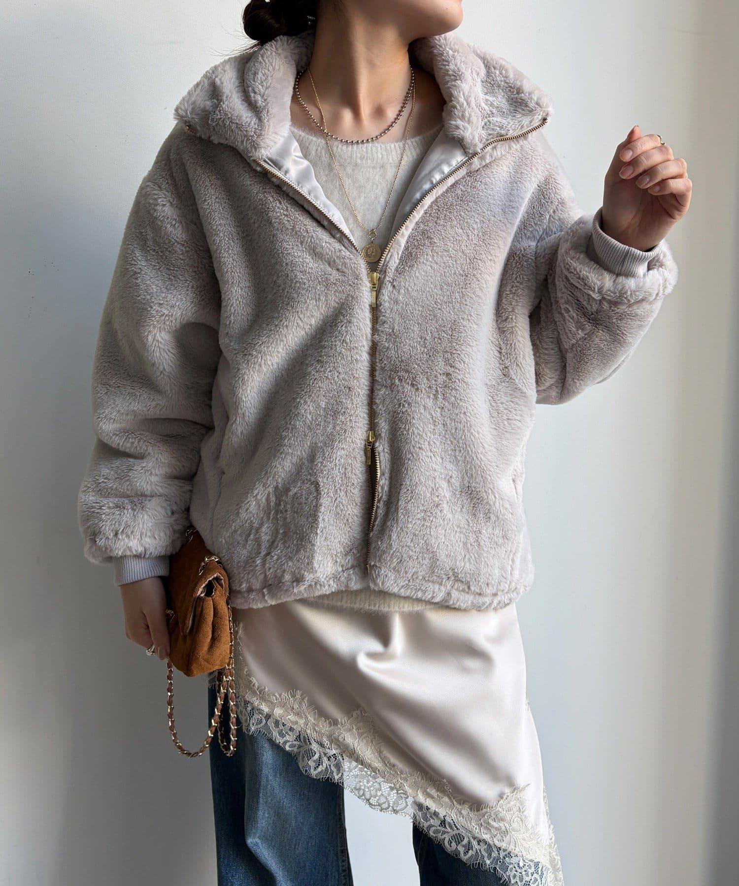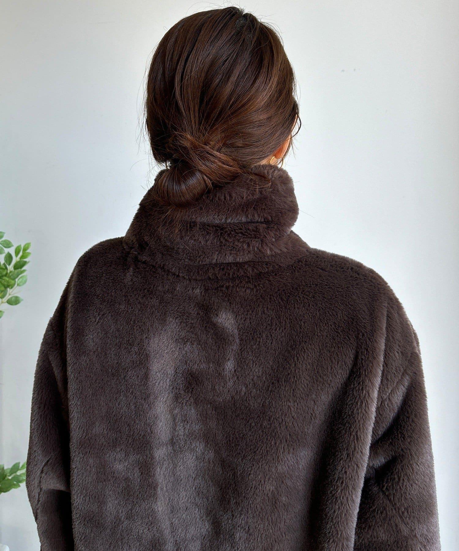 站立式皮草罩衫,蓬鬆的仿貂皮材質讓人忍不住想摸一摸!