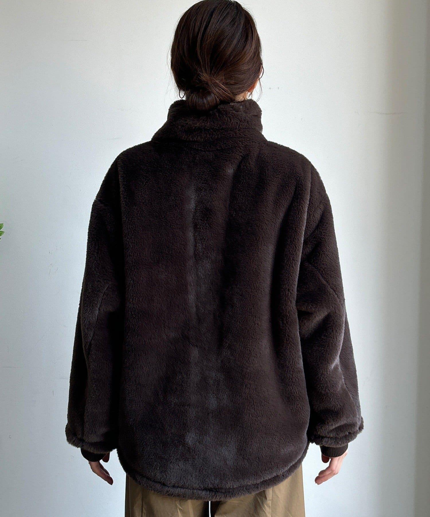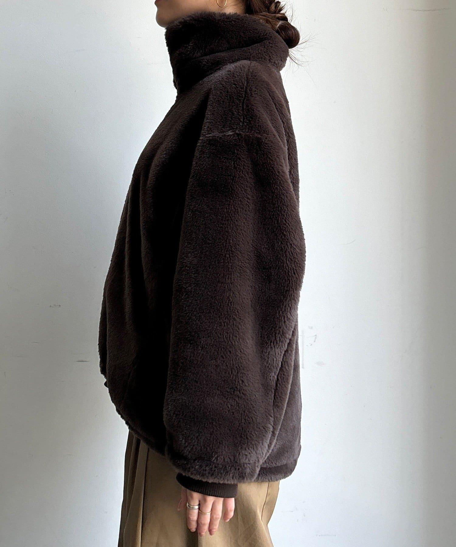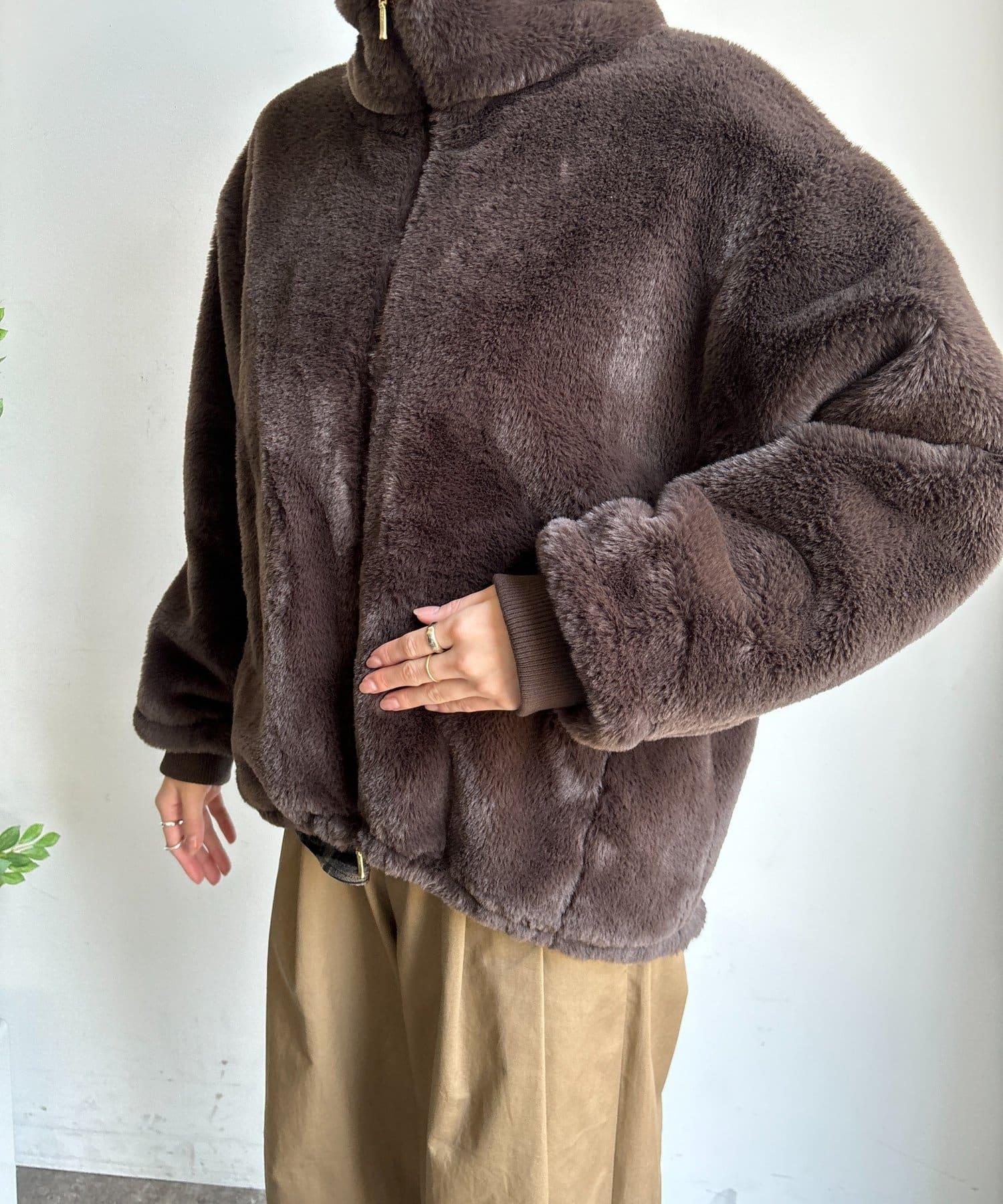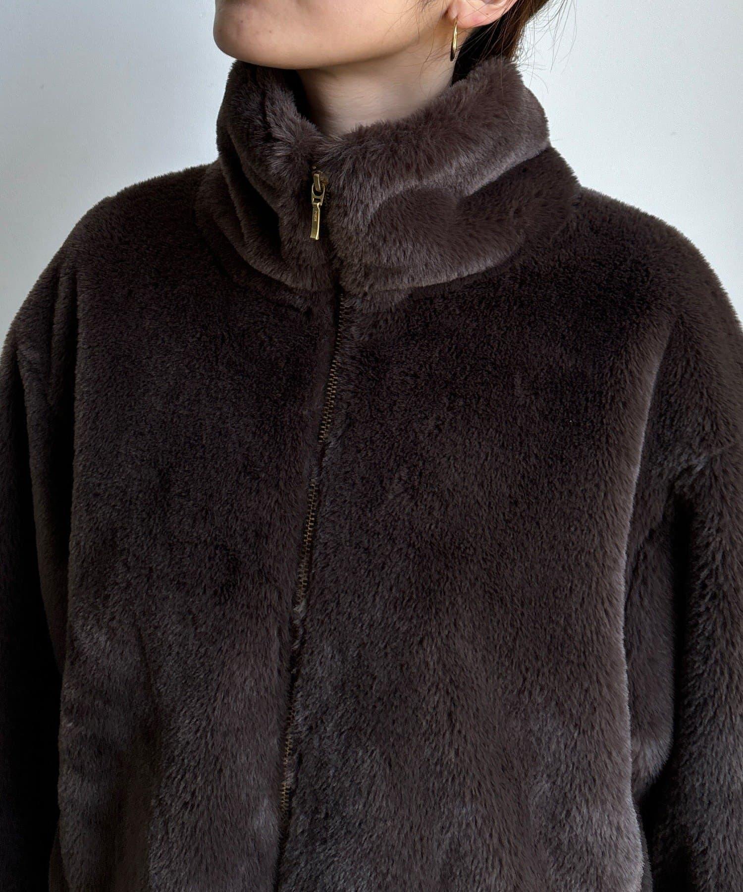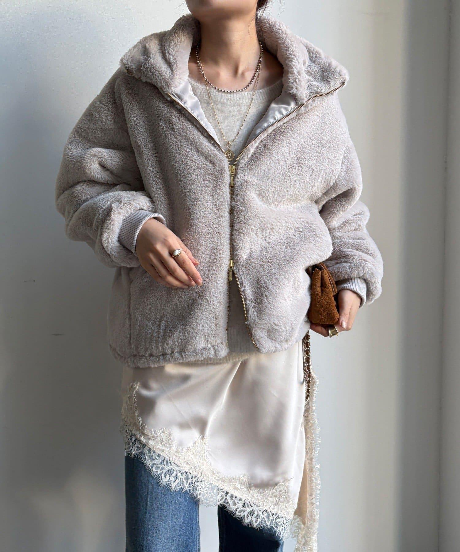 站立式皮草罩衫,蓬鬆的仿貂皮材質讓人忍不住想摸一摸!