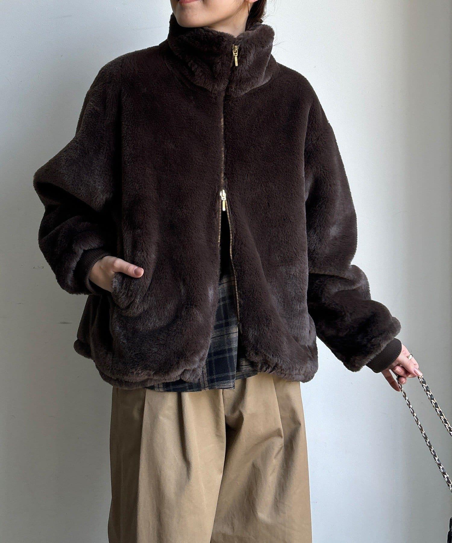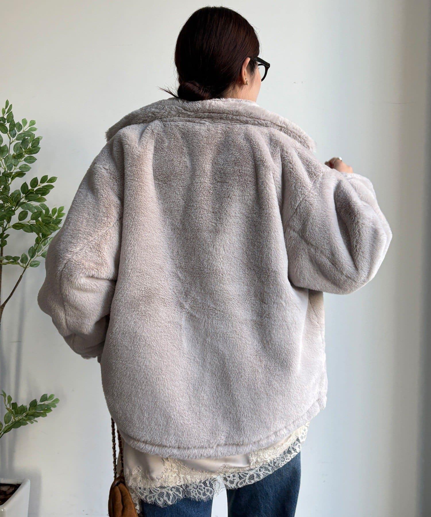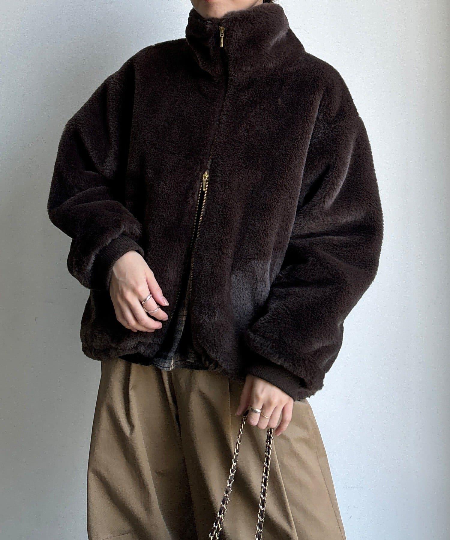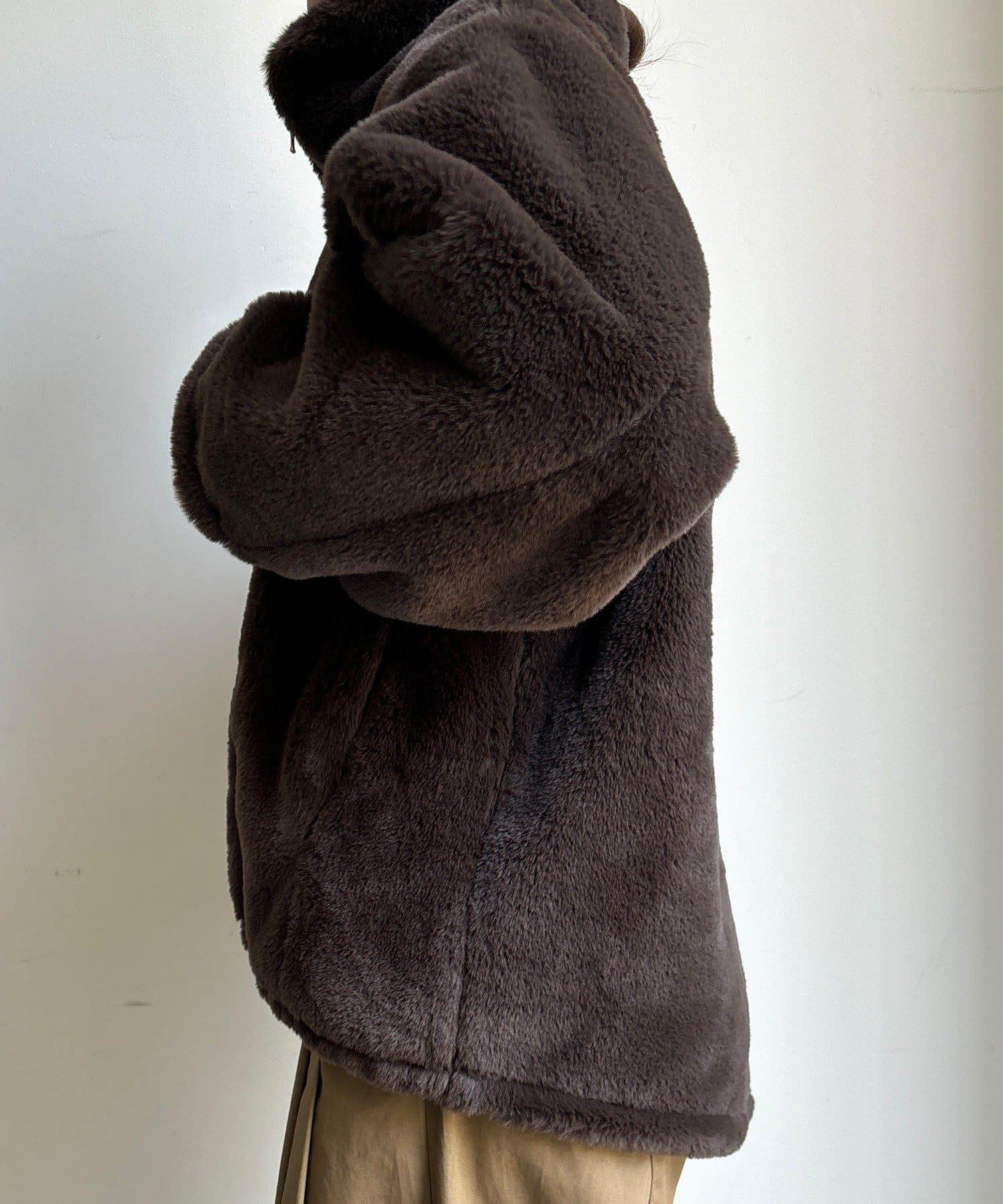 站立式皮草罩衫,蓬鬆的仿貂皮材質讓人忍不住想摸一摸!
