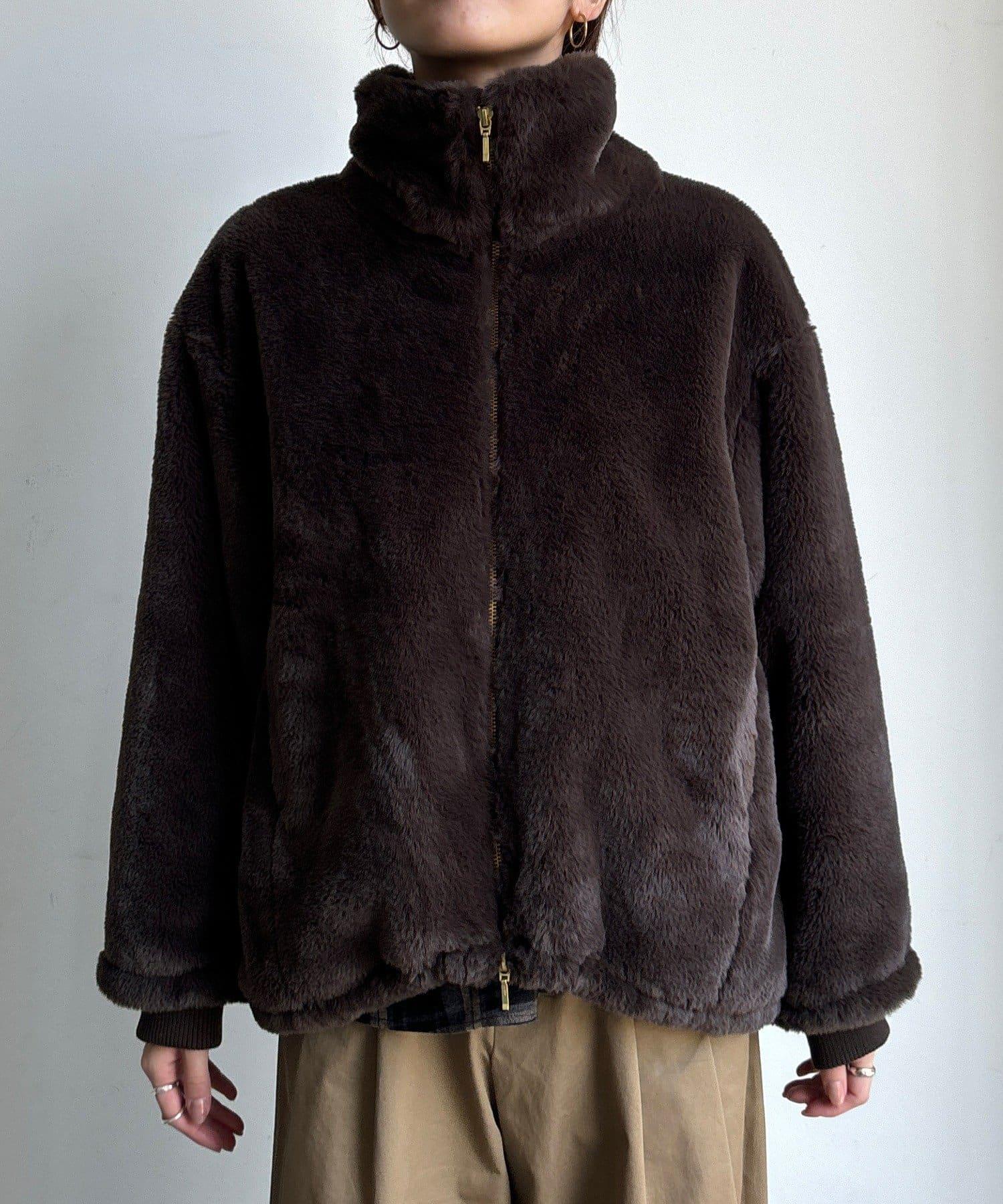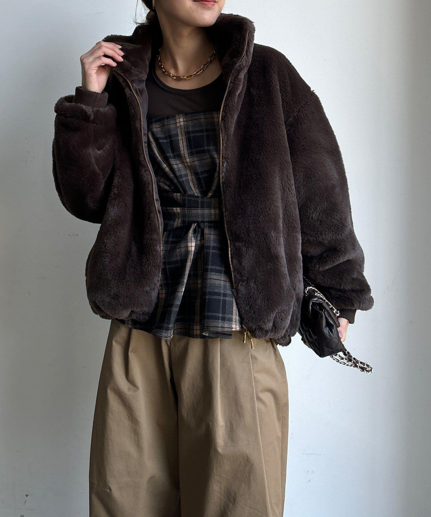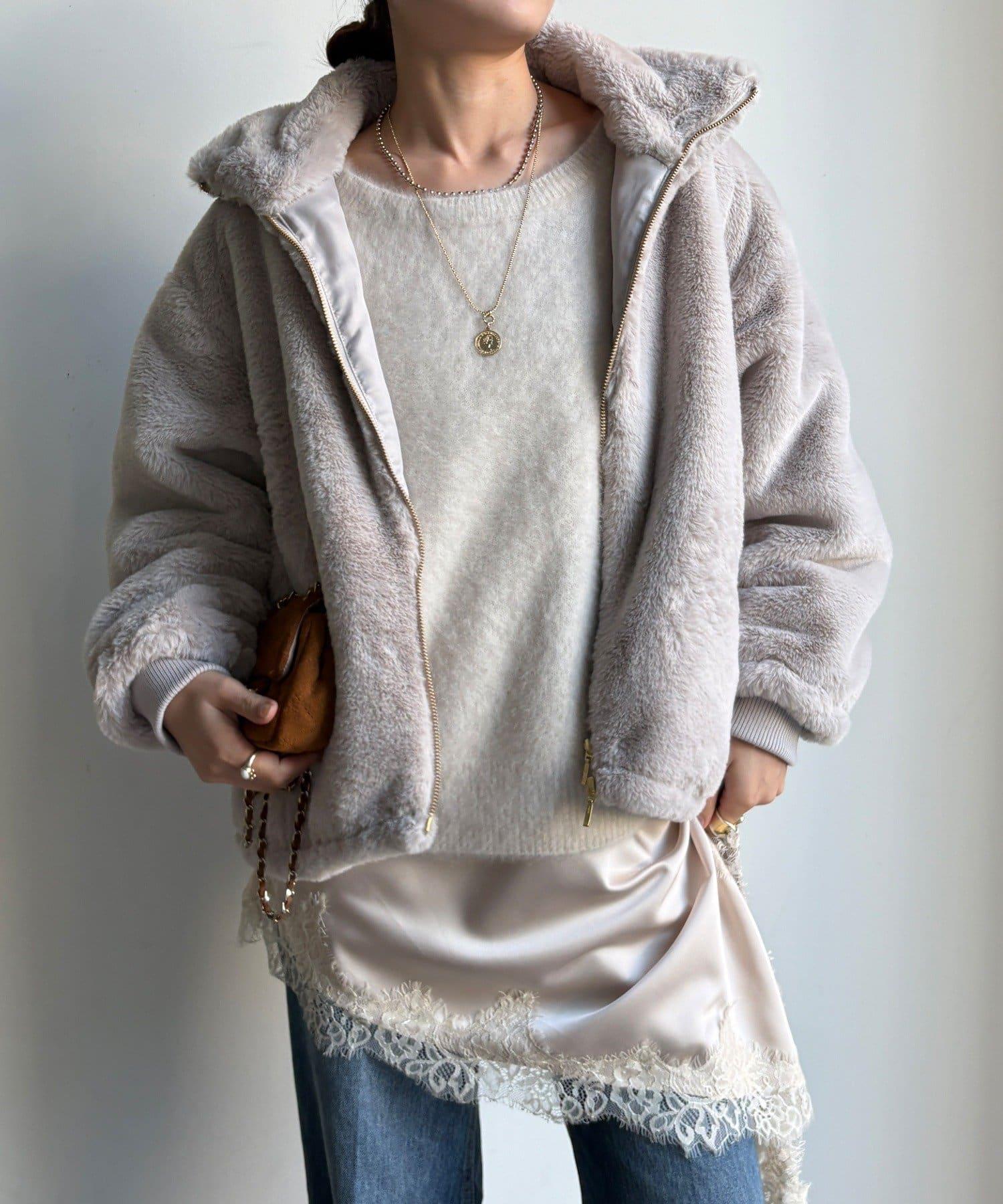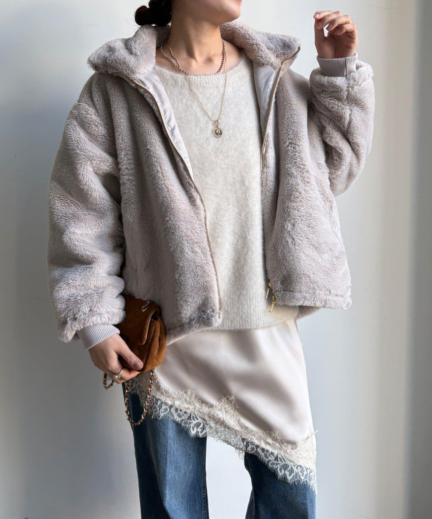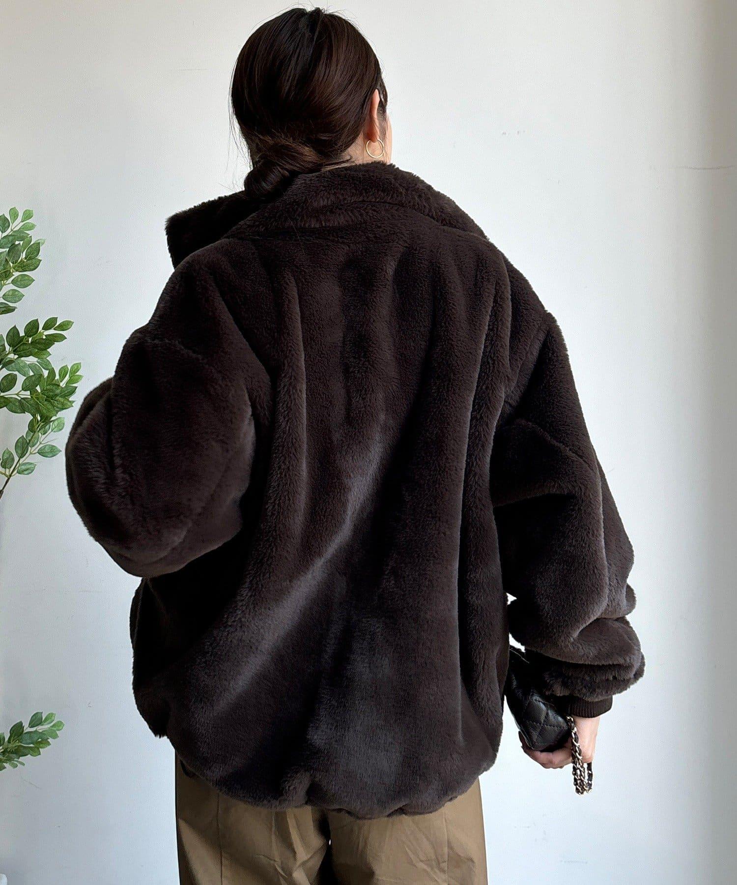 站立式皮草罩衫,蓬鬆的仿貂皮材質讓人忍不住想摸一摸!