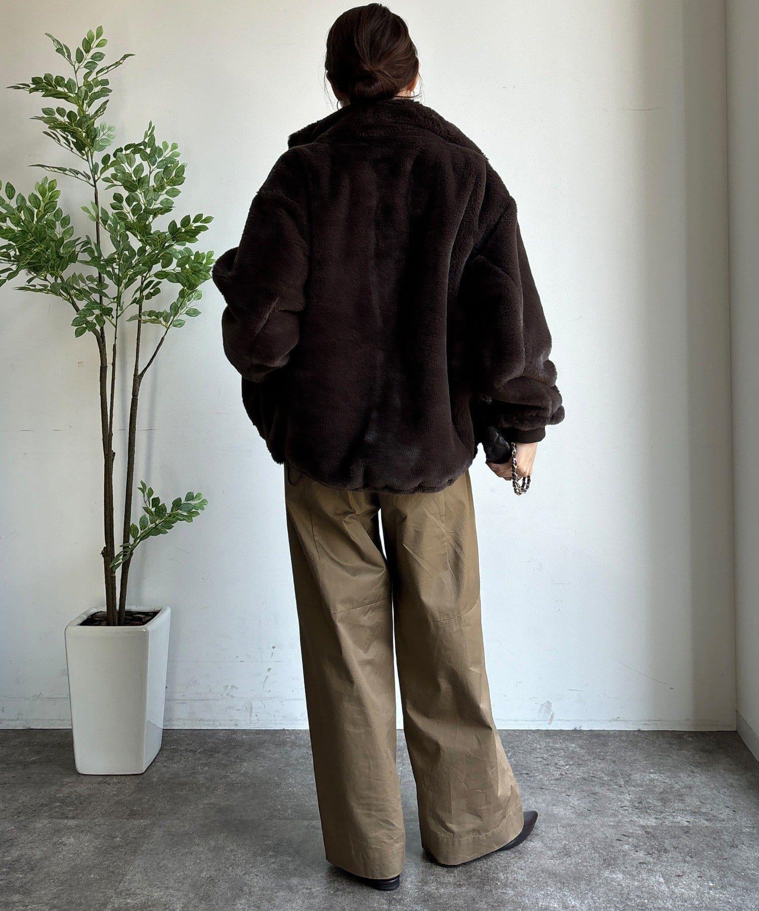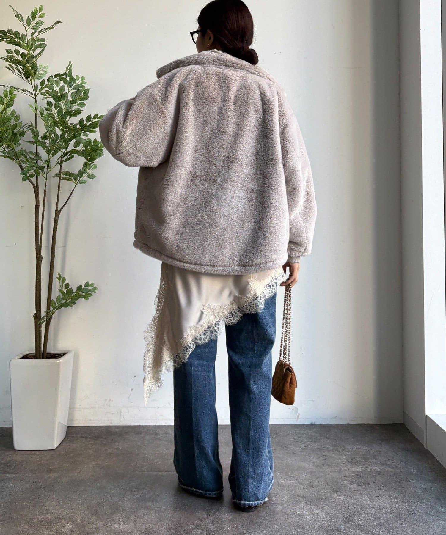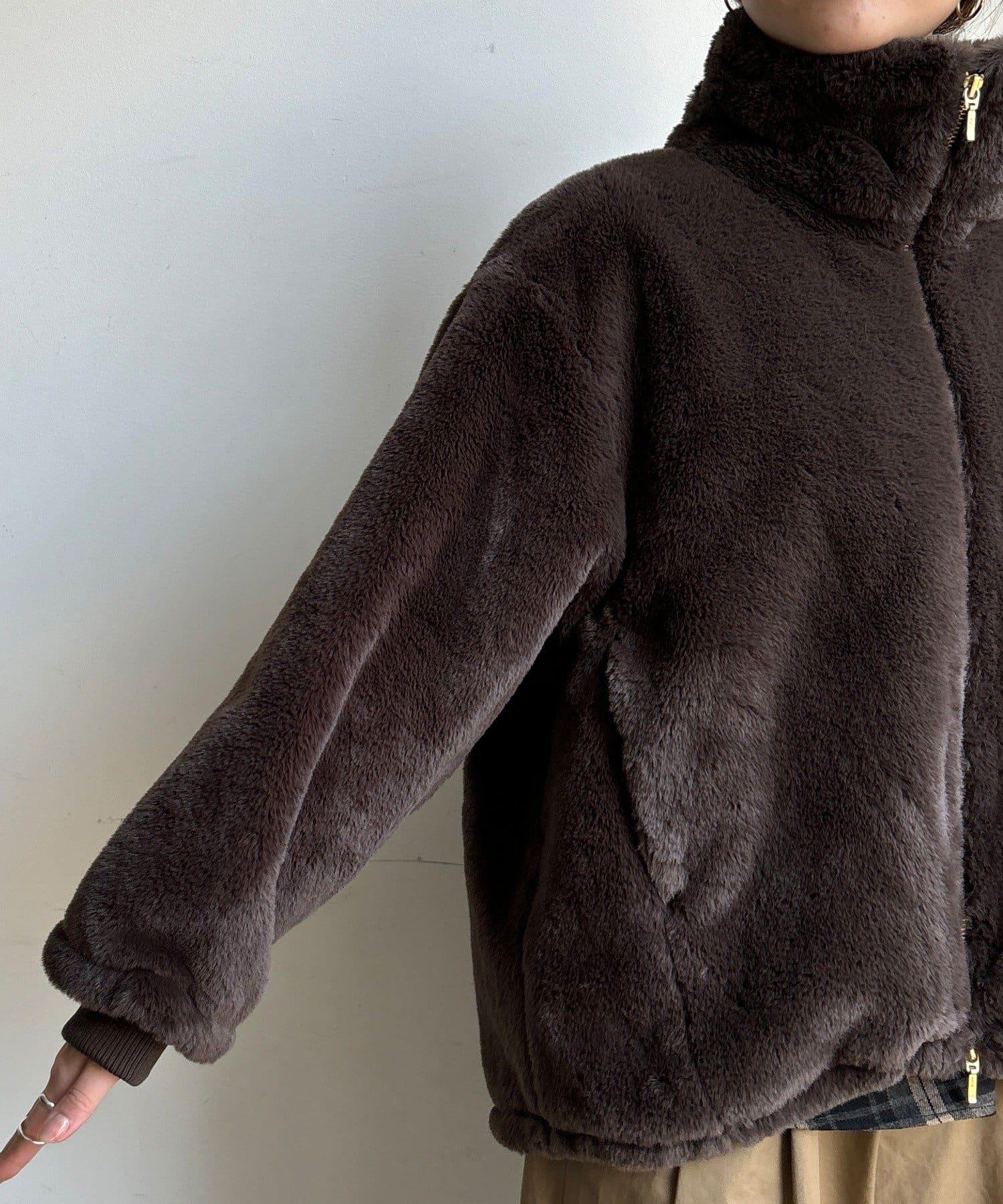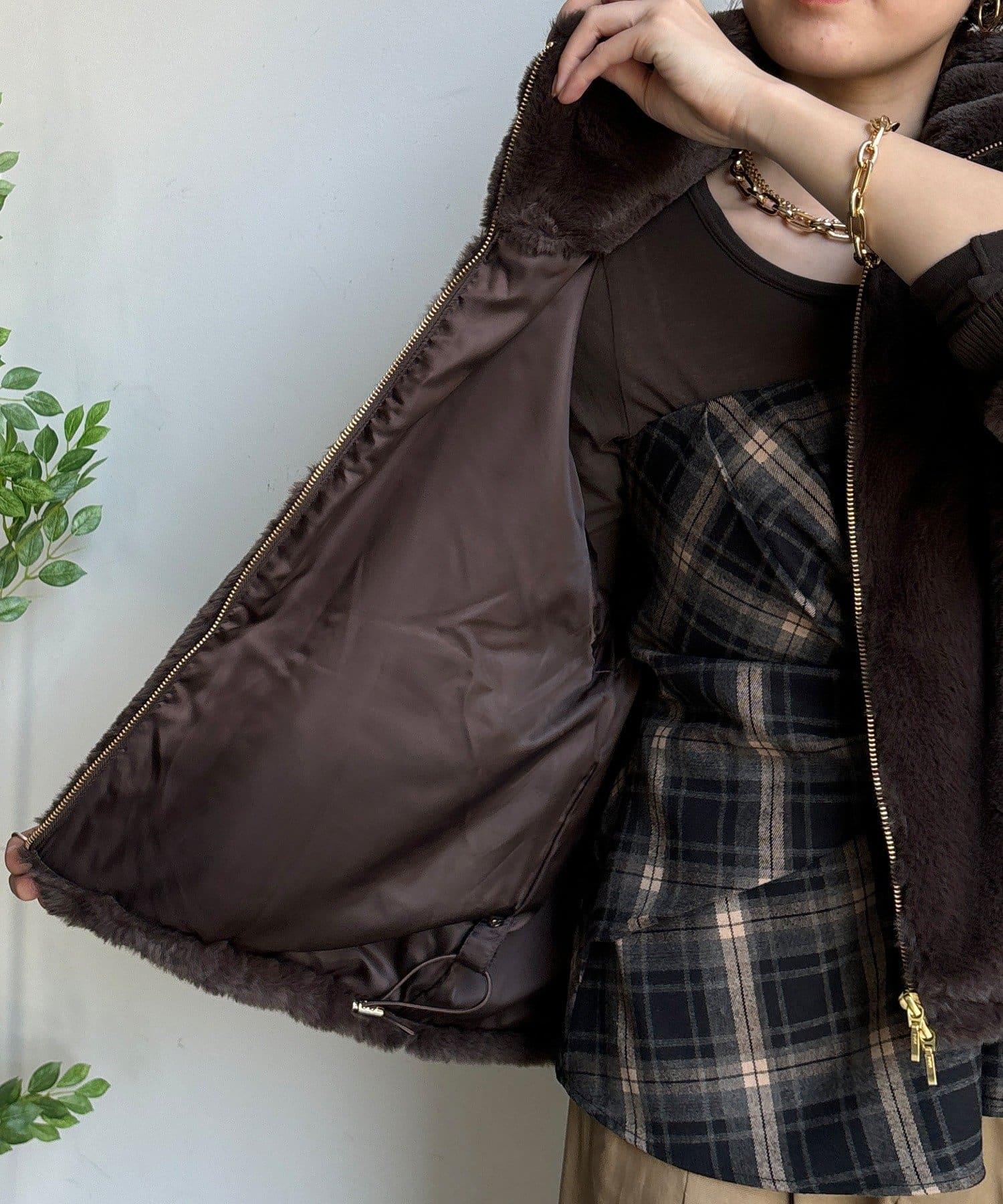 站立式皮草罩衫,蓬鬆的仿貂皮材質讓人忍不住想摸一摸!