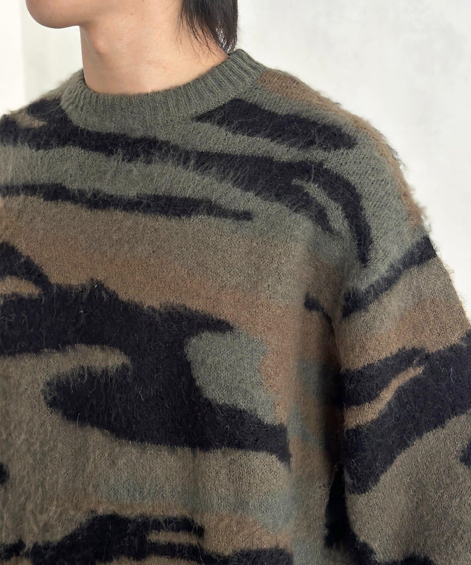 預約商品仿馬海毛全印花針織套頭衫