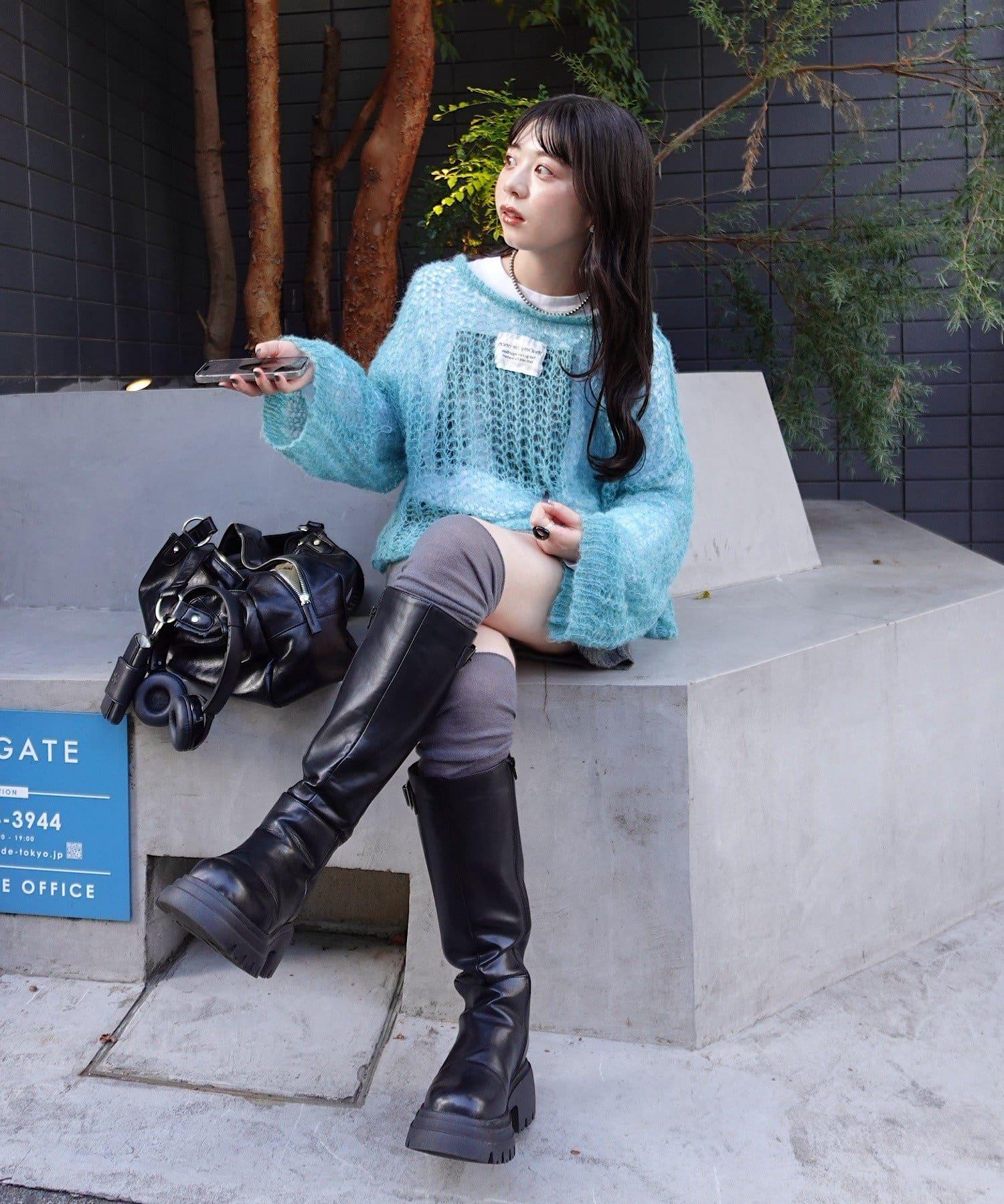 搭配迷你打底褲和長筒靴,打造時髦的少女風格。