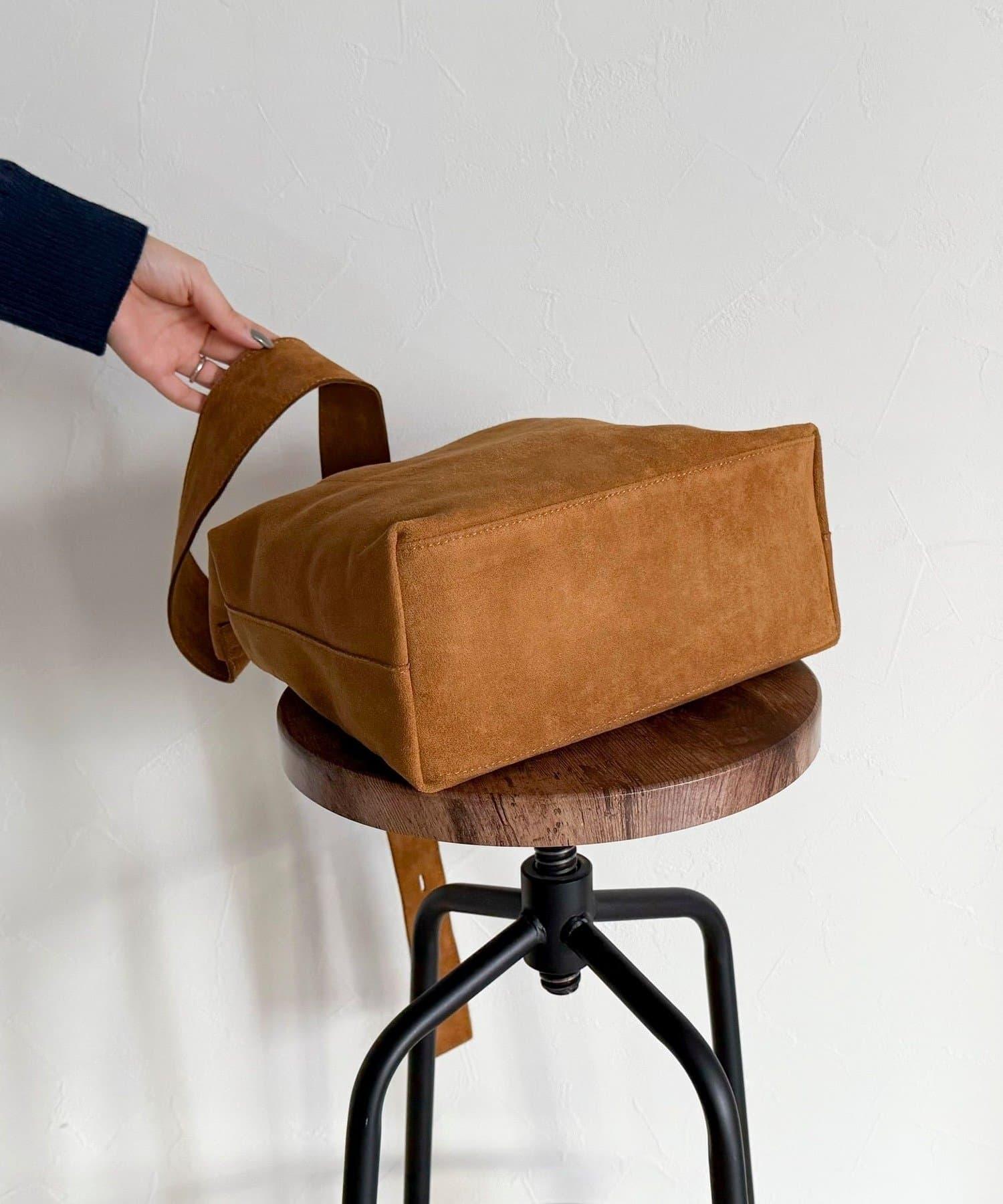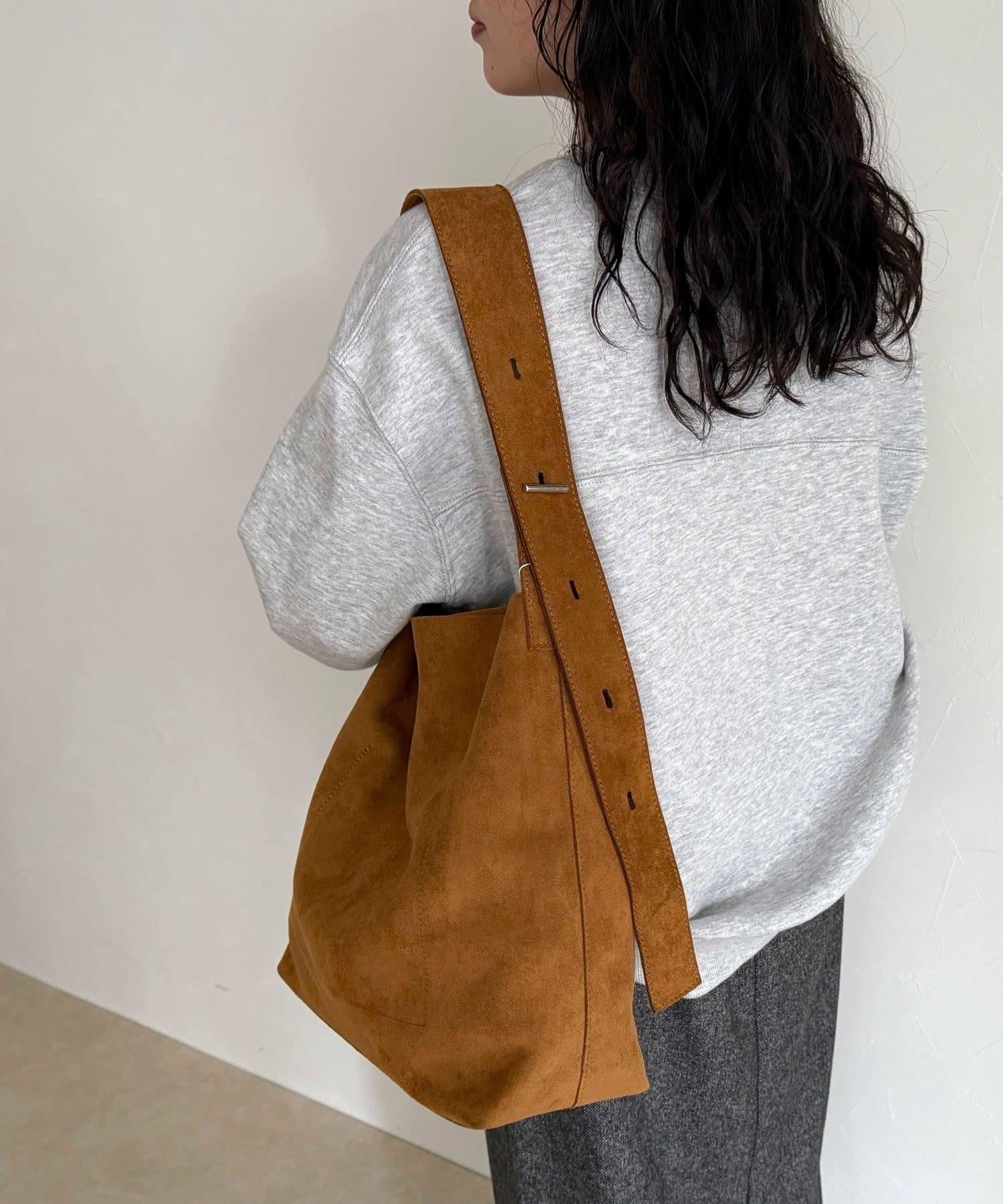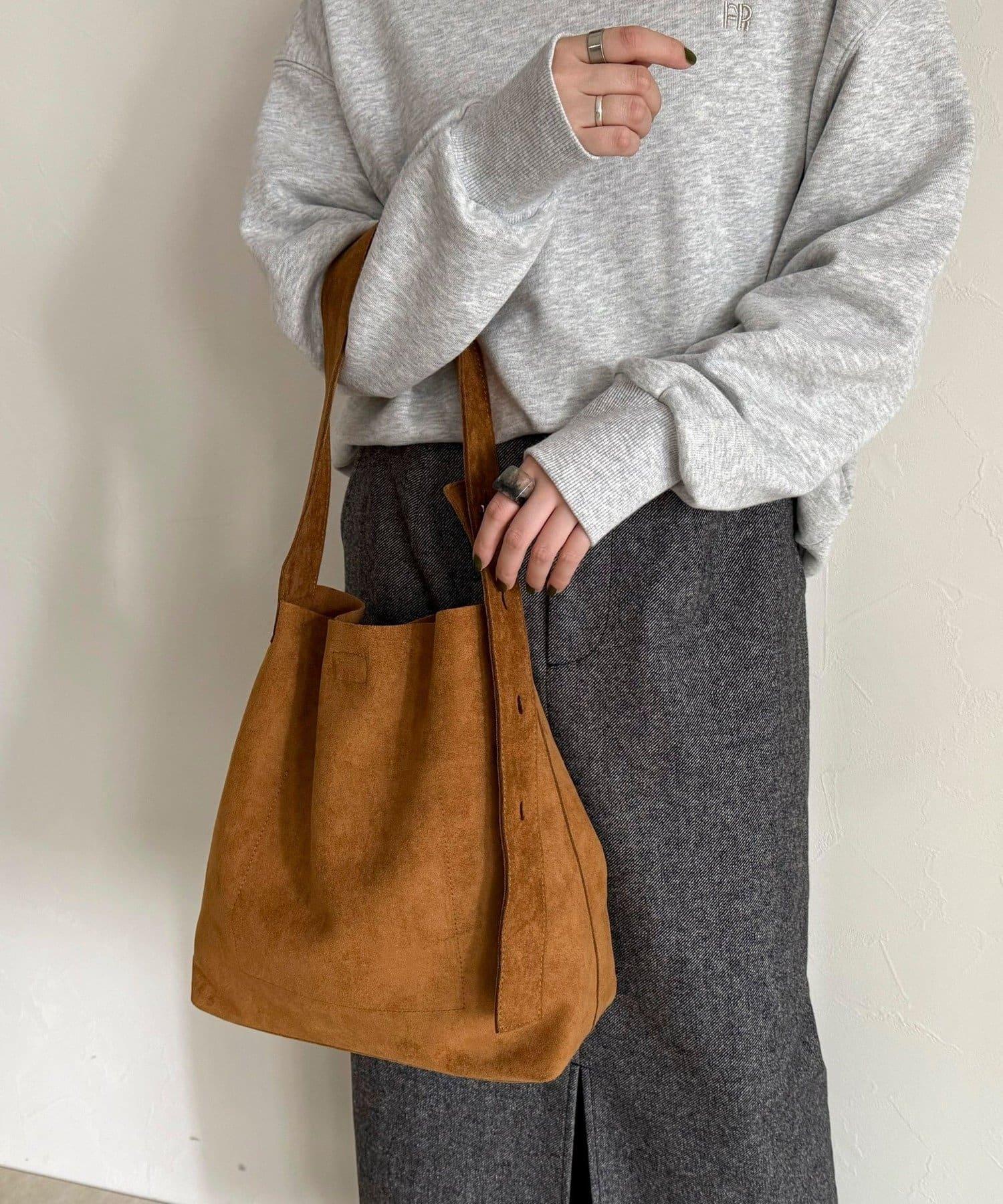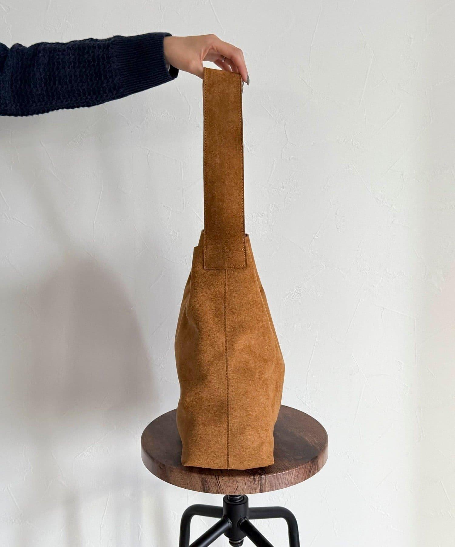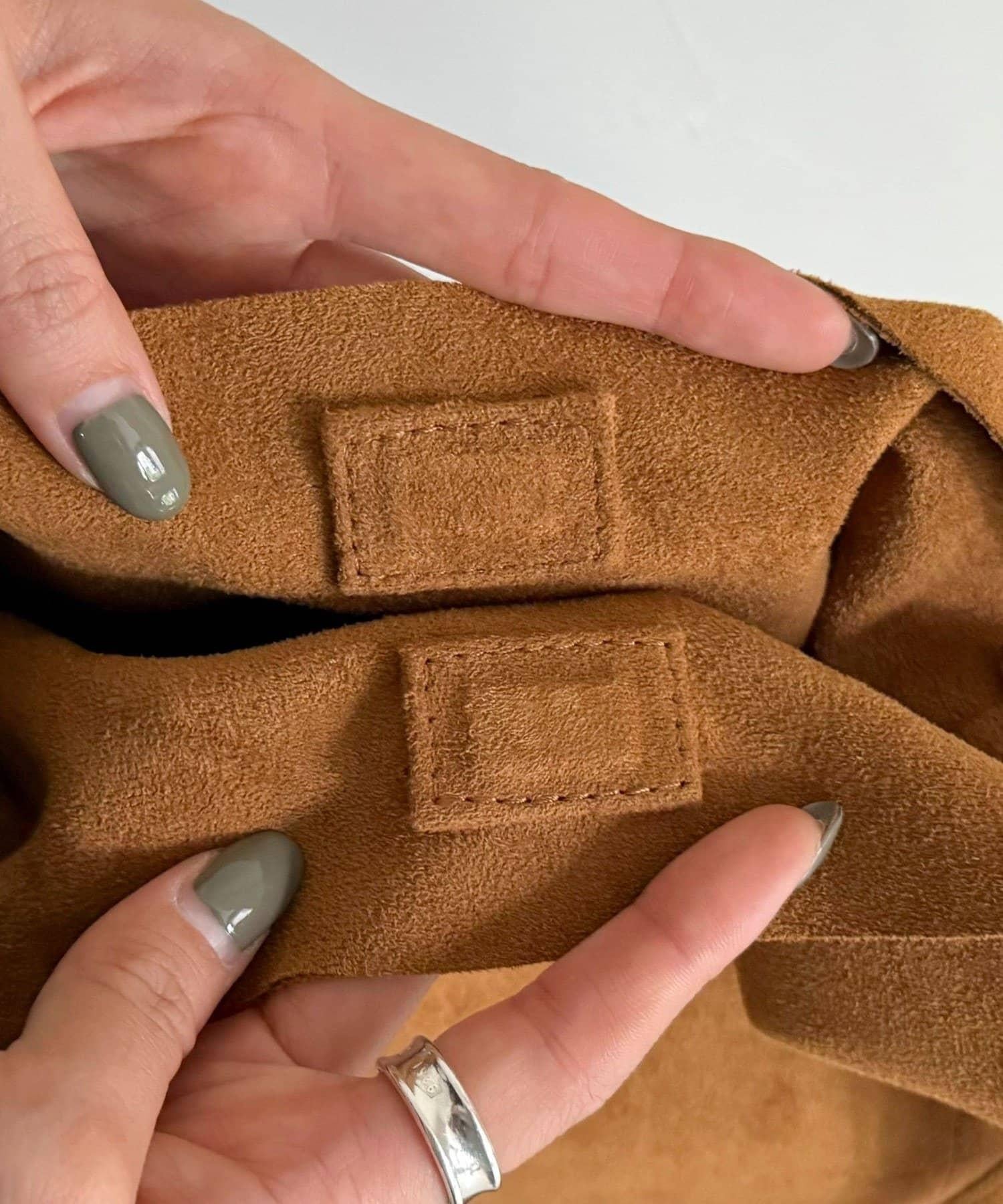 這是一款麂皮材質的單肩包,看起來非常時尚。