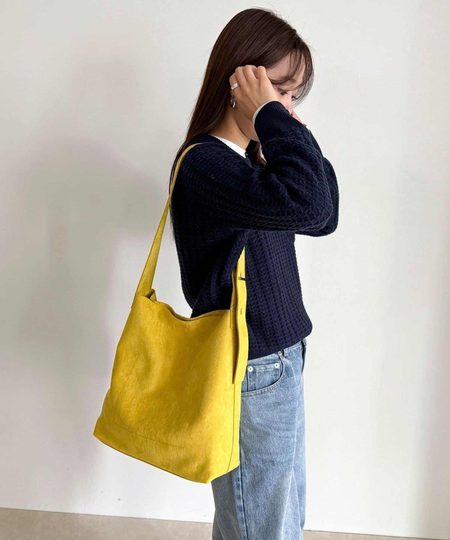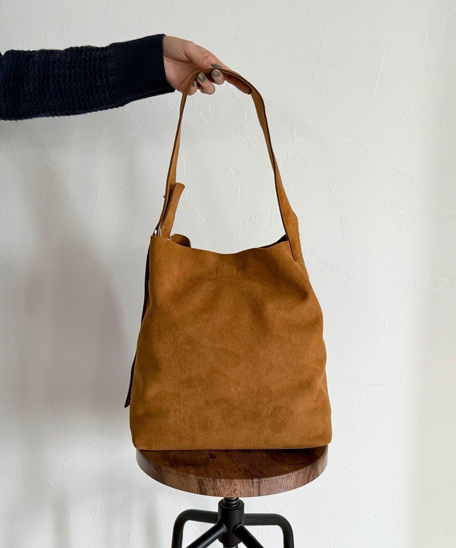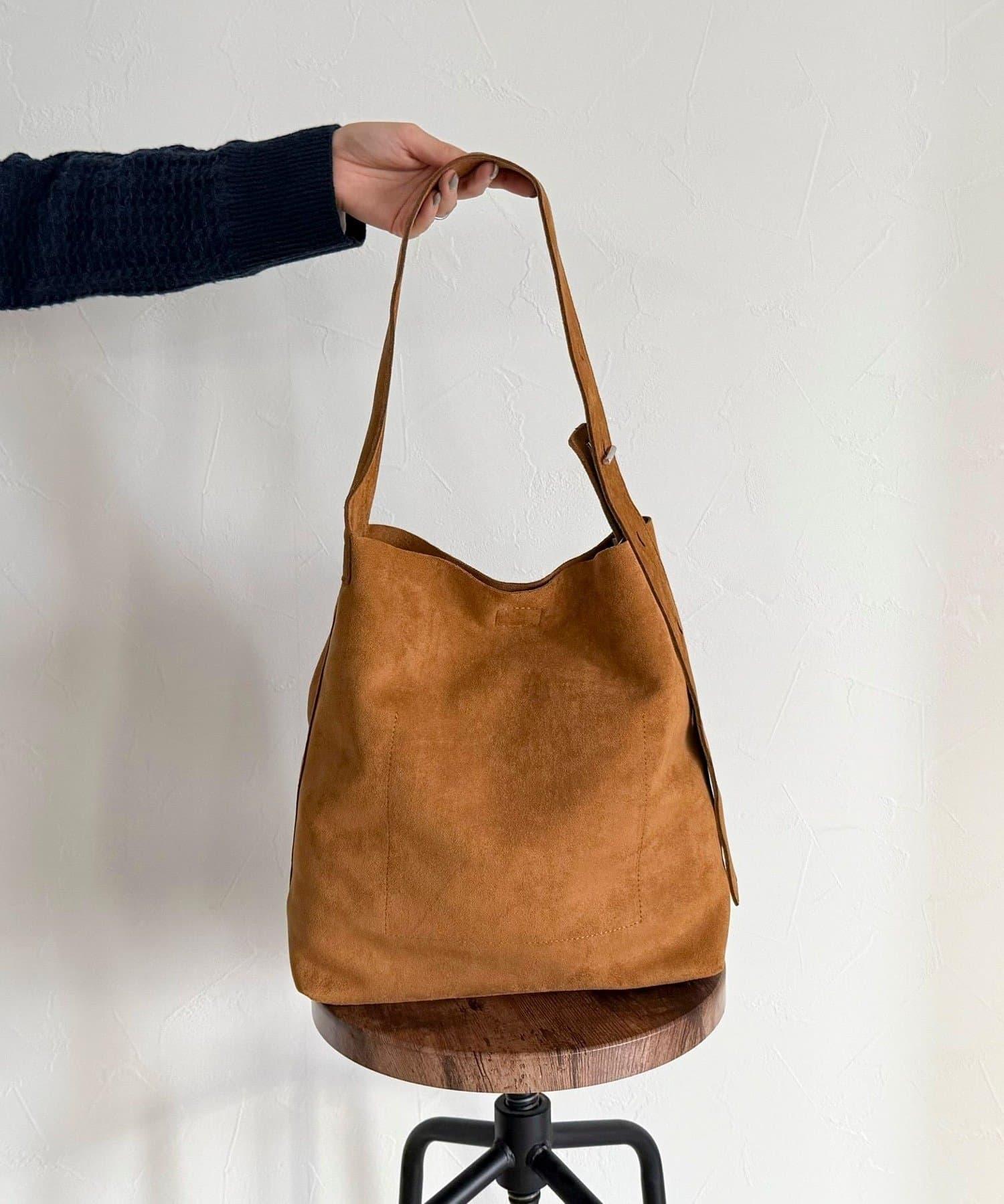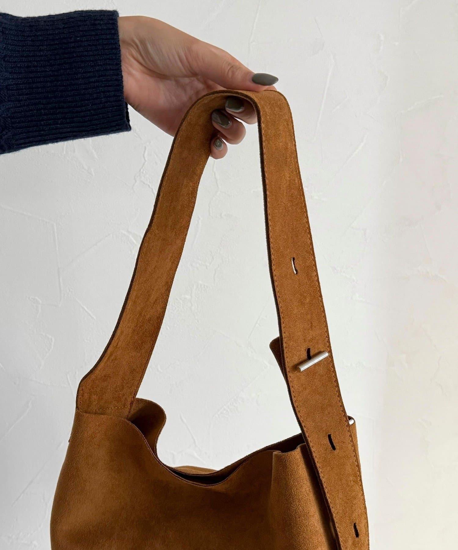 這是一款麂皮材質的單肩包,看起來非常時尚。