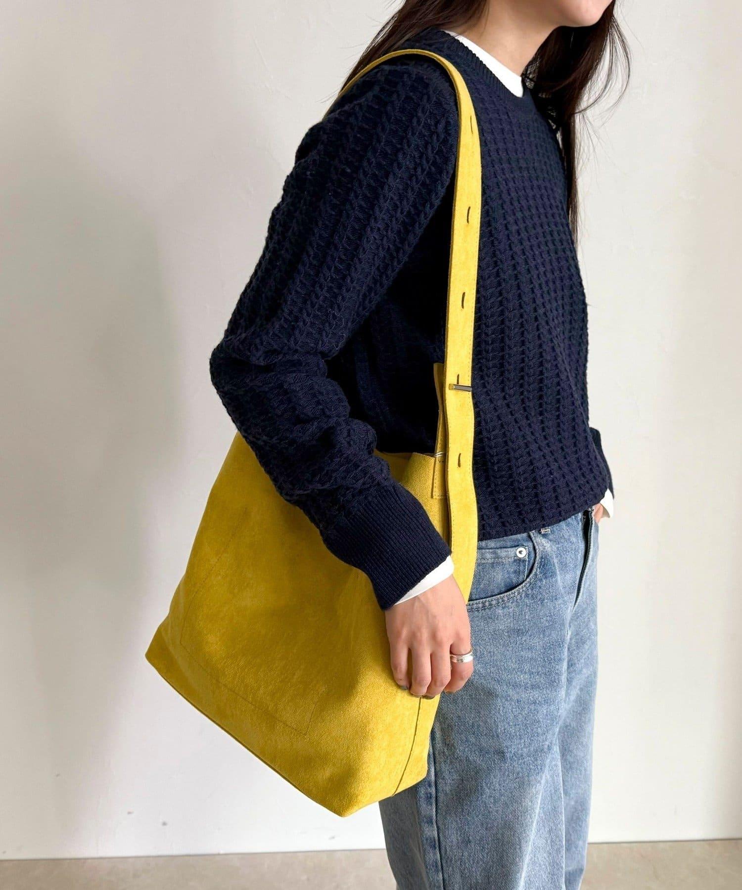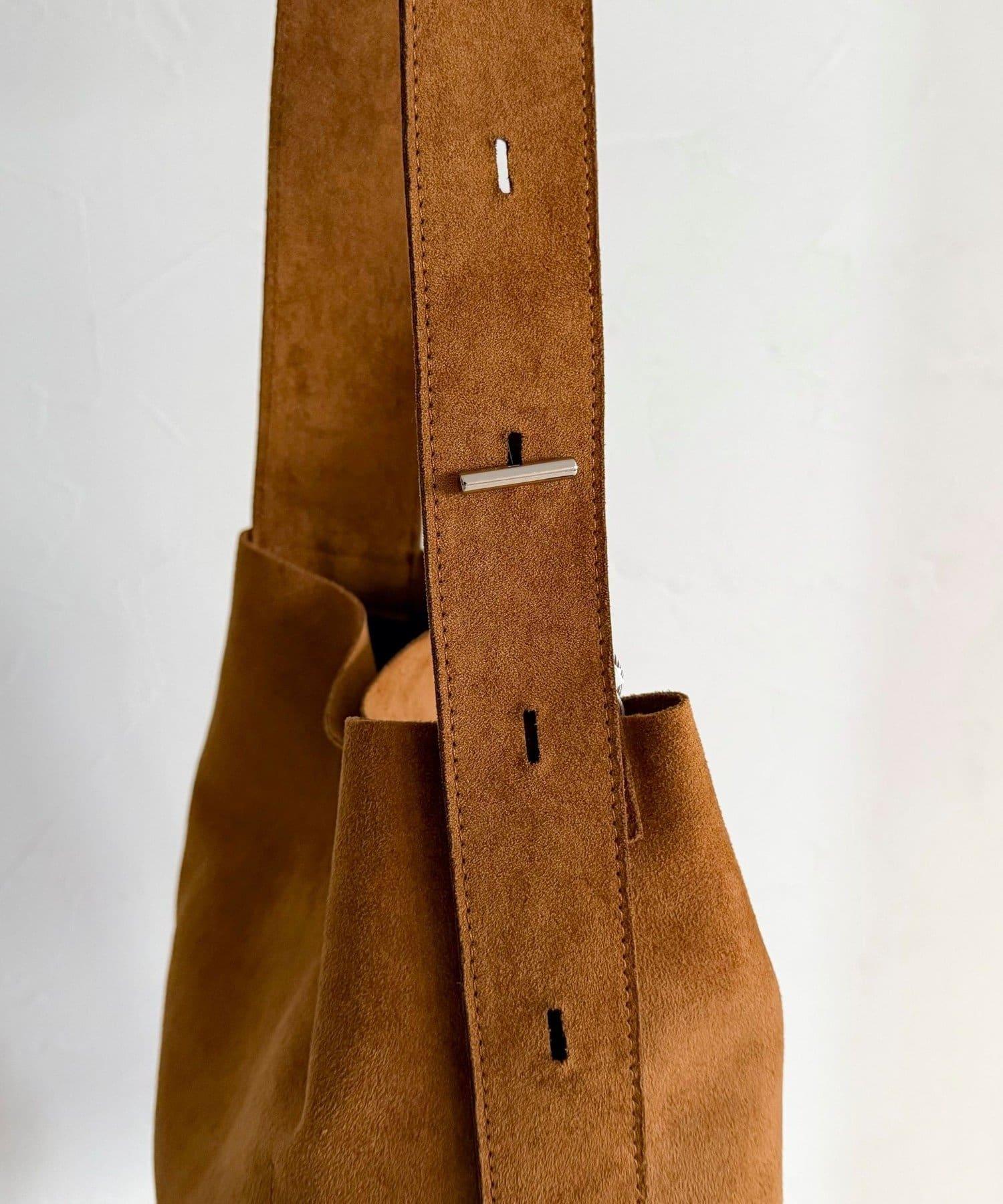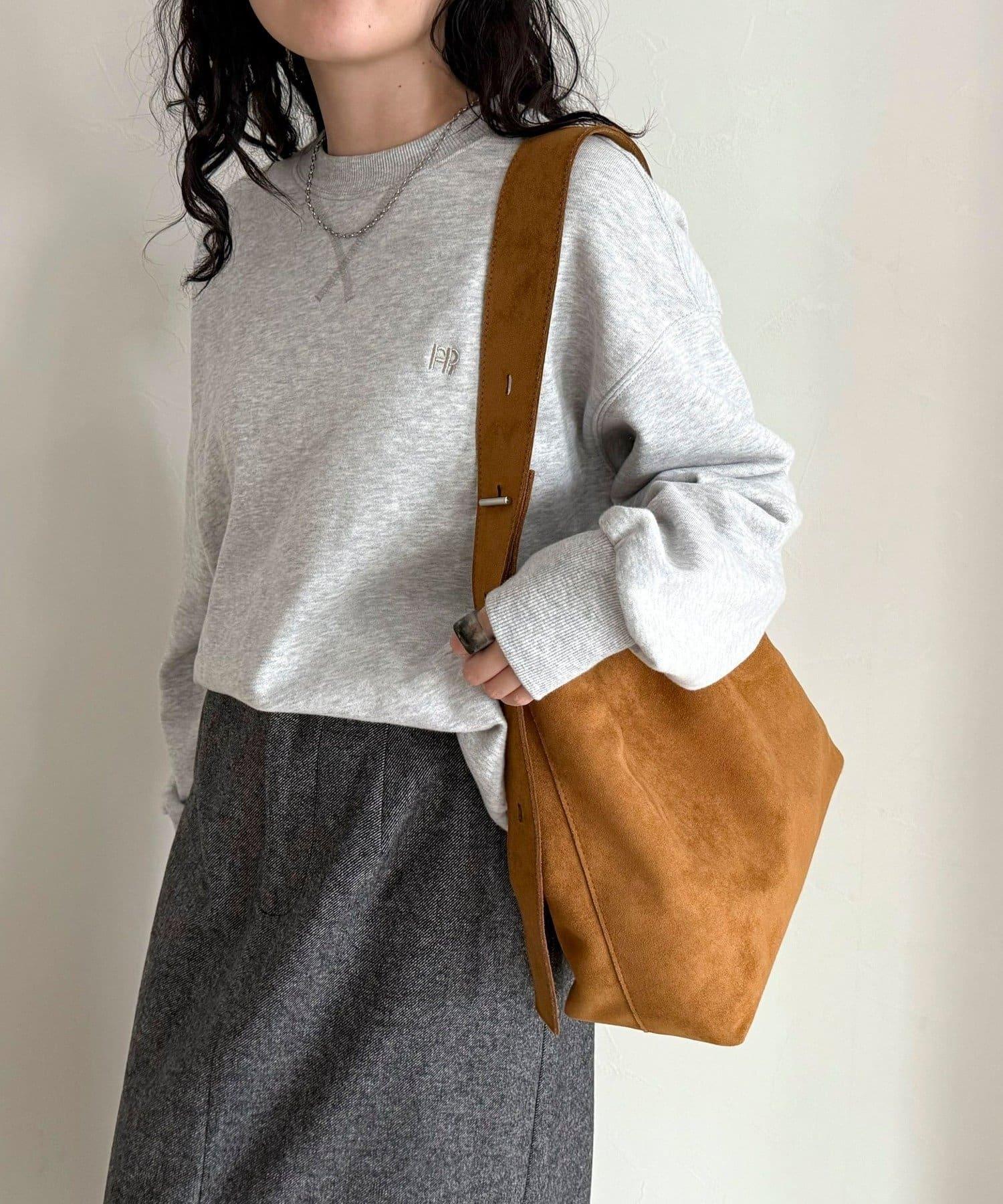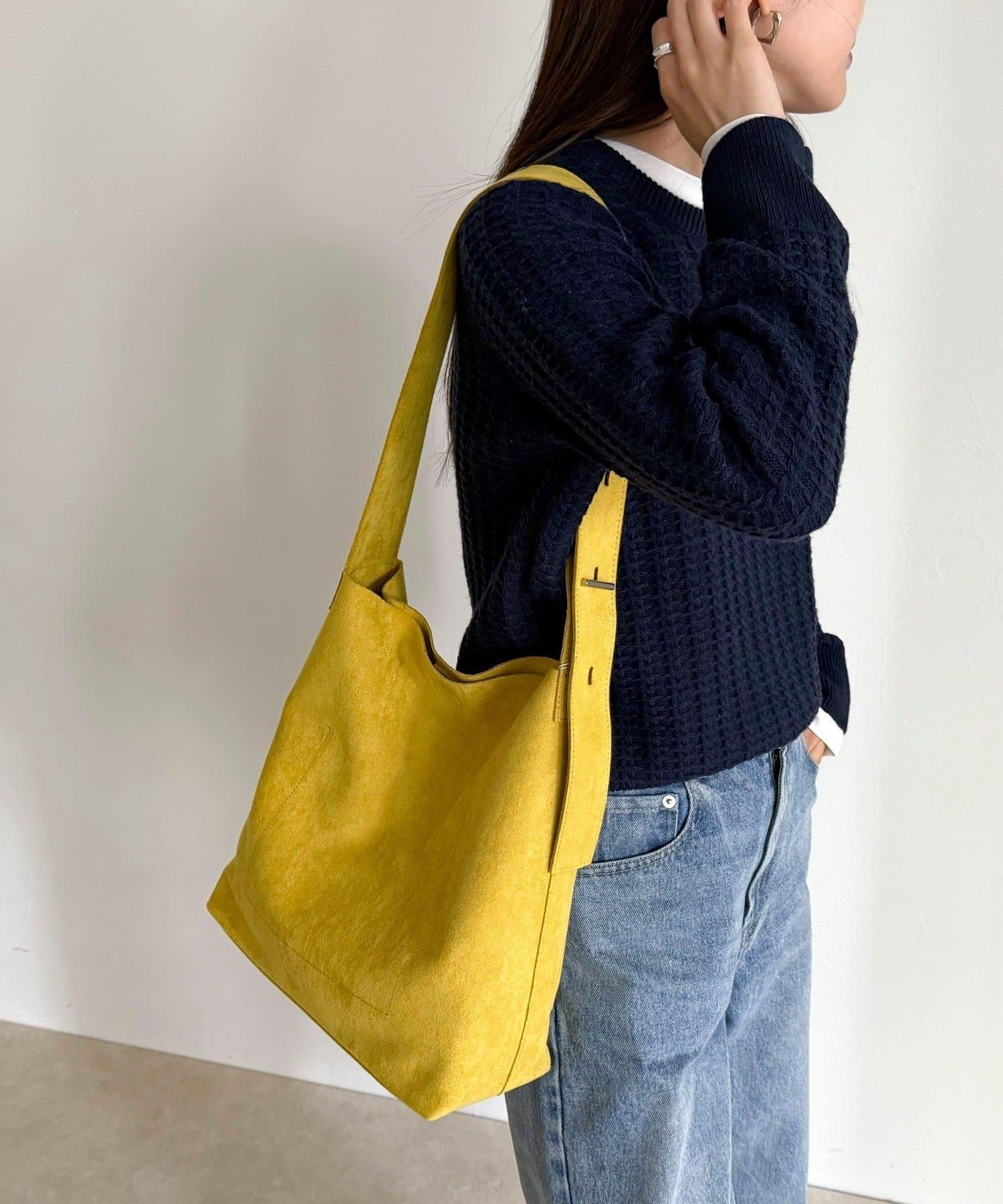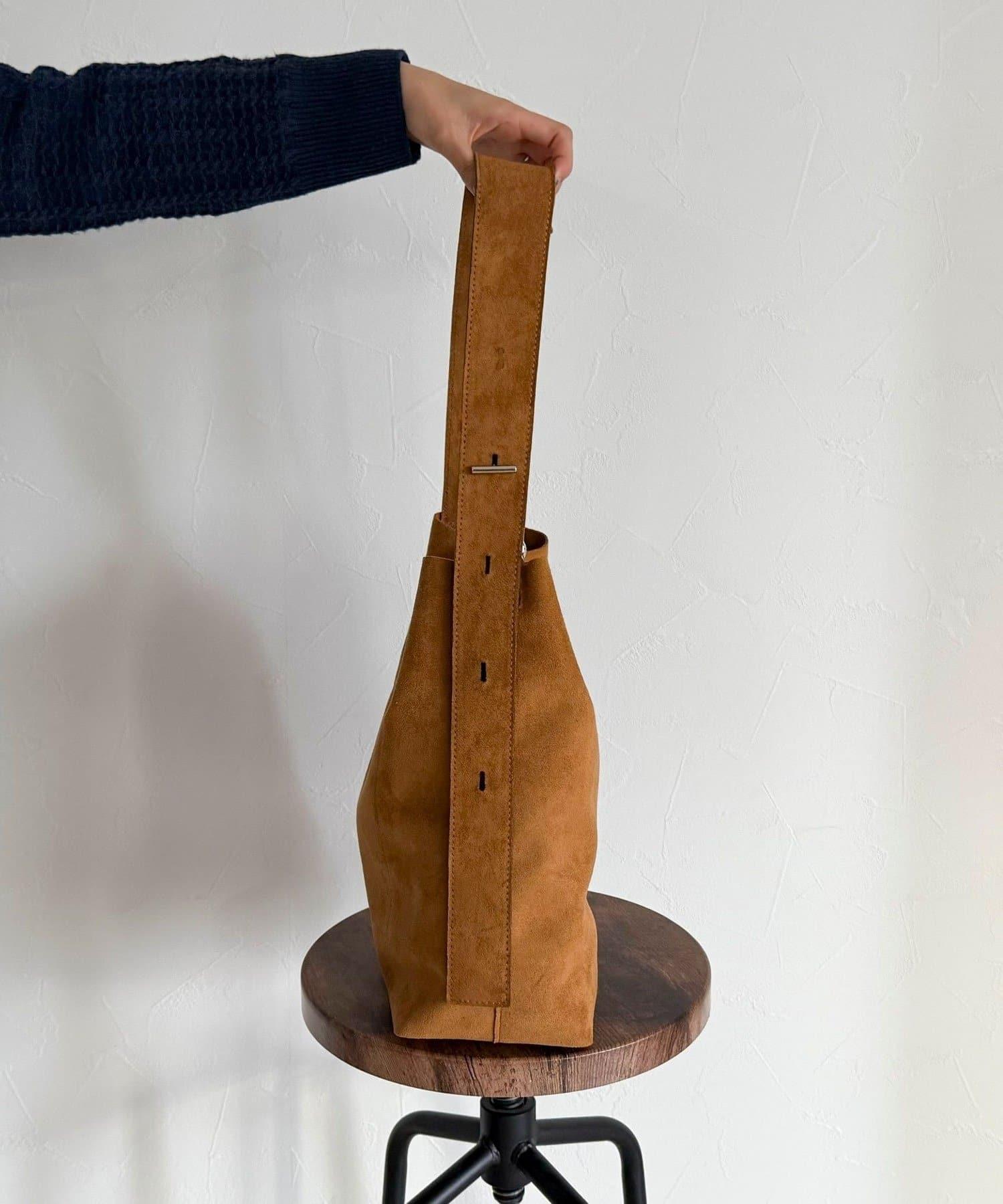 這是一款麂皮材質的單肩包,看起來非常時尚。