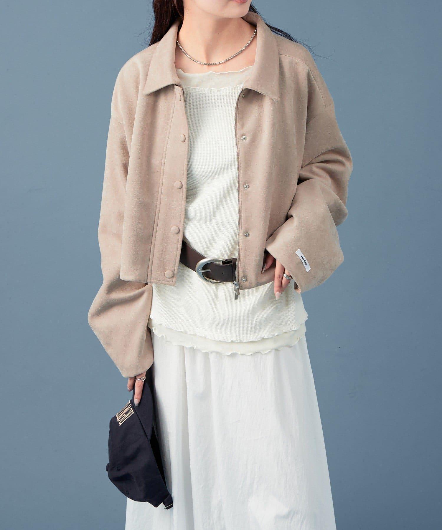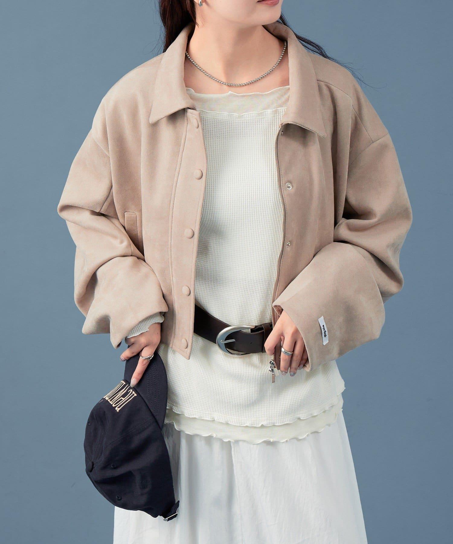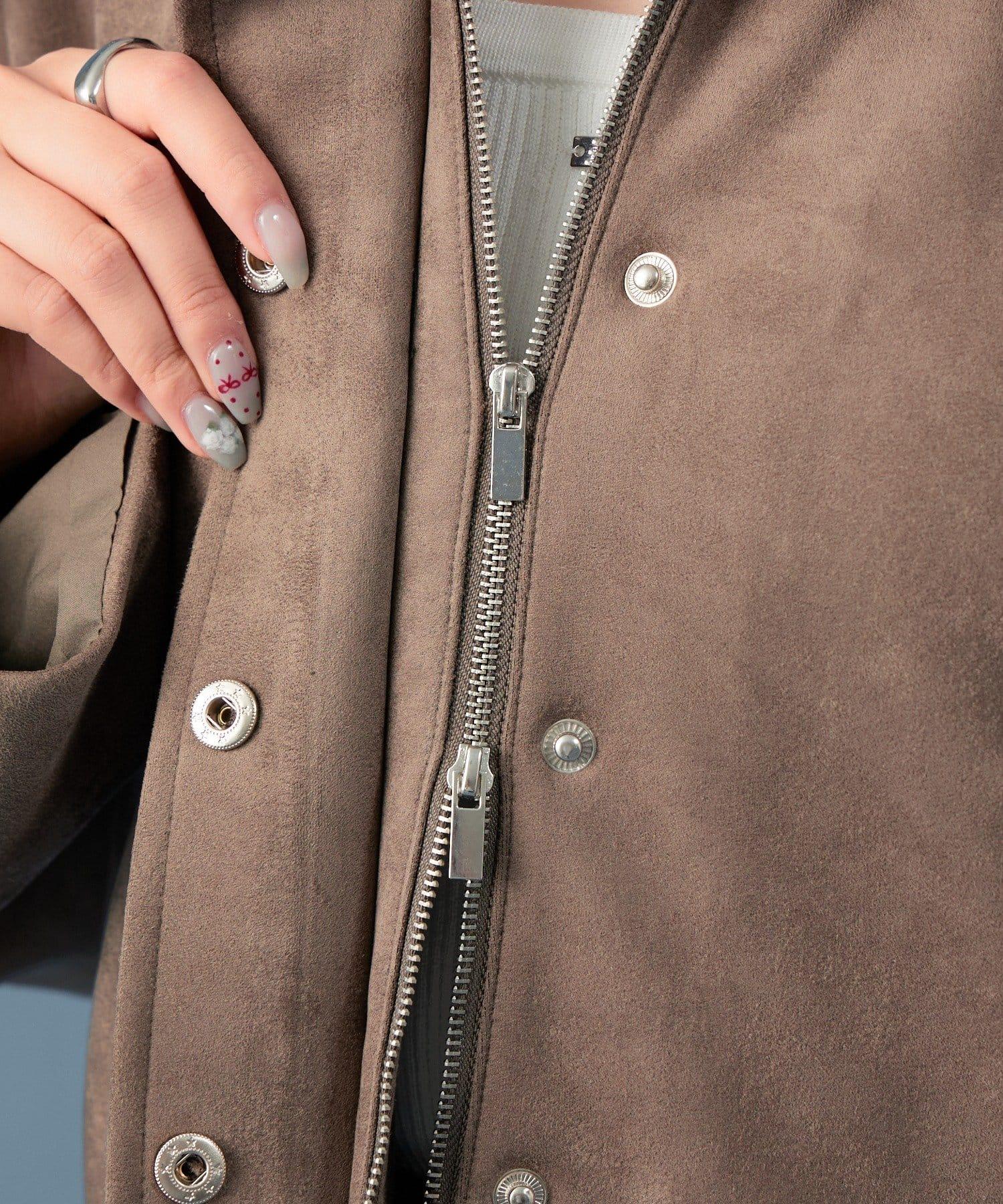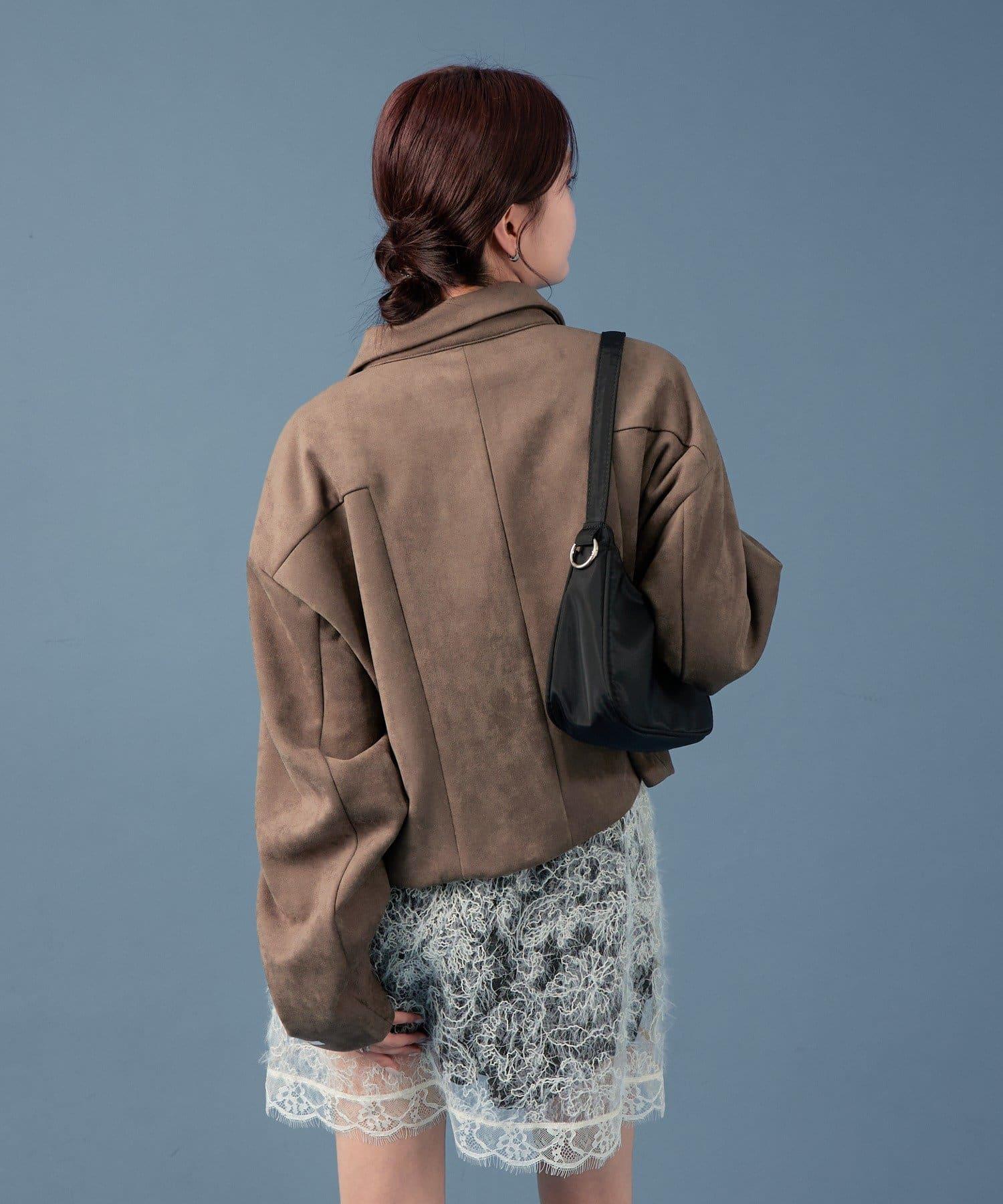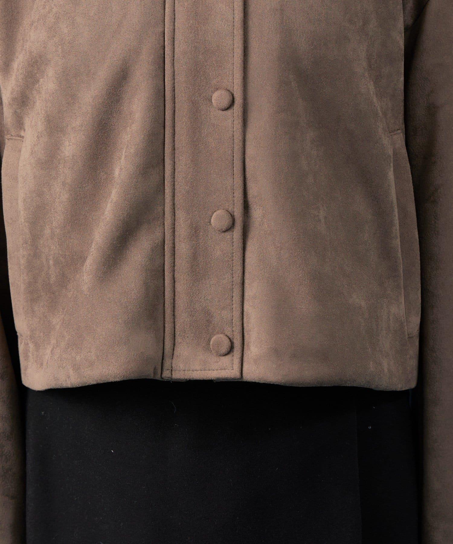 採用仿麂皮絨面料,是一款大氣的短外套。袖子寬大,可寬鬆穿著。