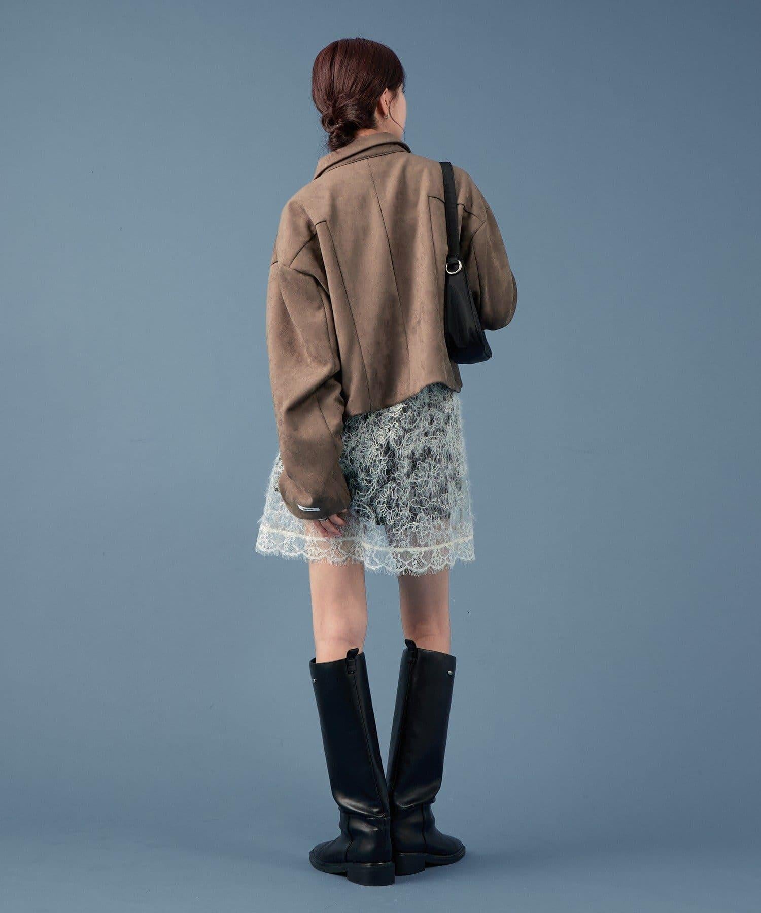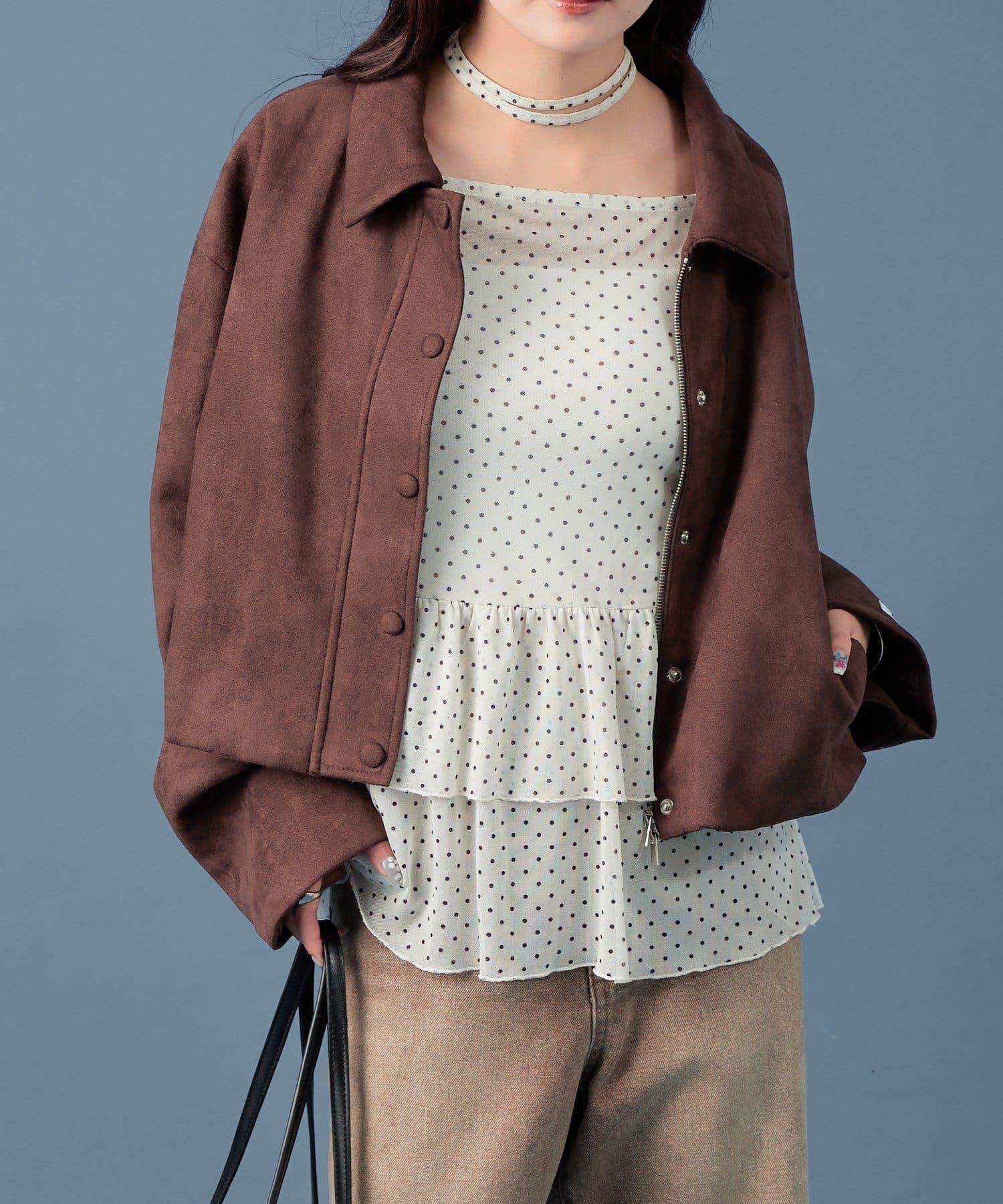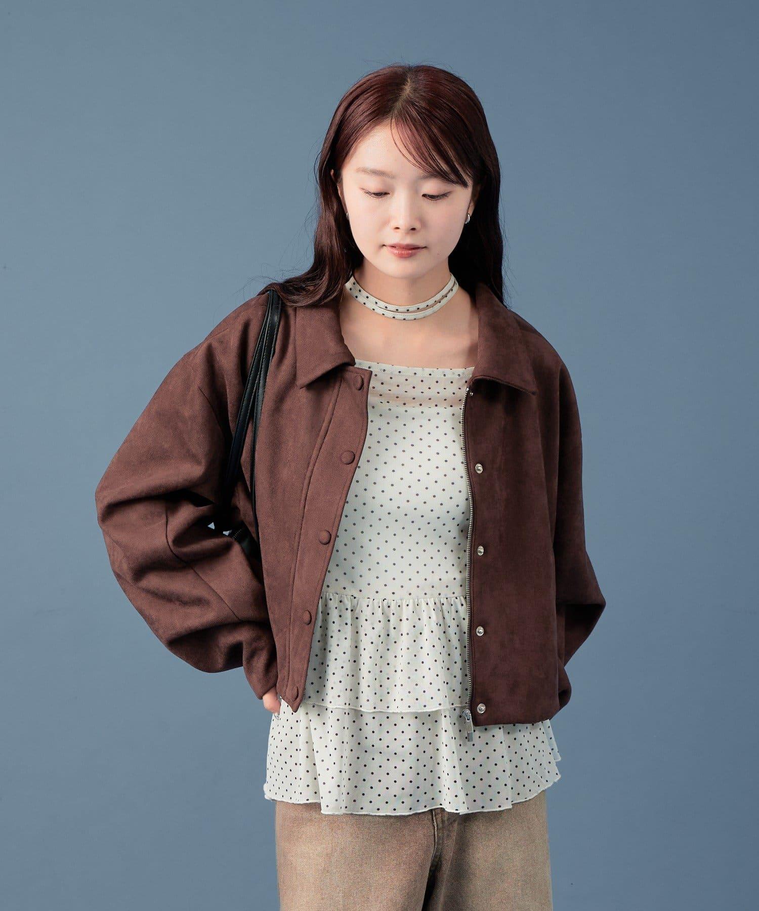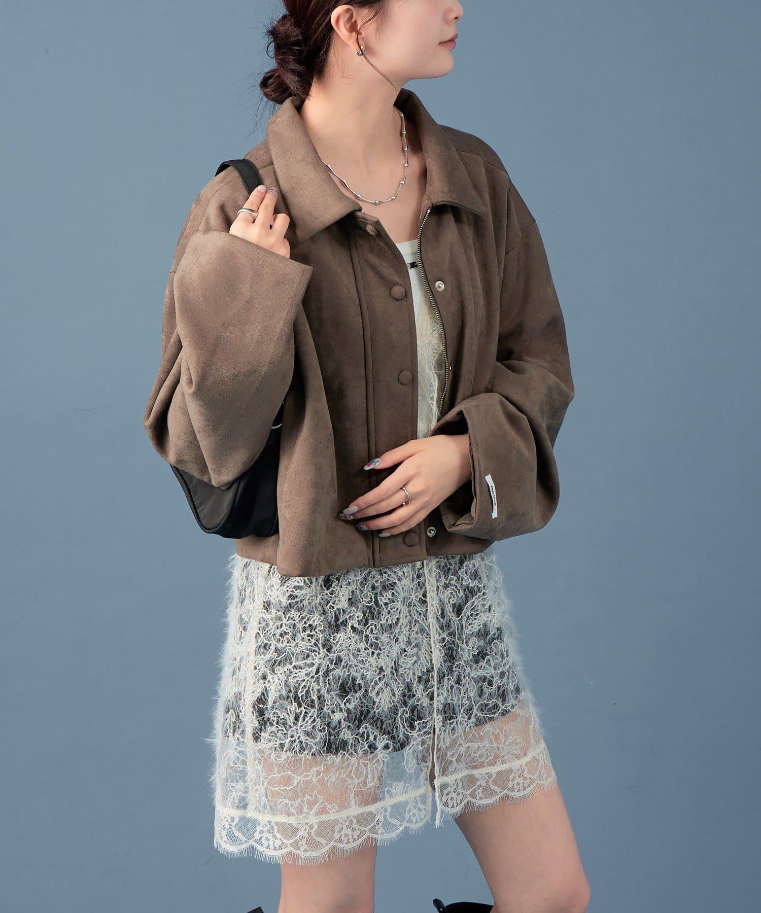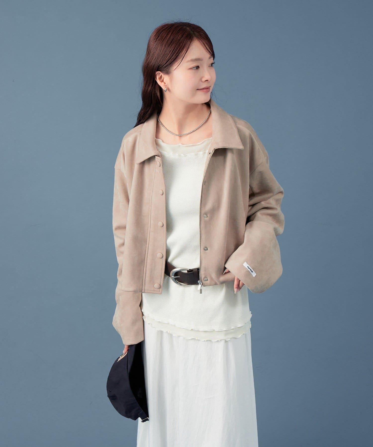 採用仿麂皮絨面料,是一款大氣的短外套。袖子寬大,可寬鬆穿著。