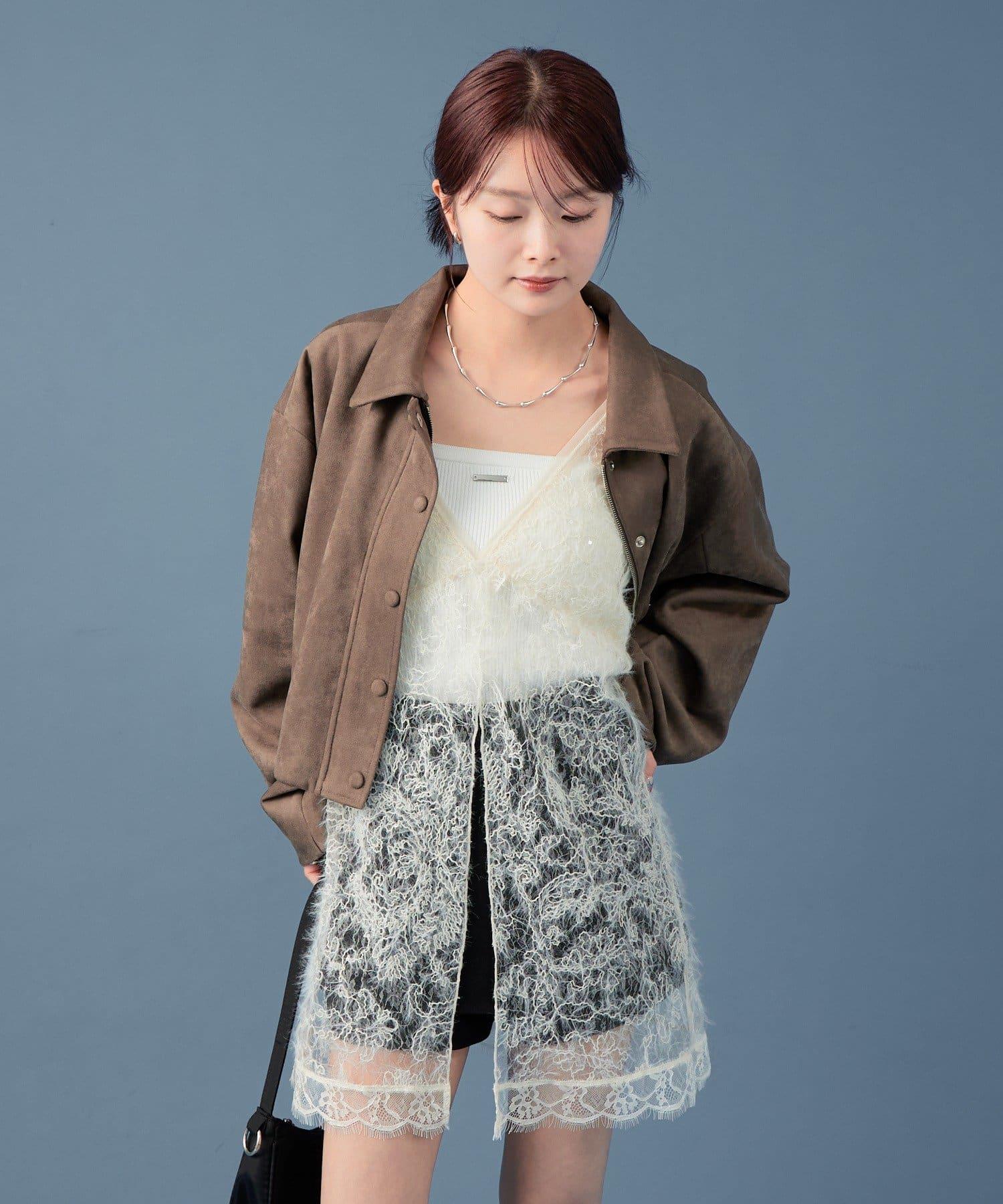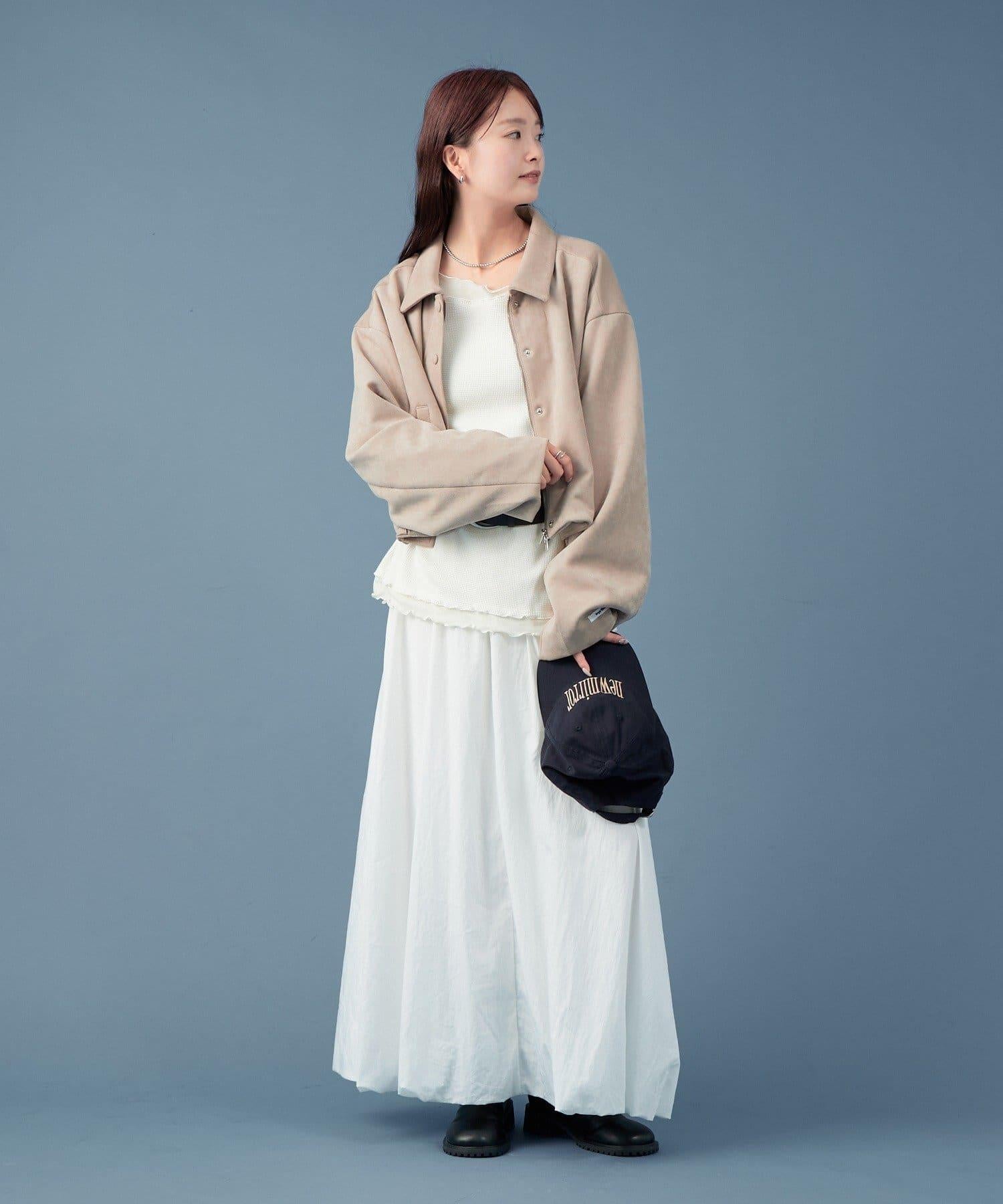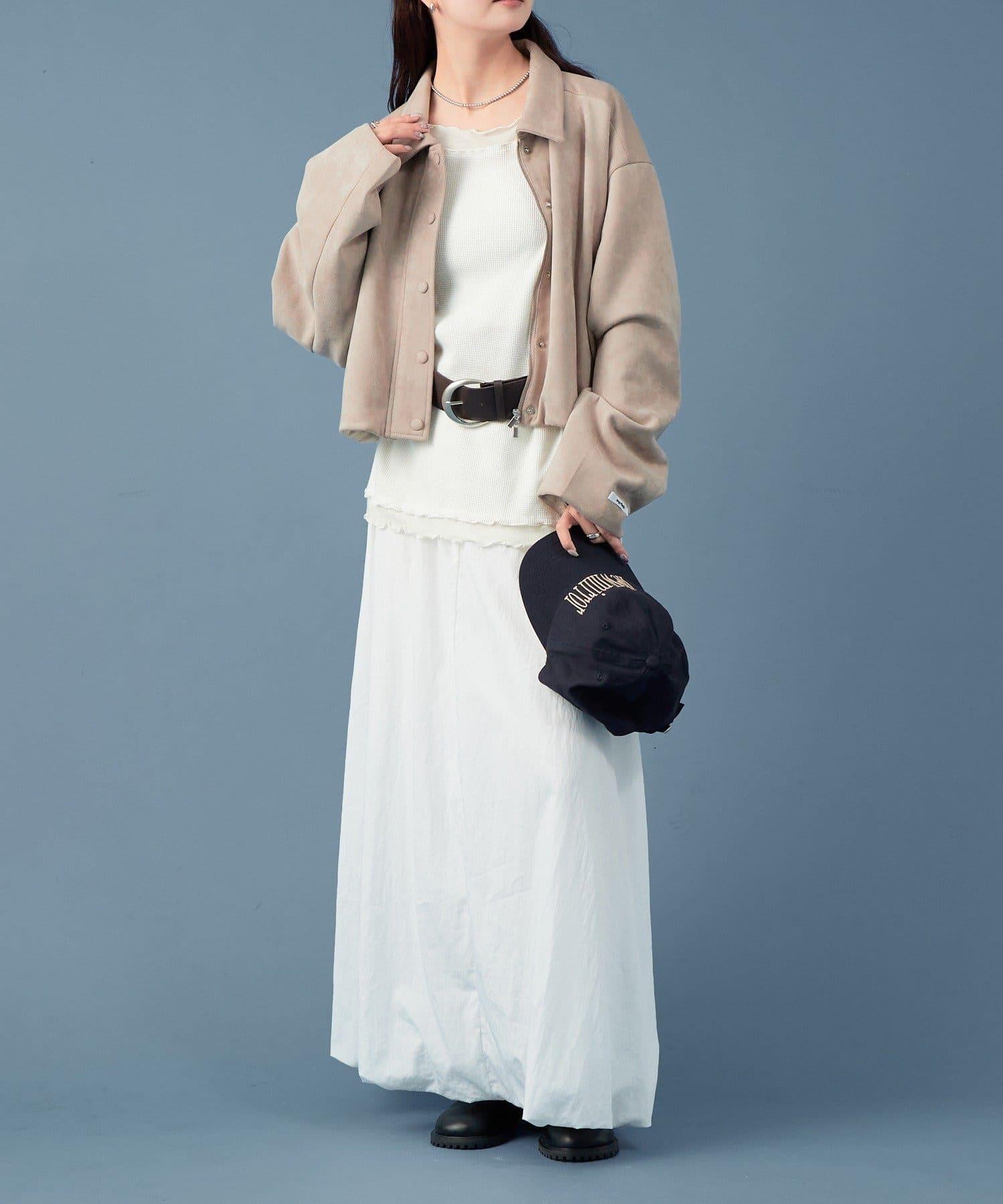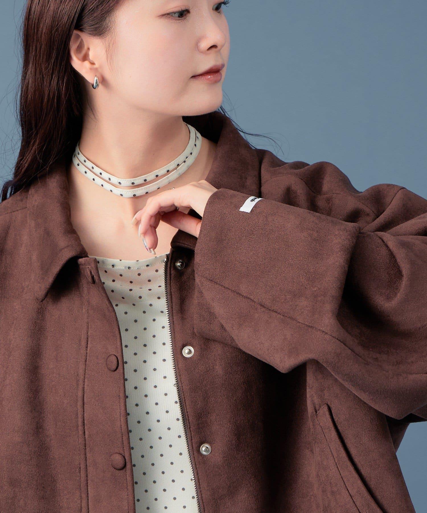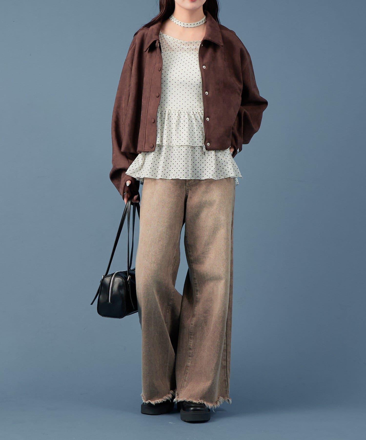 採用仿麂皮絨面料,是一款大氣的短外套。袖子寬大,可寬鬆穿著。