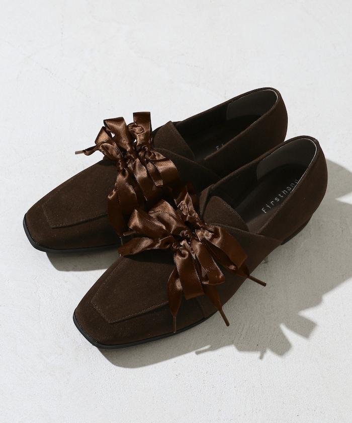 仿麂皮絨材質,四季皆宜。繫帶平底鞋,穿著方便,外觀時尚。