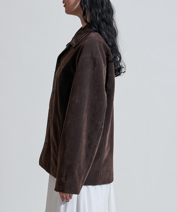 一款具有真正麂皮絨皮革質感和堅實面料觸感的夾克。