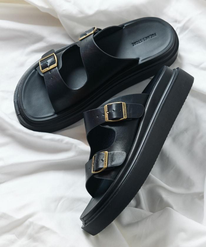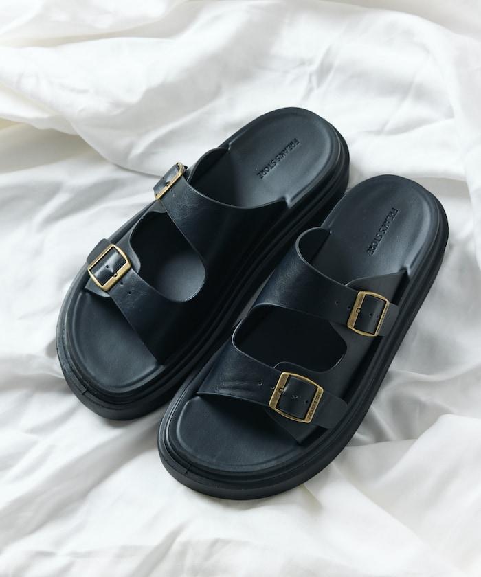 仿麂皮 雙帶 滑坡涼鞋 / 厚底鞋底 [23~28cm]