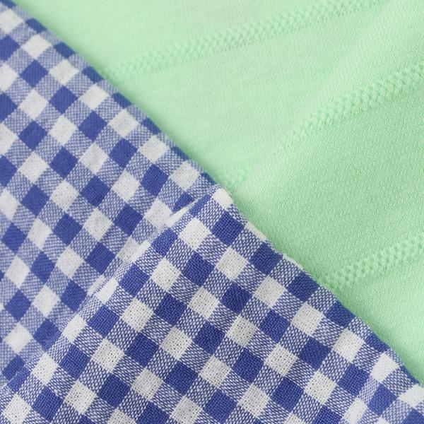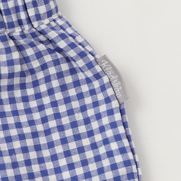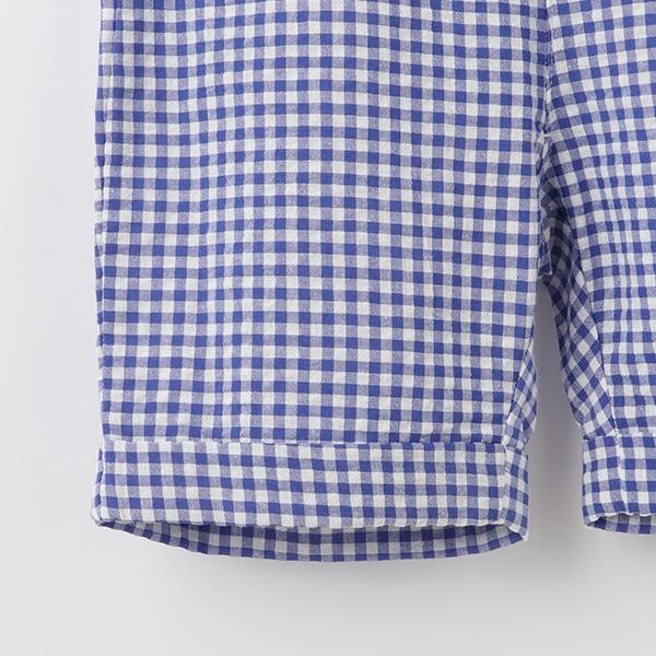 褲子採用格子布製成,手感凹凸有致,增添了清新的氣息。