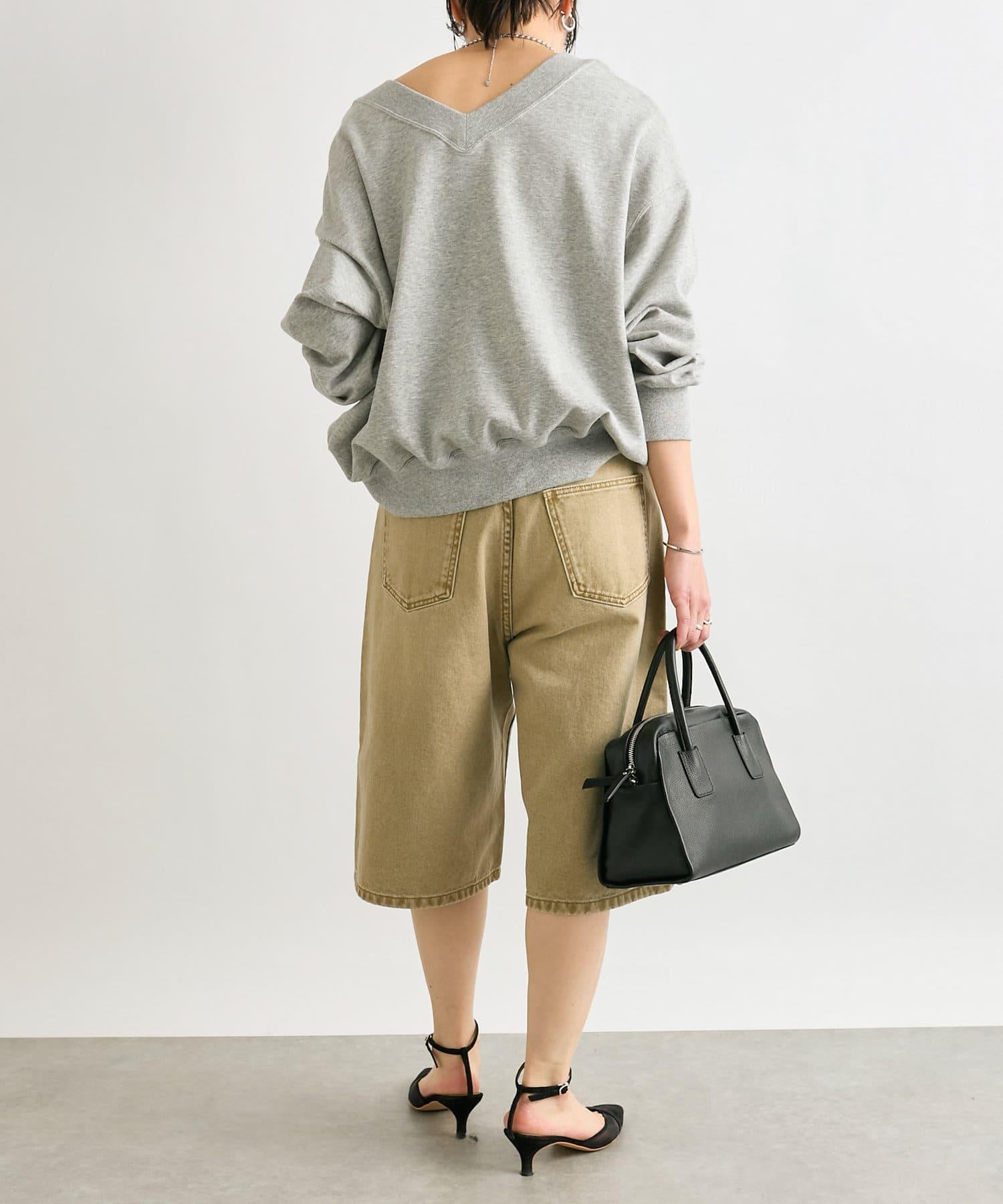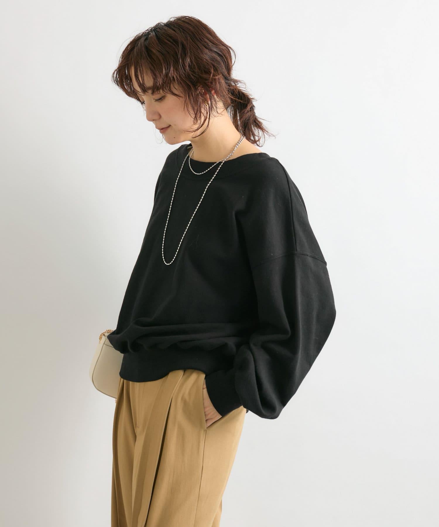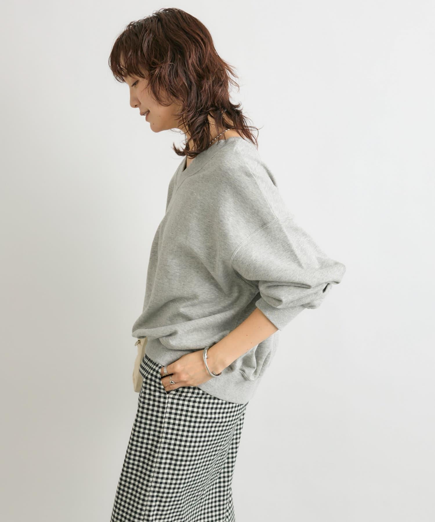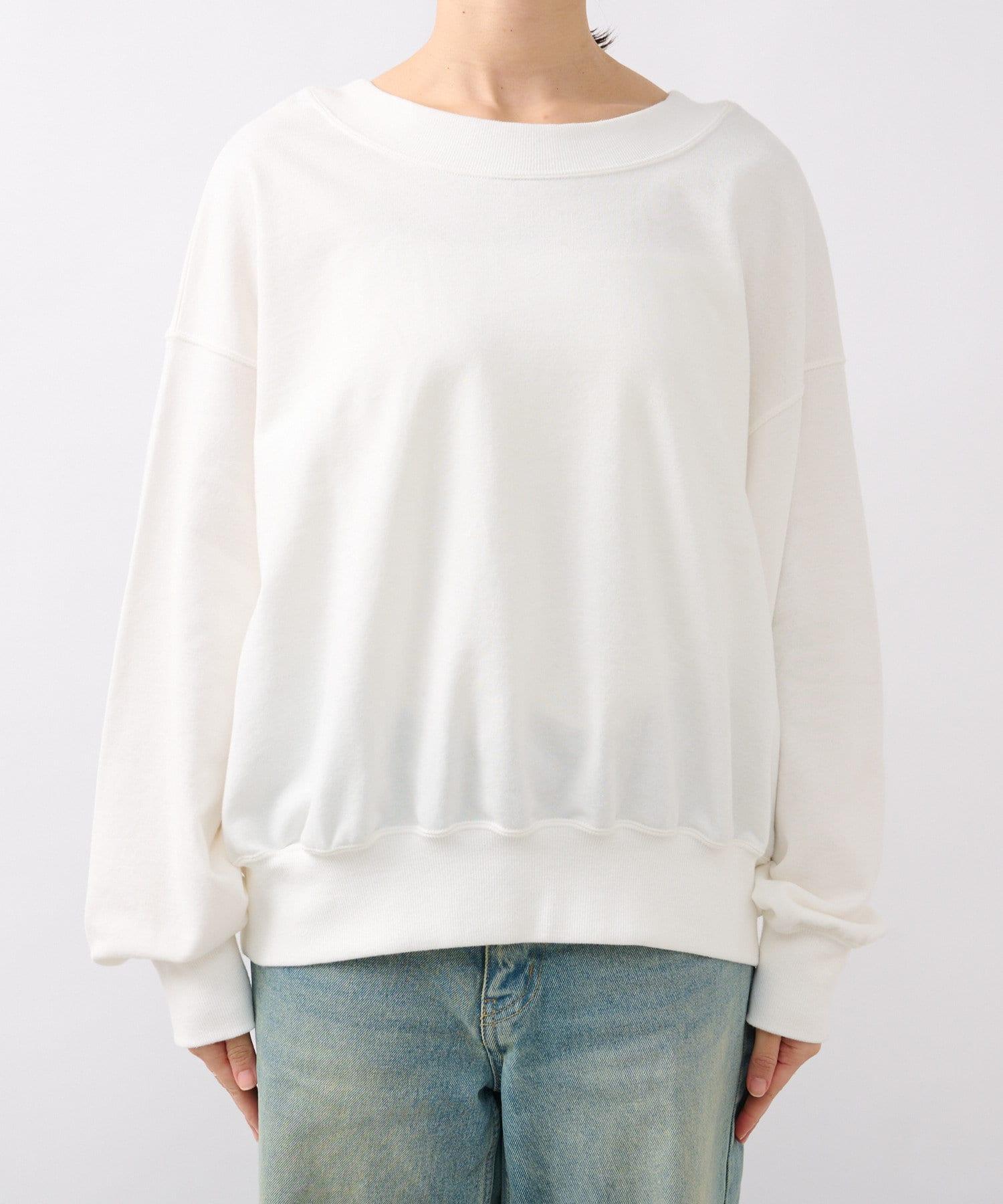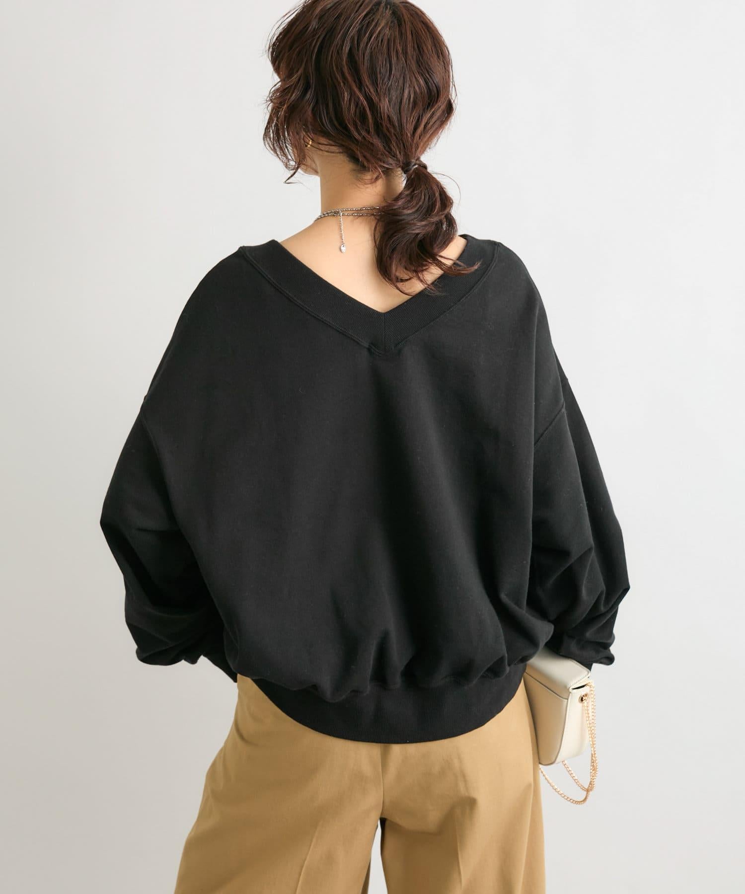 領口寬鬆開闊,建議將一側肩膀下垂,呈現寬鬆感。