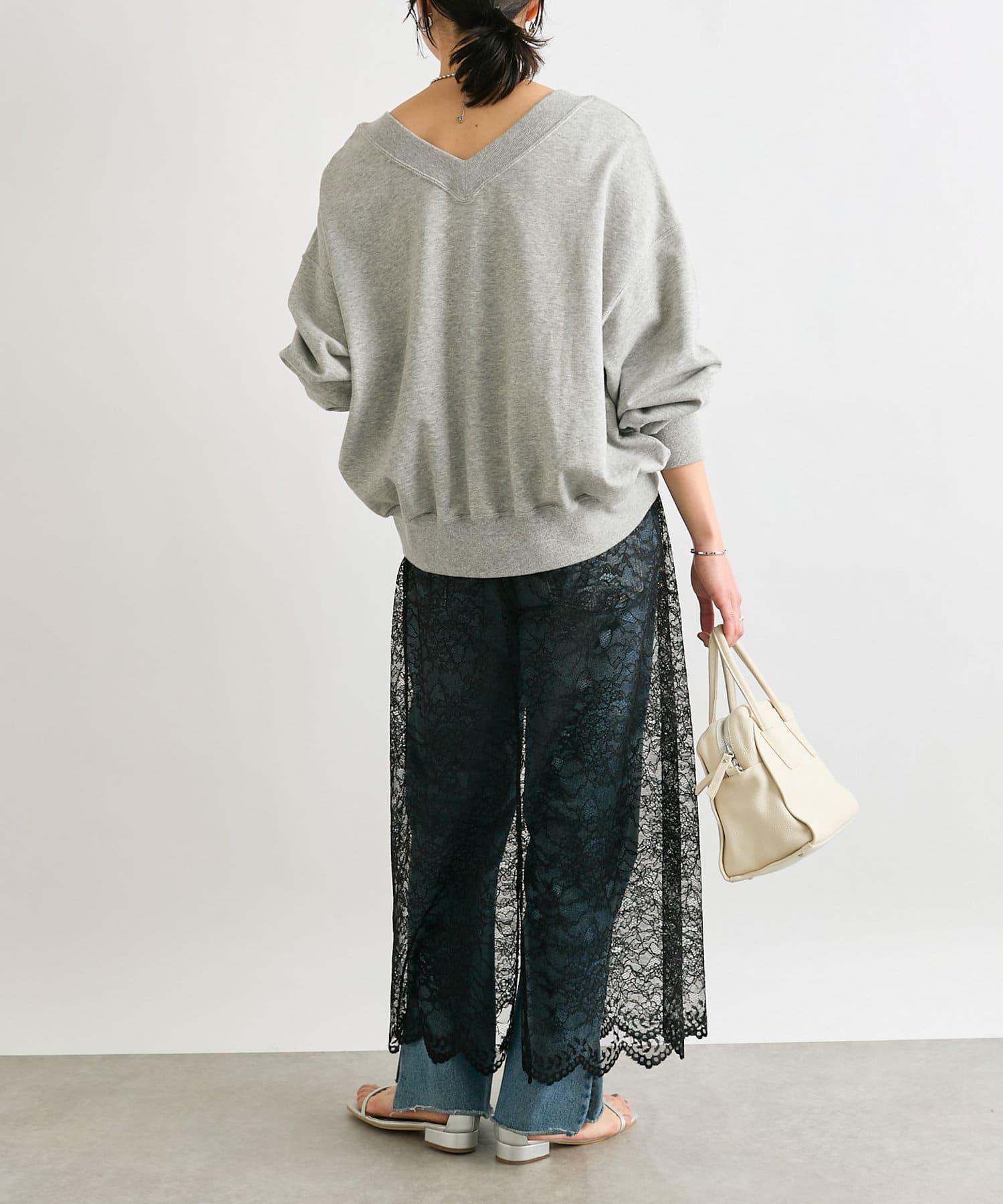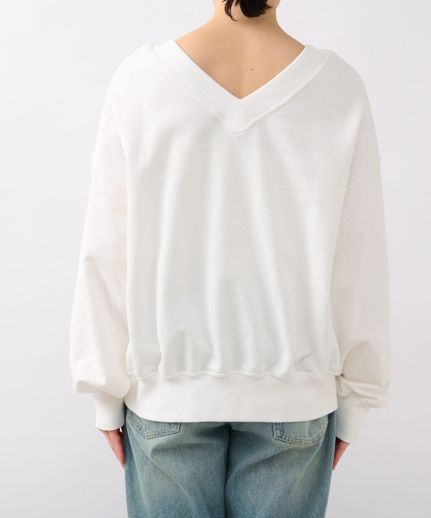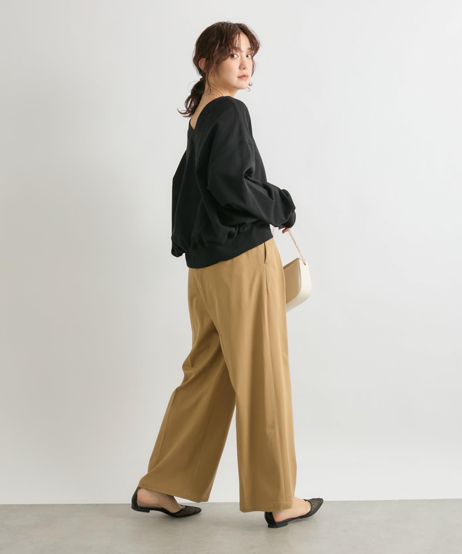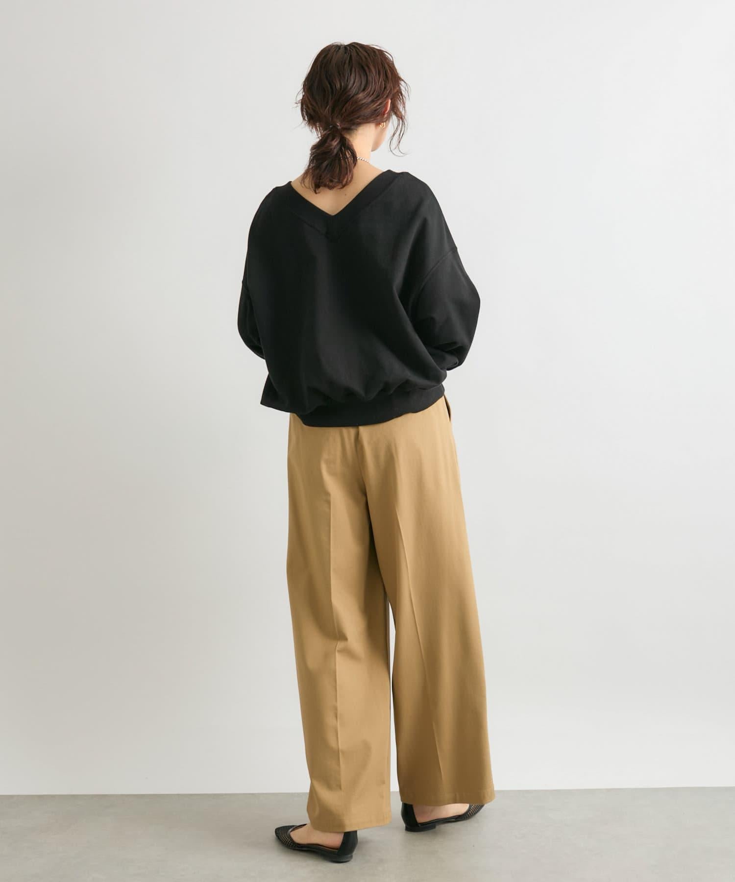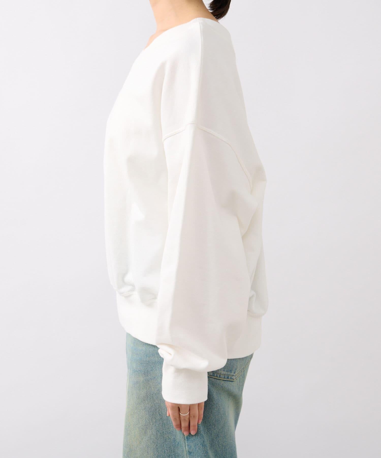 領口寬鬆開闊,建議將一側肩膀下垂,呈現寬鬆感。