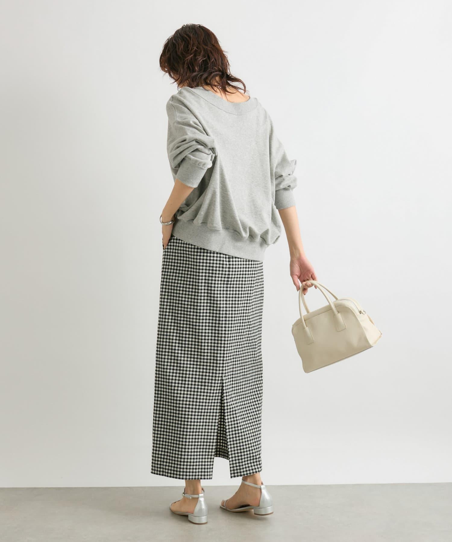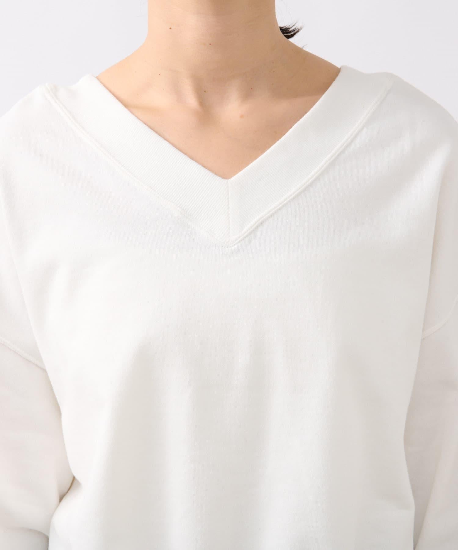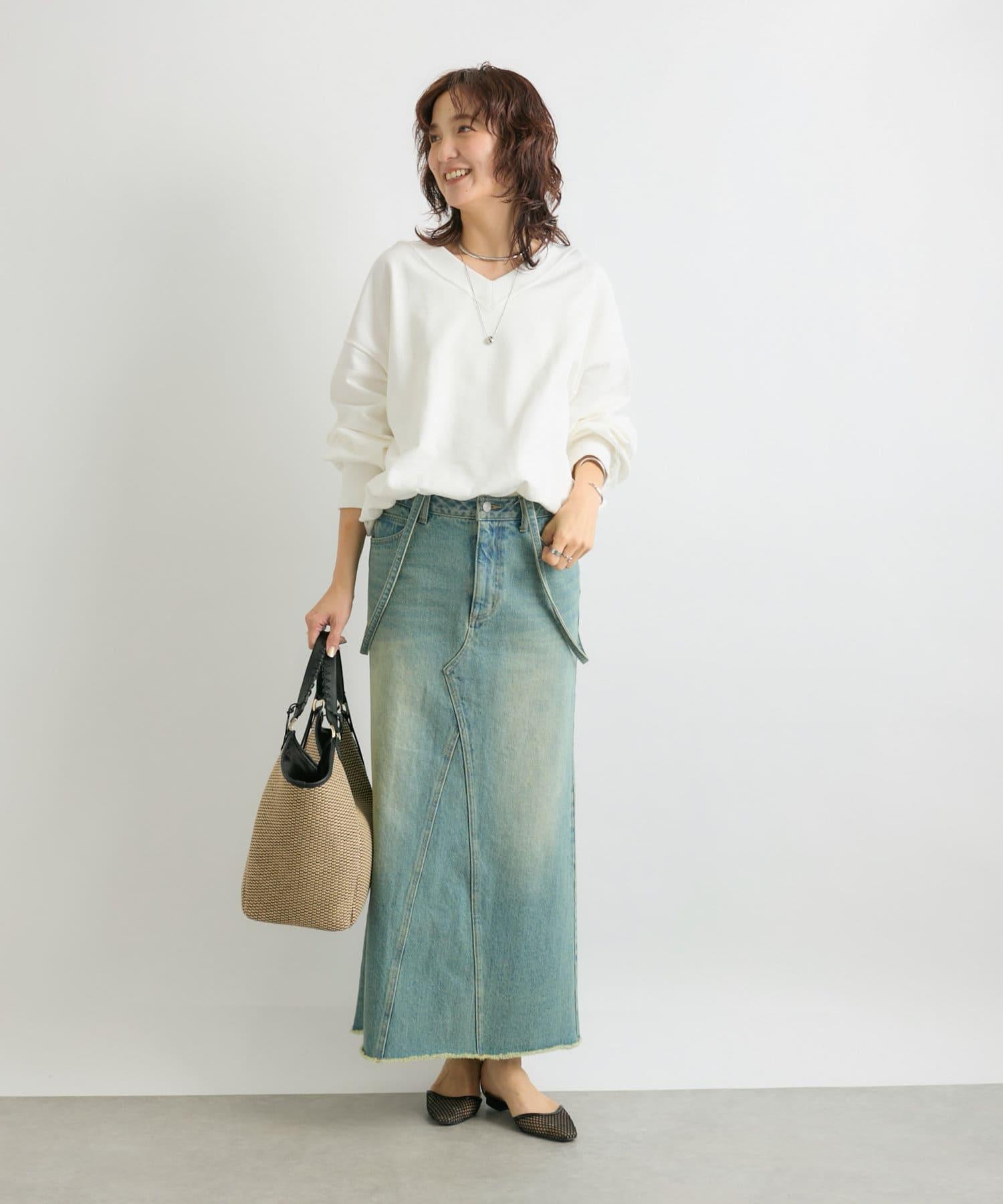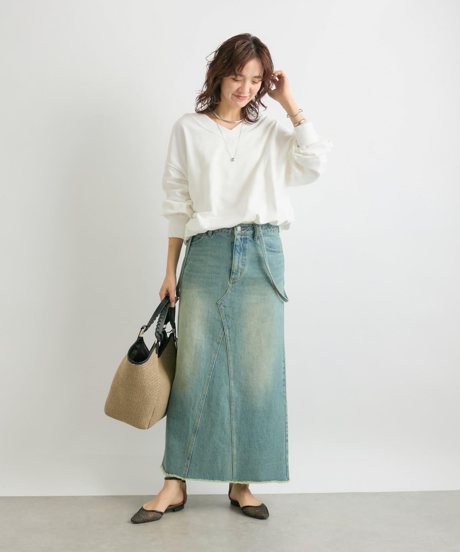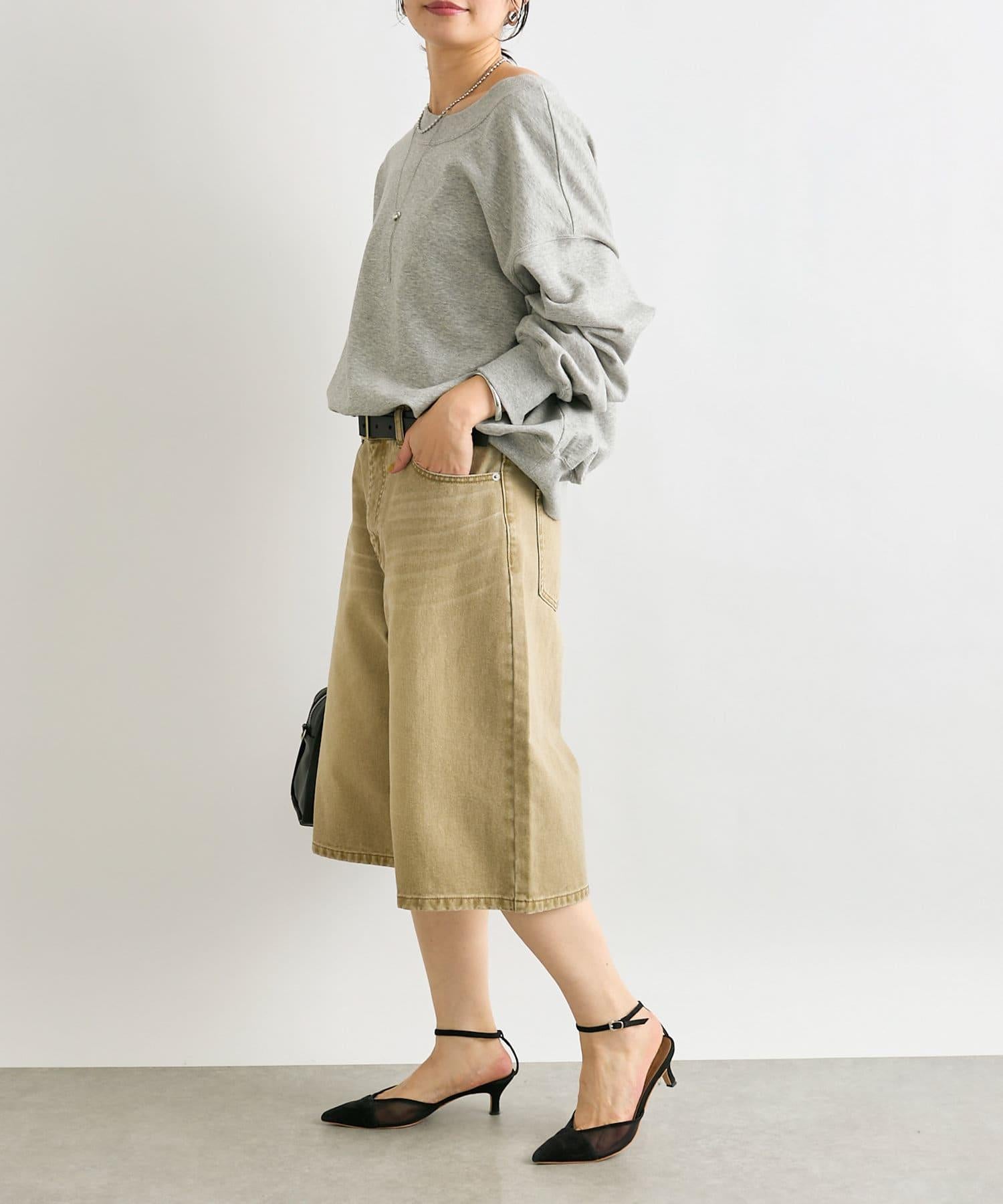 領口寬鬆開闊,建議將一側肩膀下垂,呈現寬鬆感。