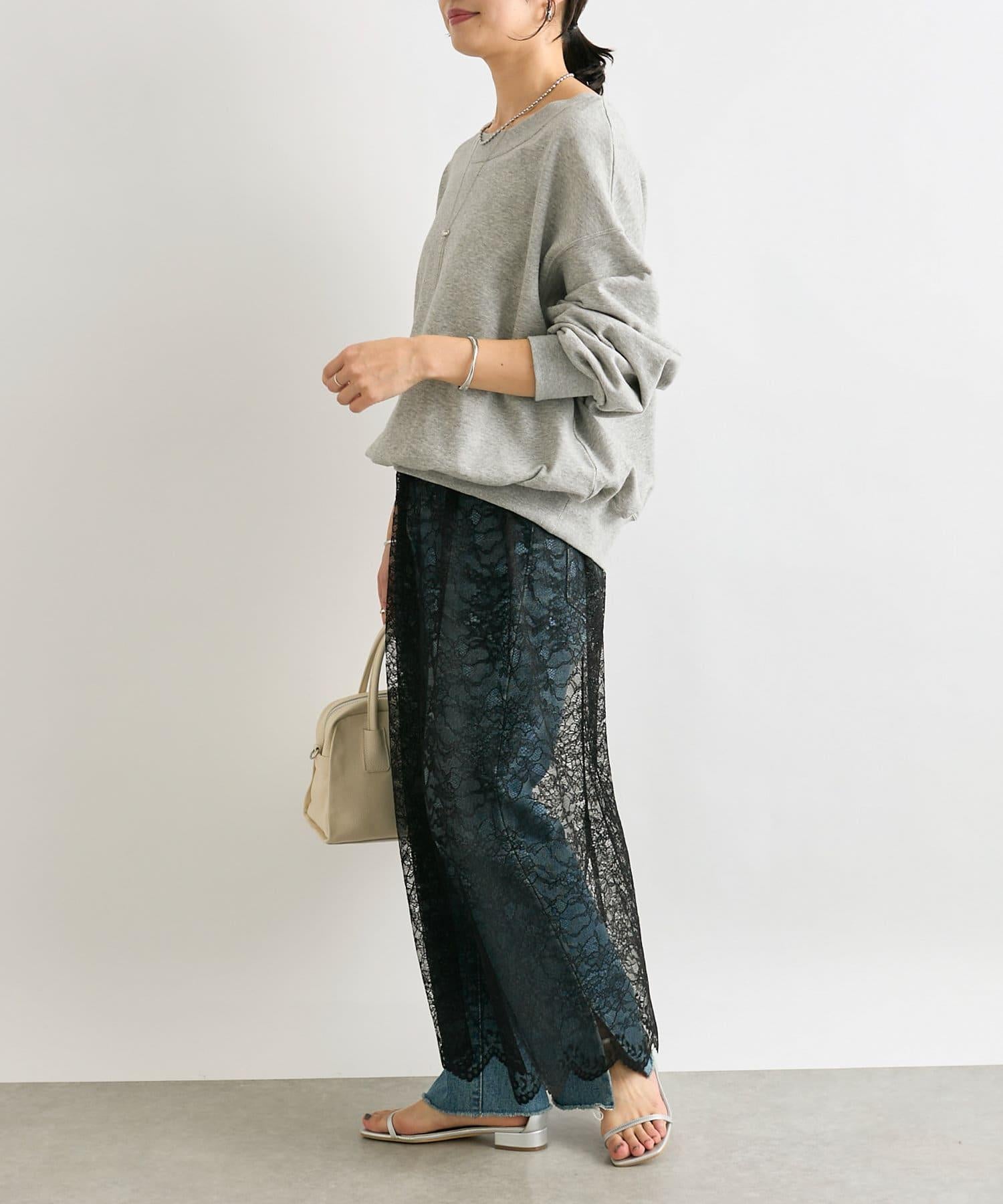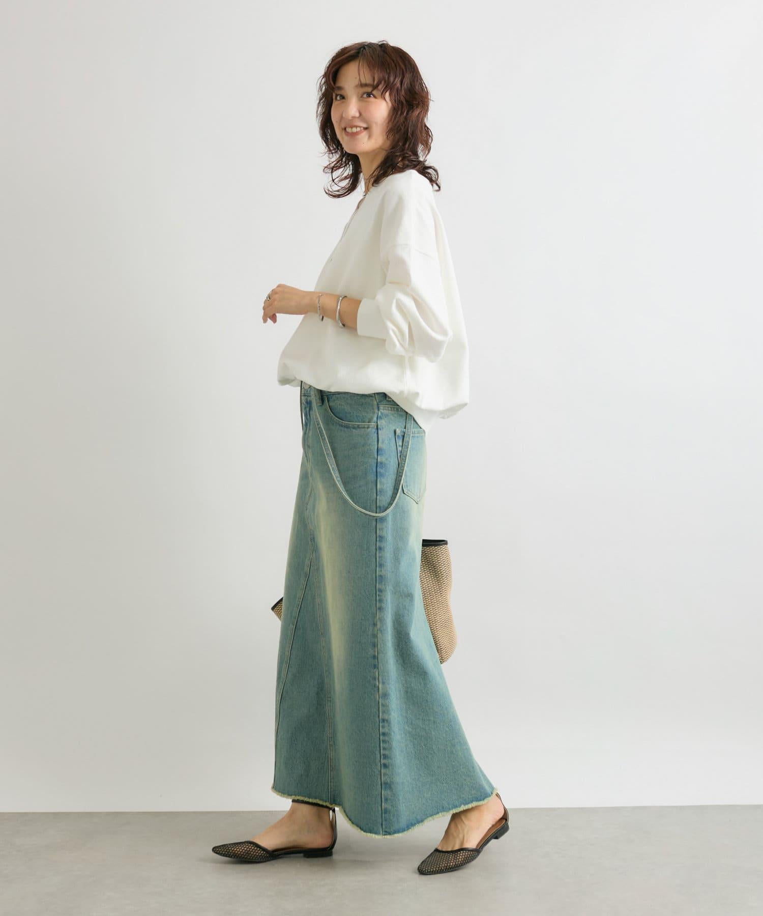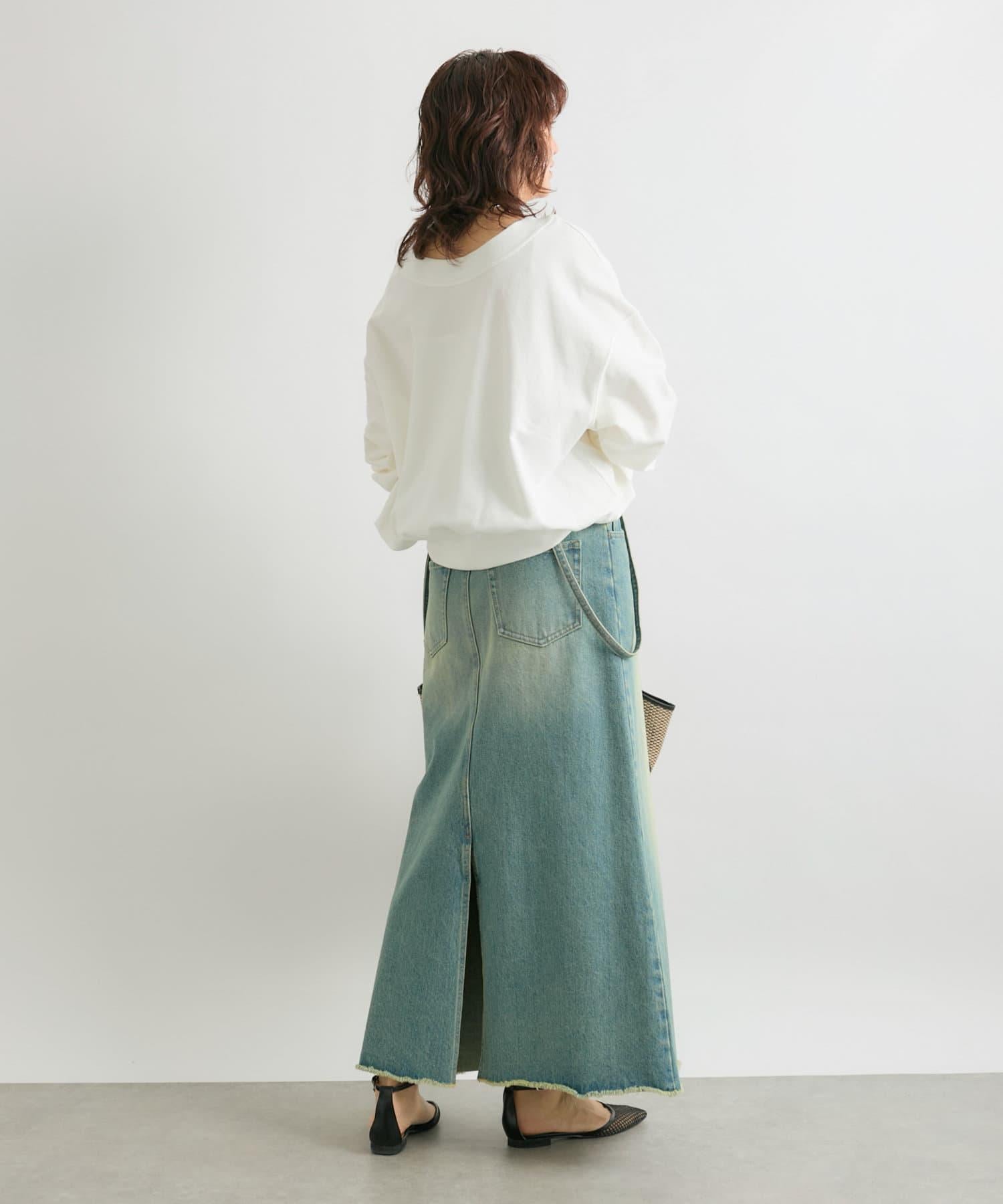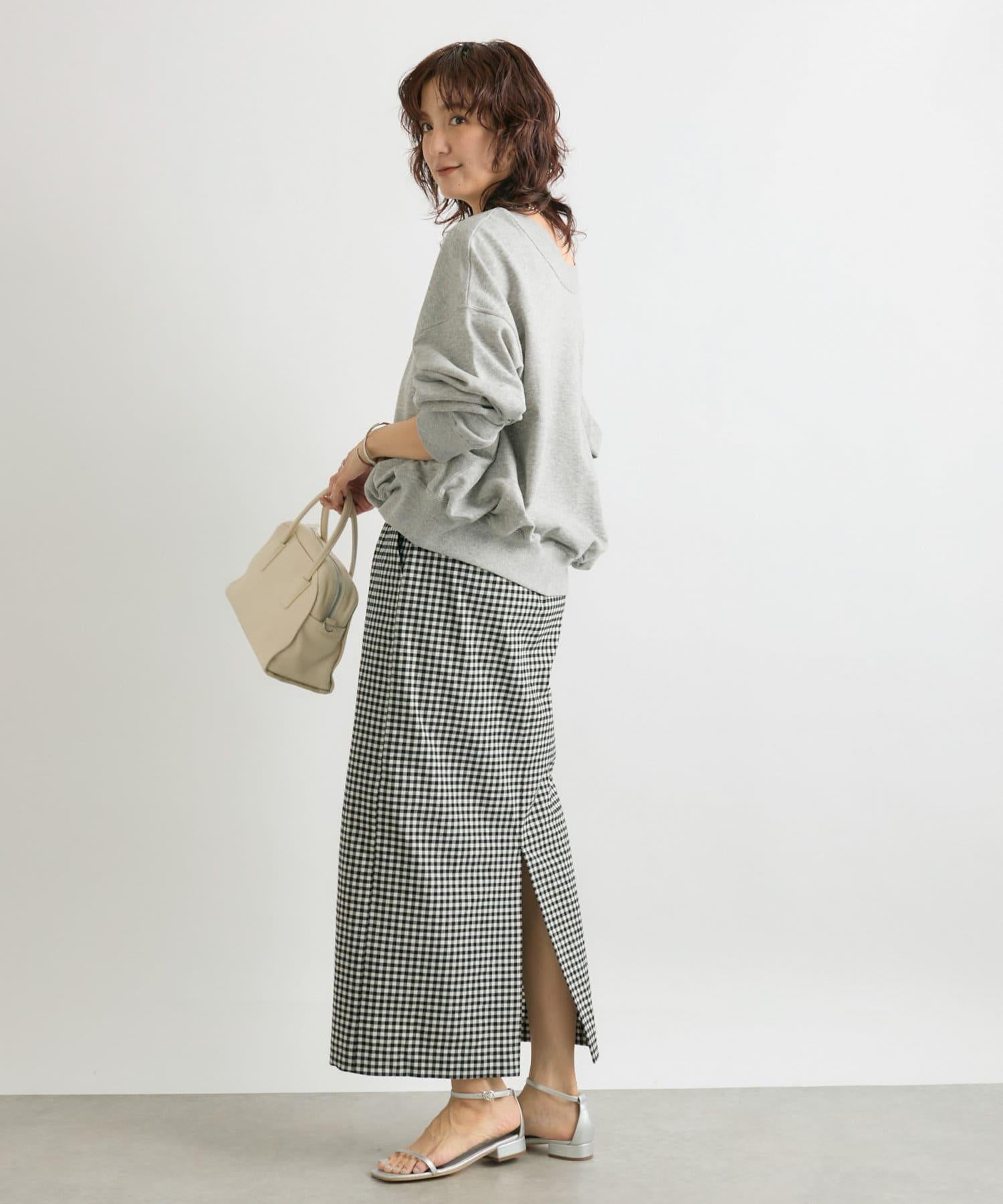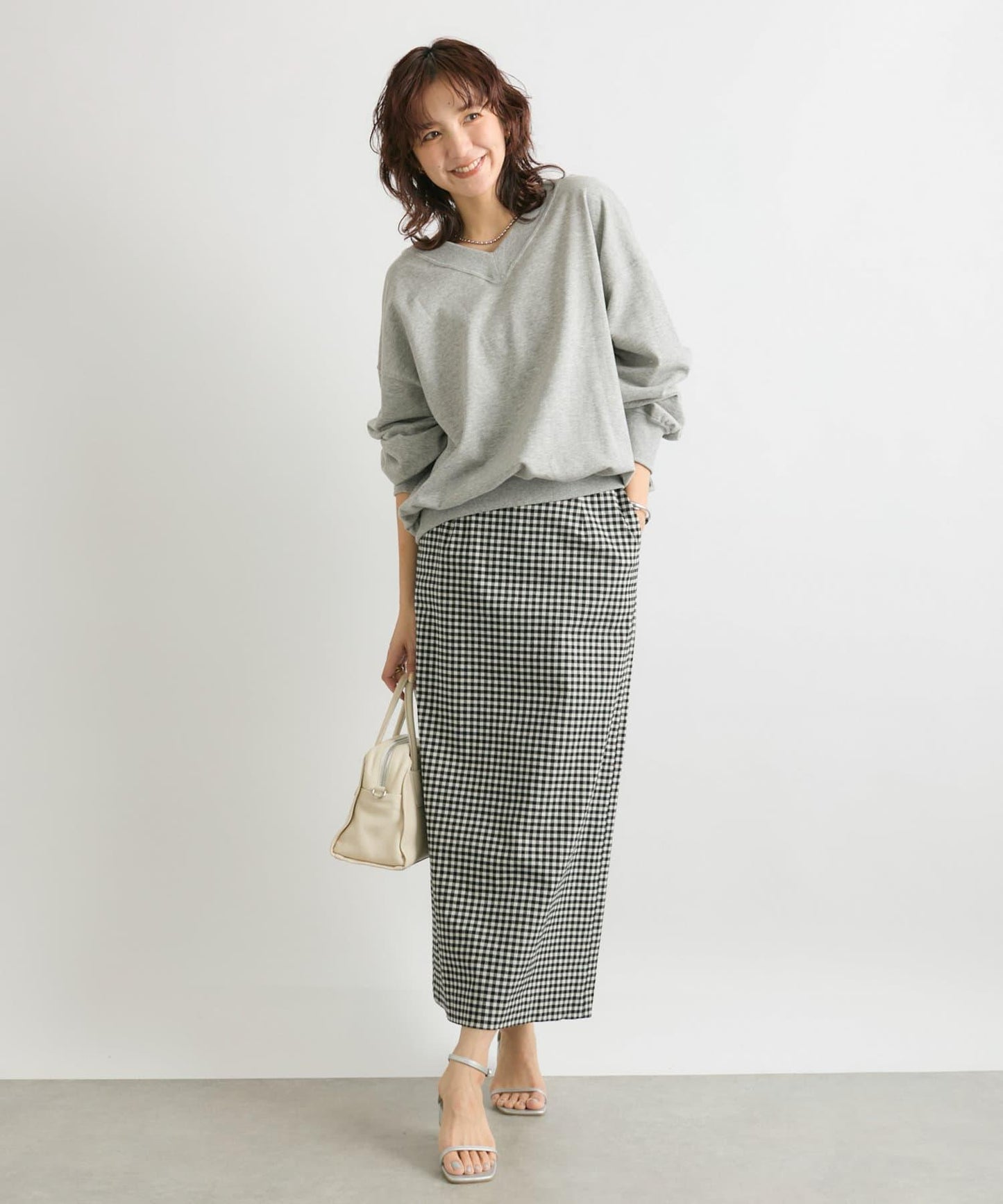 領口寬鬆開闊,建議將一側肩膀下垂,呈現寬鬆感。