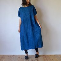 休閒連衣裙/藍色/三河織物
