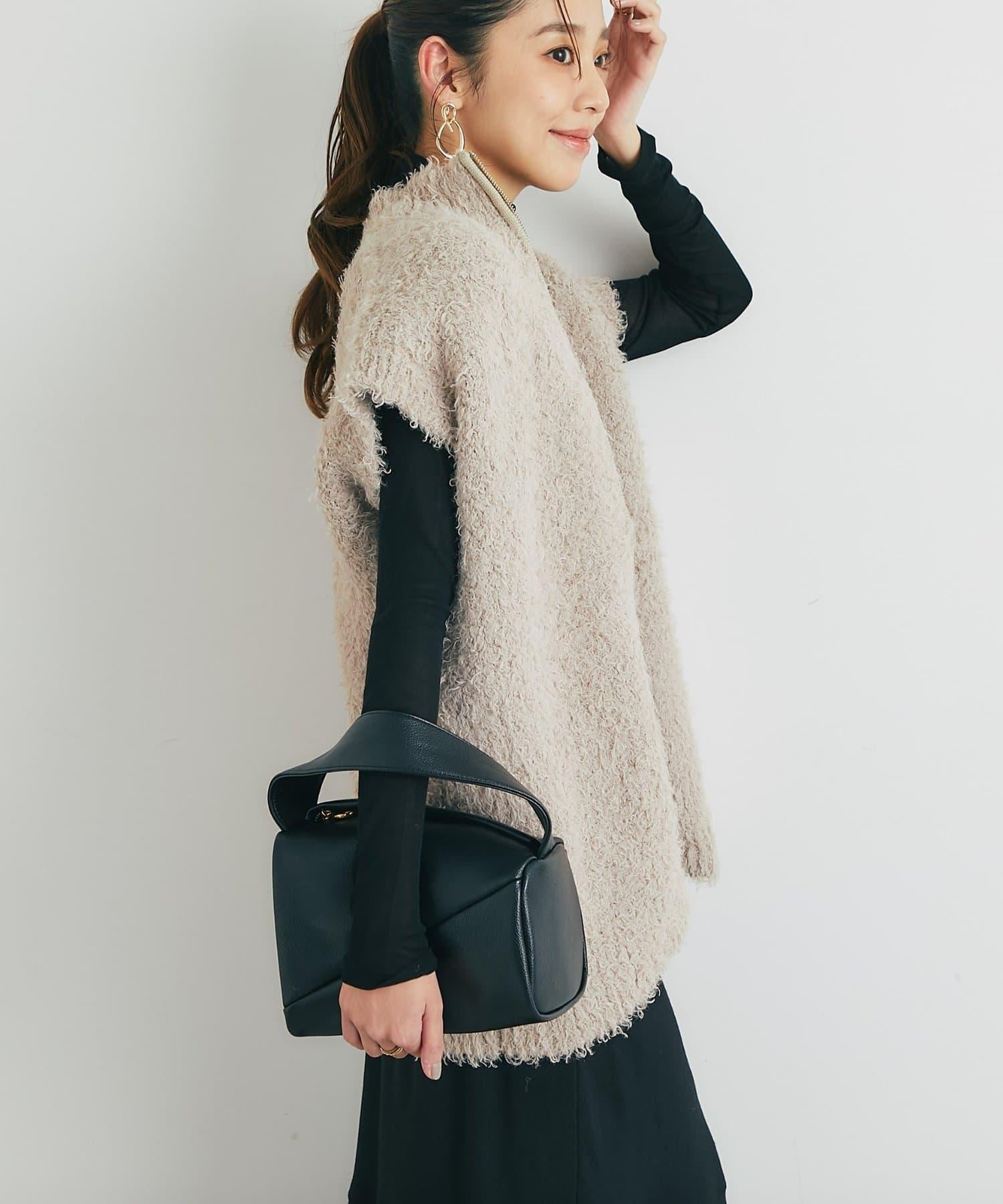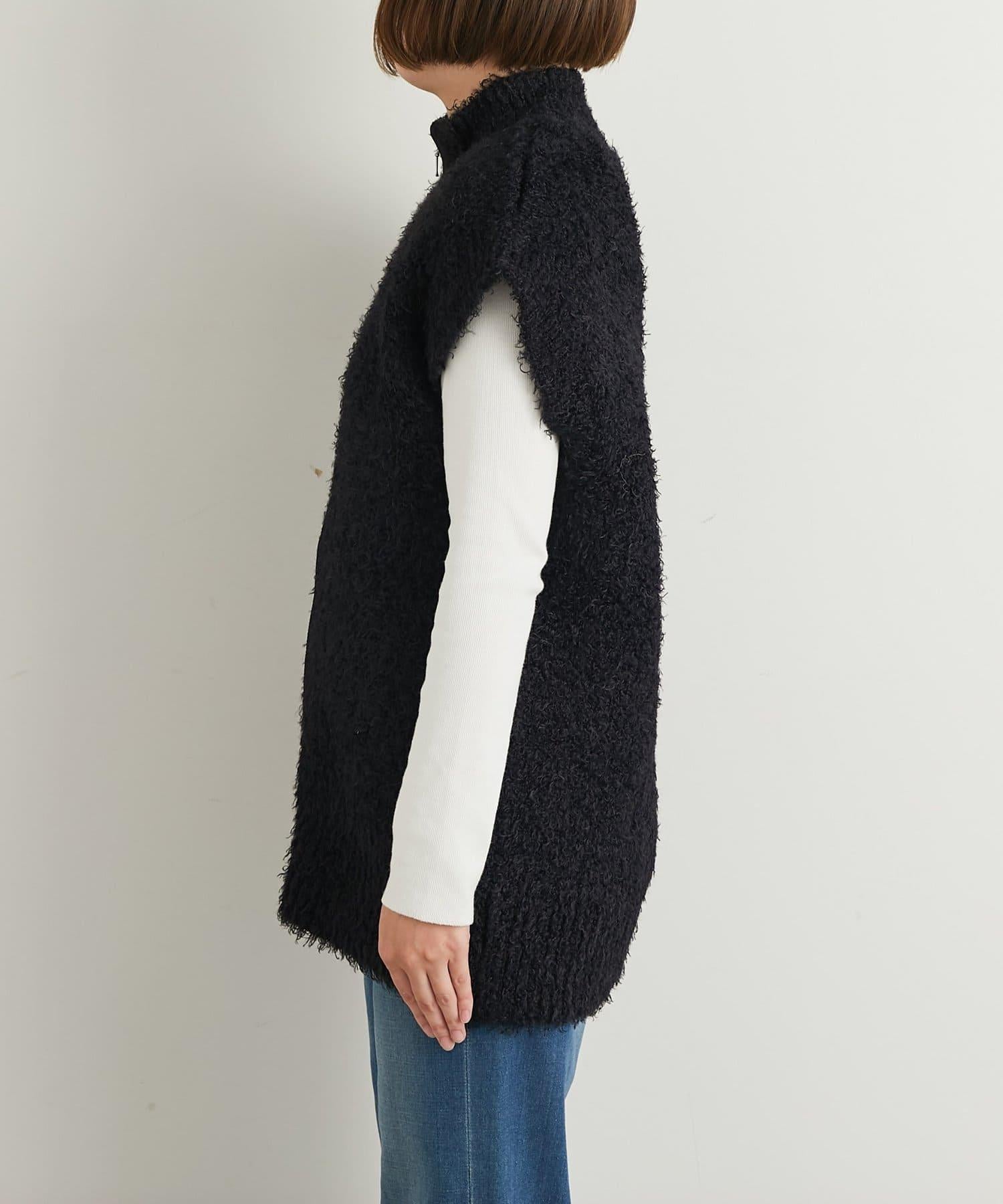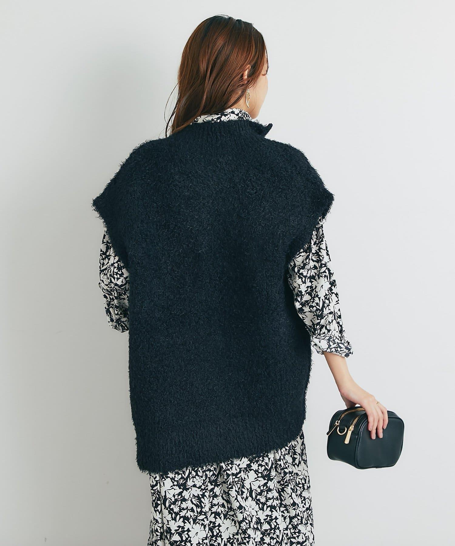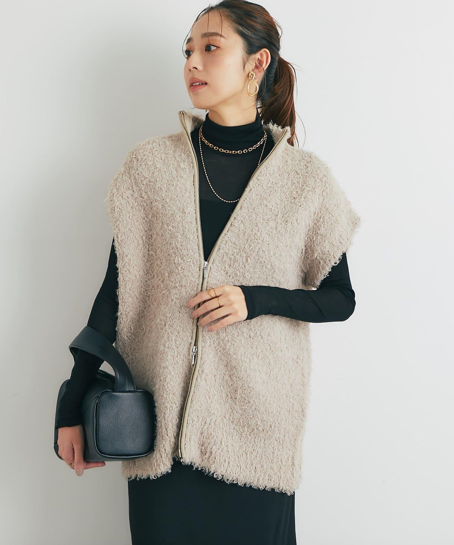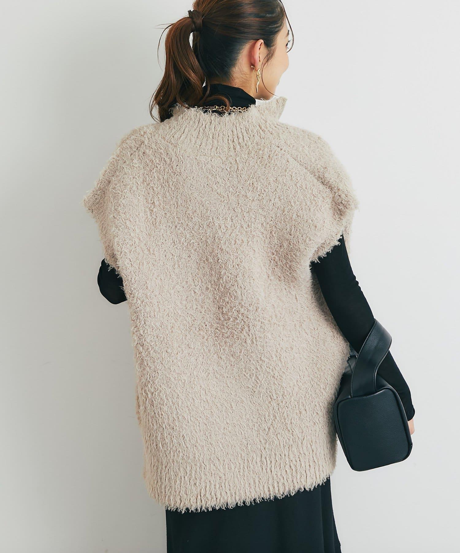 這款針織馬甲採用蓬鬆捲曲的蟒蛇皮材質製成,非常適合休閒穿著。