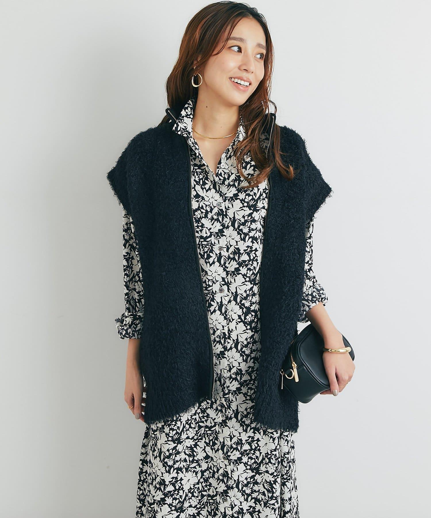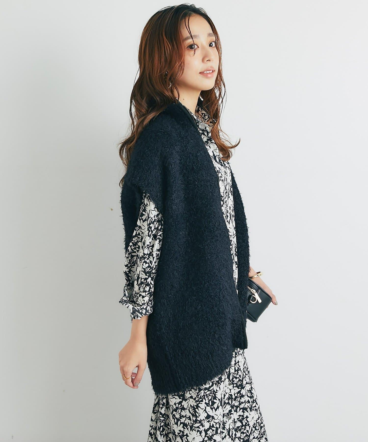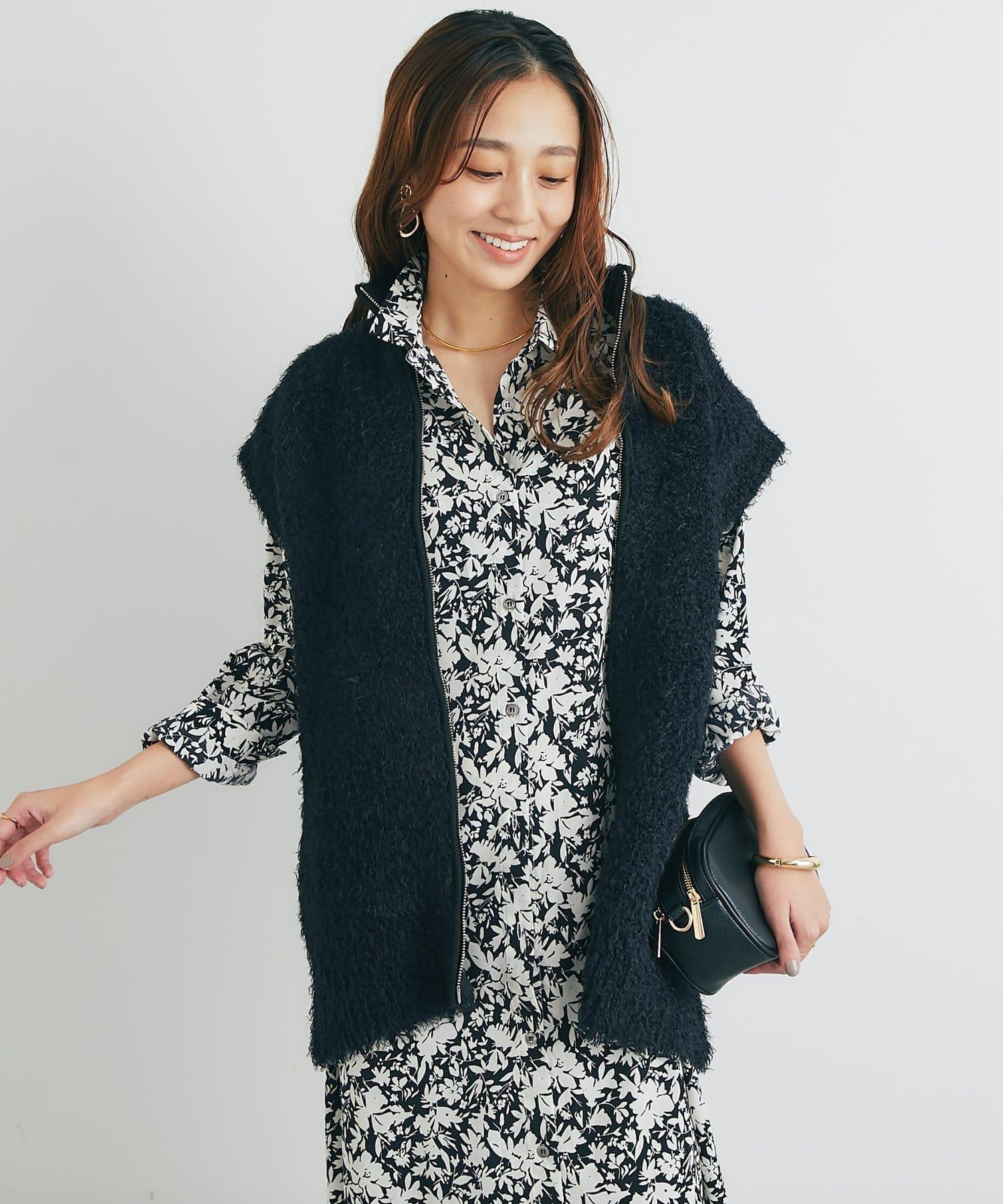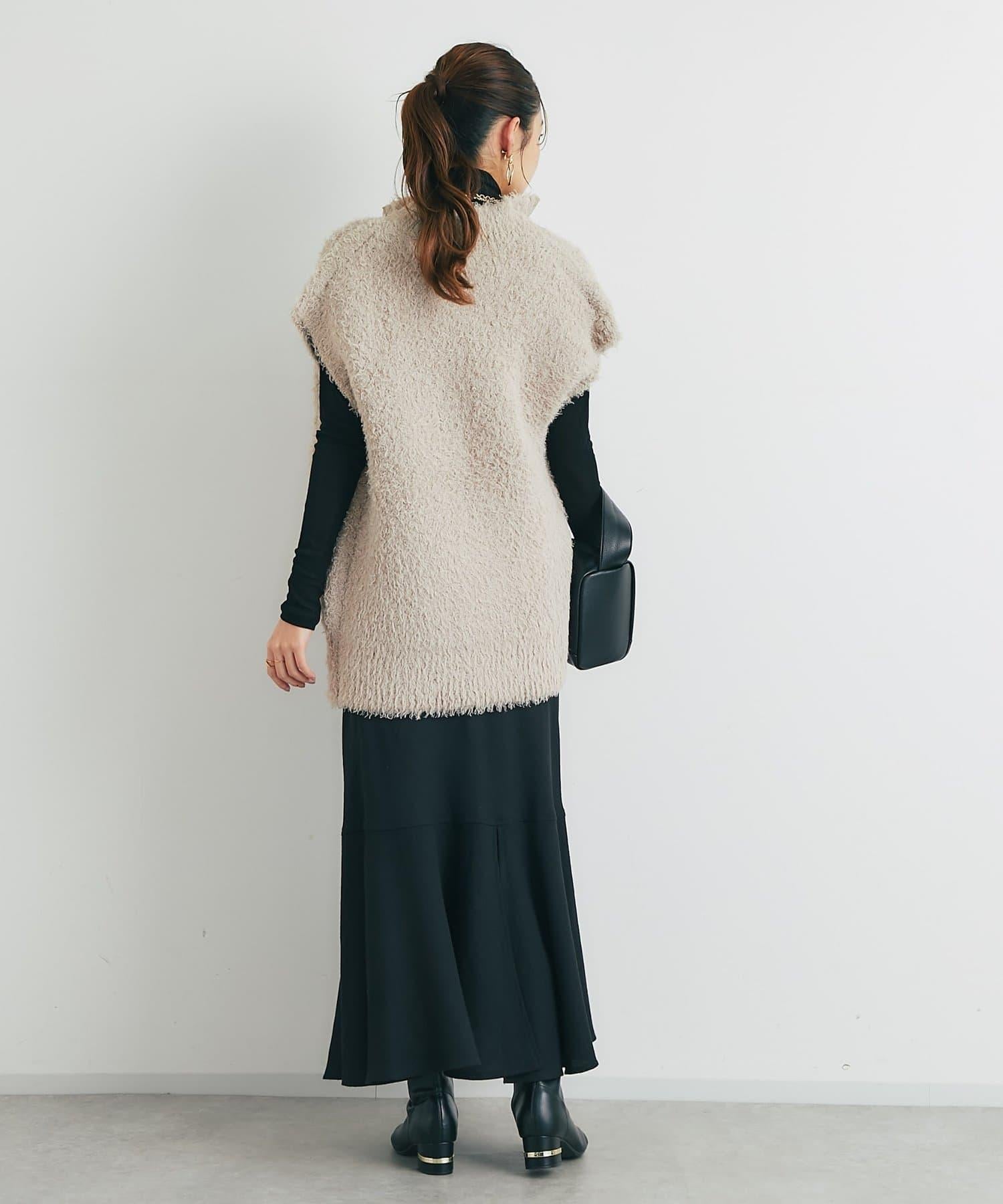 這款針織馬甲採用蓬鬆捲曲的蟒蛇皮材質製成,非常適合休閒穿著。