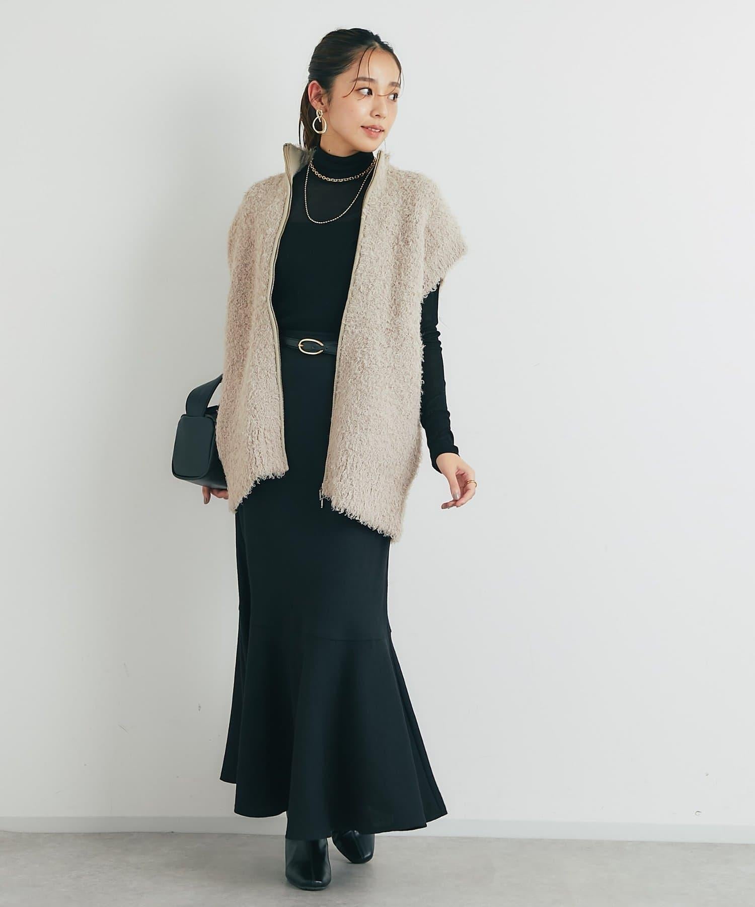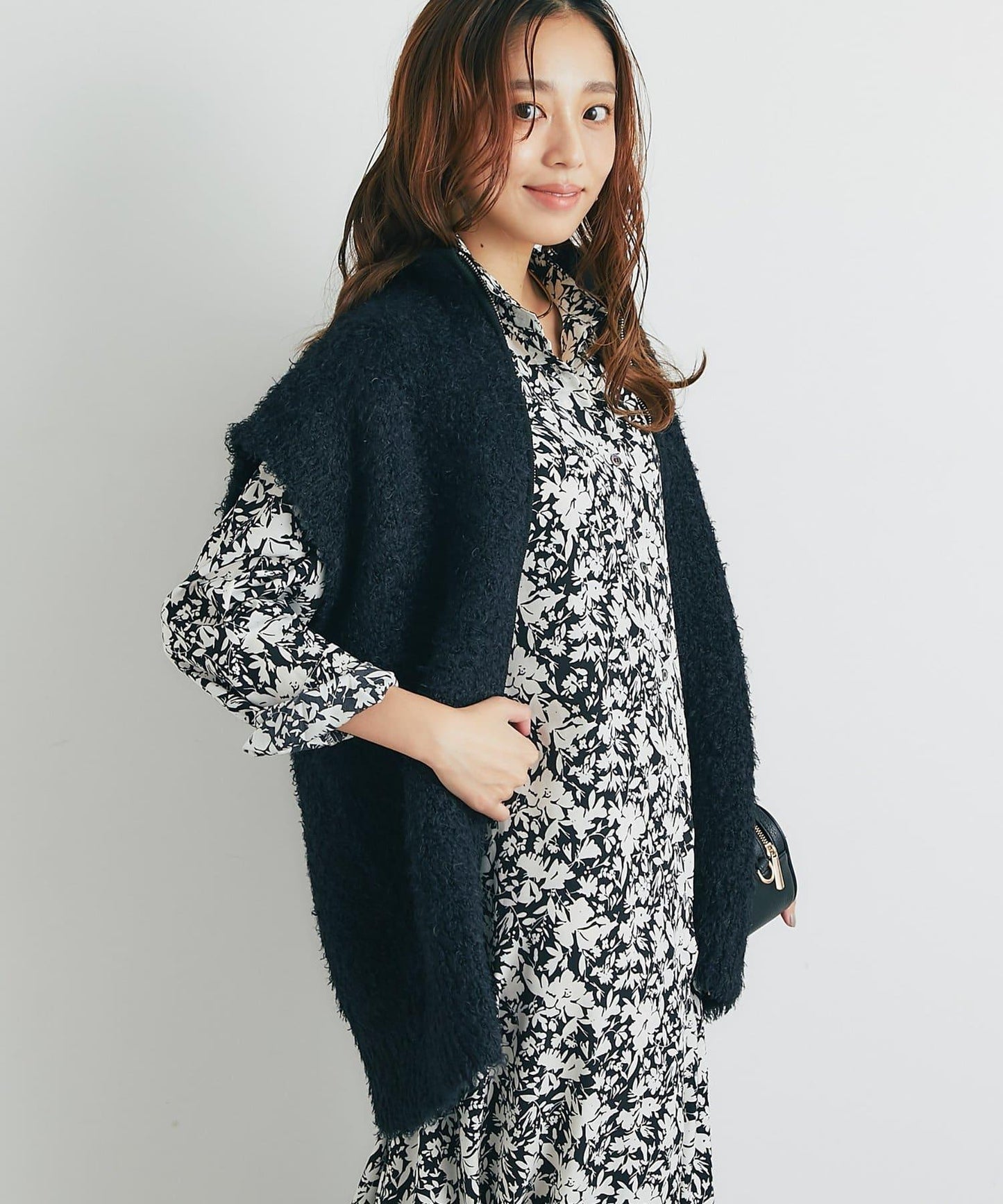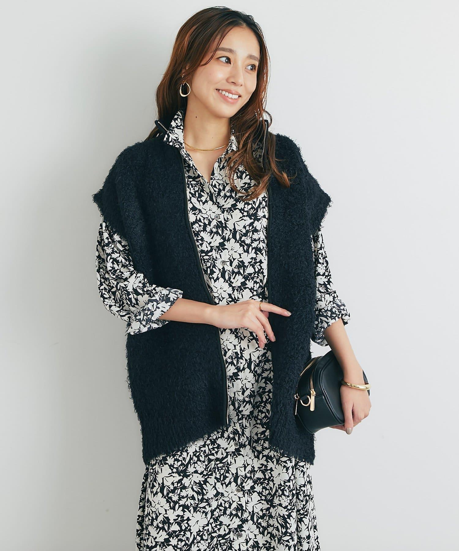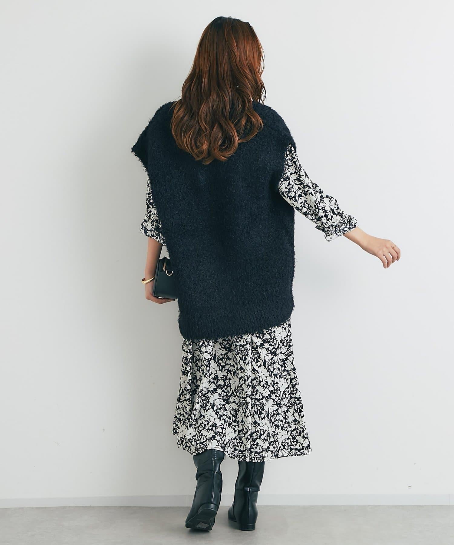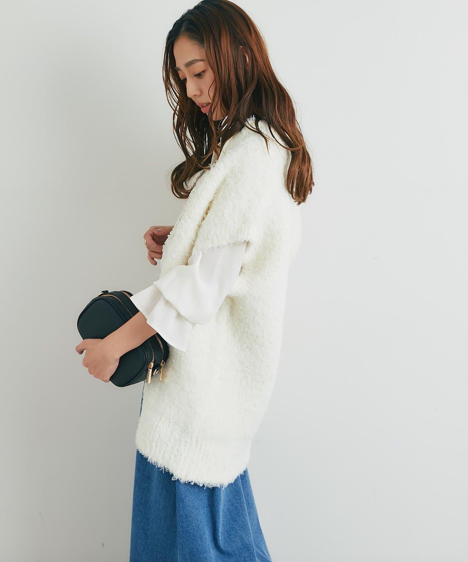 這款針織馬甲採用蓬鬆捲曲的蟒蛇皮材質製成,非常適合休閒穿著。