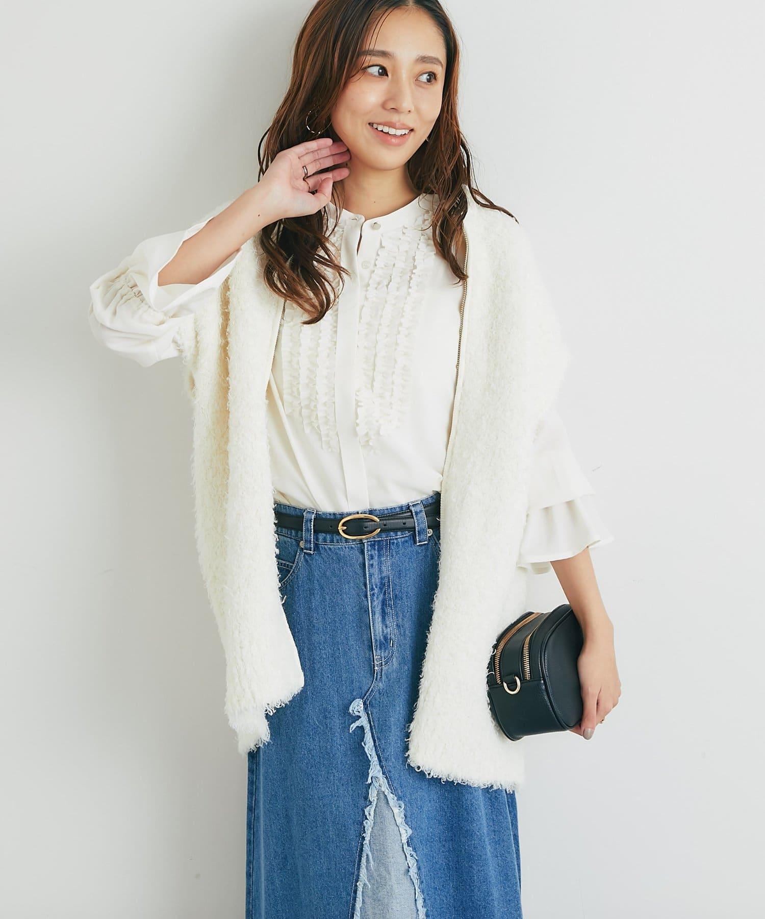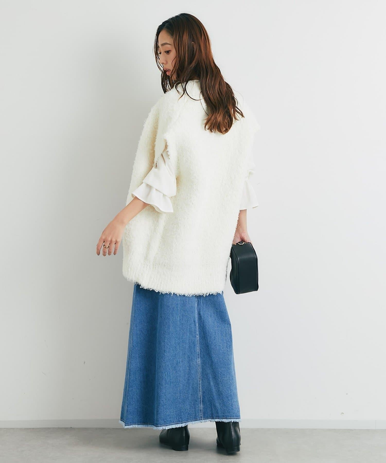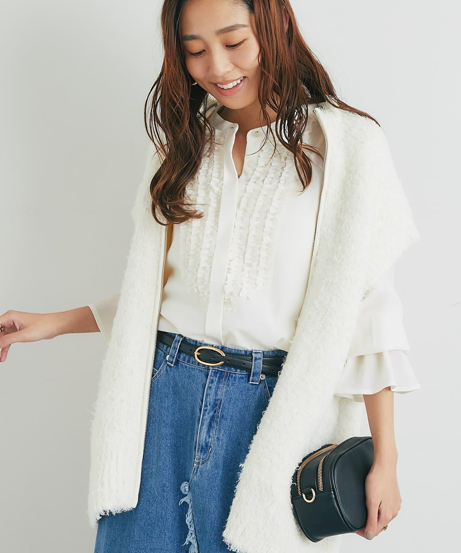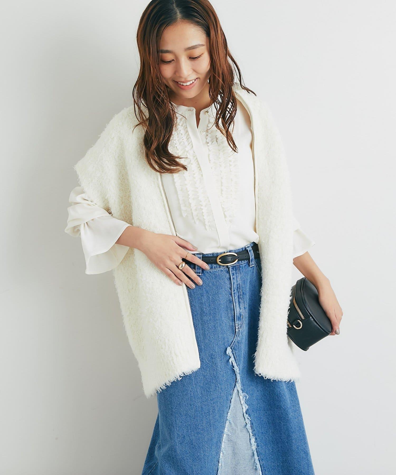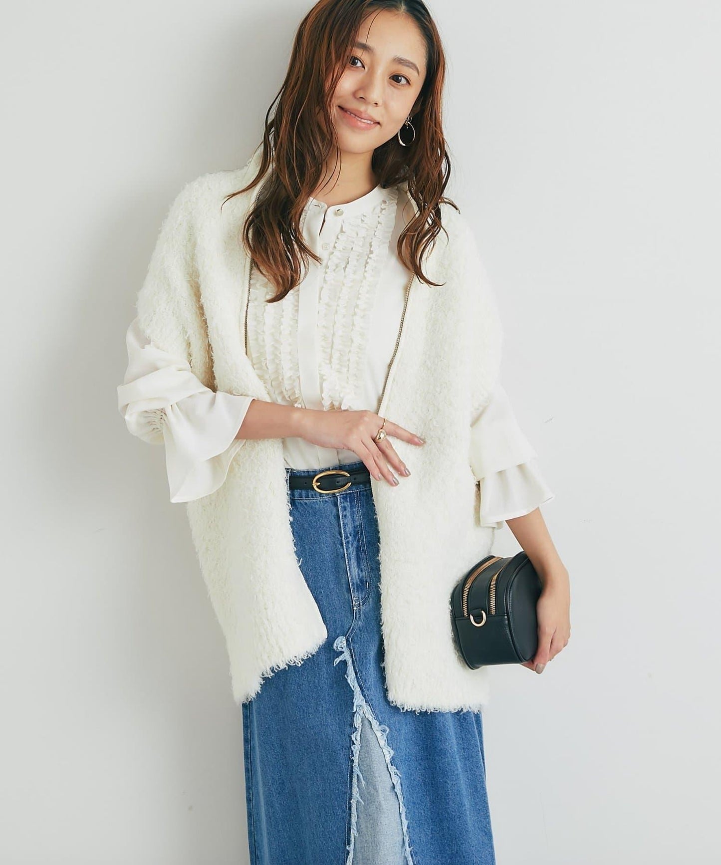 這款針織馬甲採用蓬鬆捲曲的蟒蛇皮材質製成,非常適合休閒穿著。